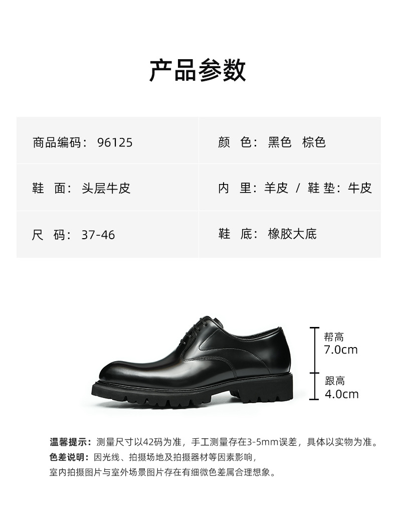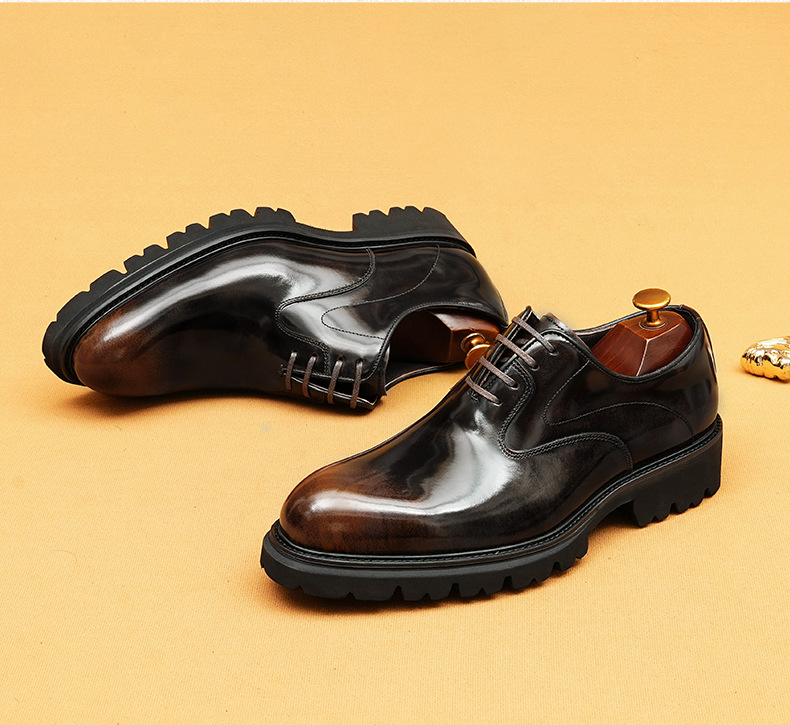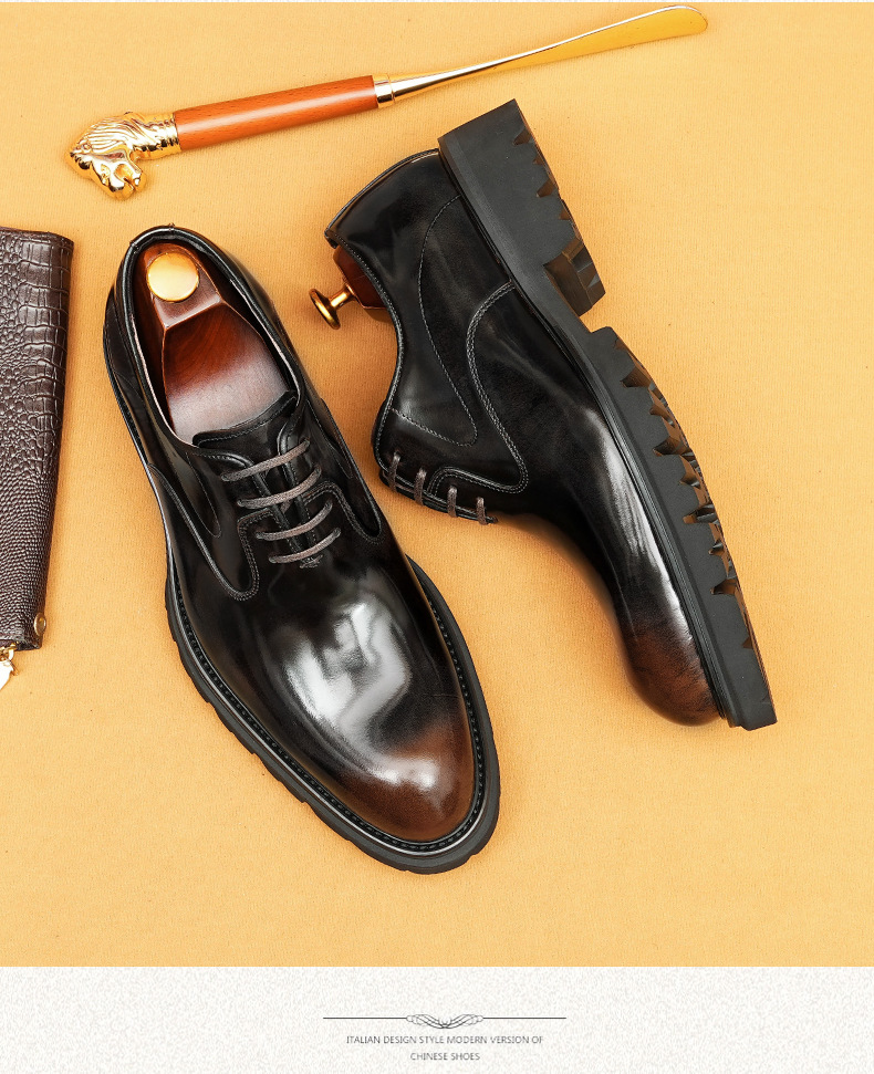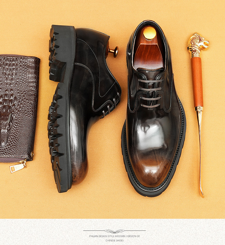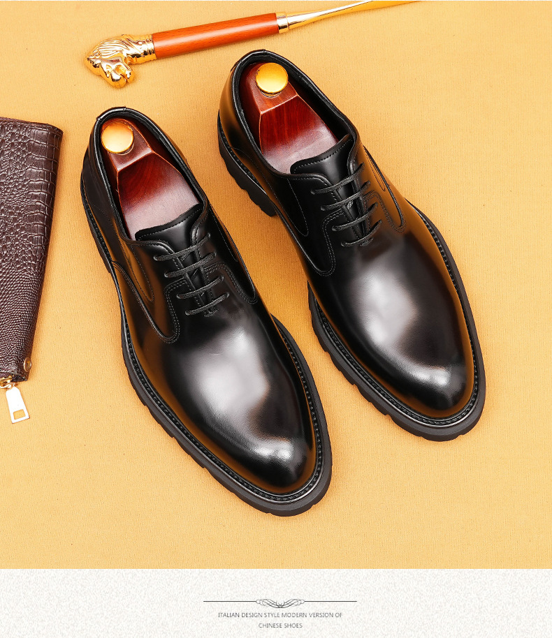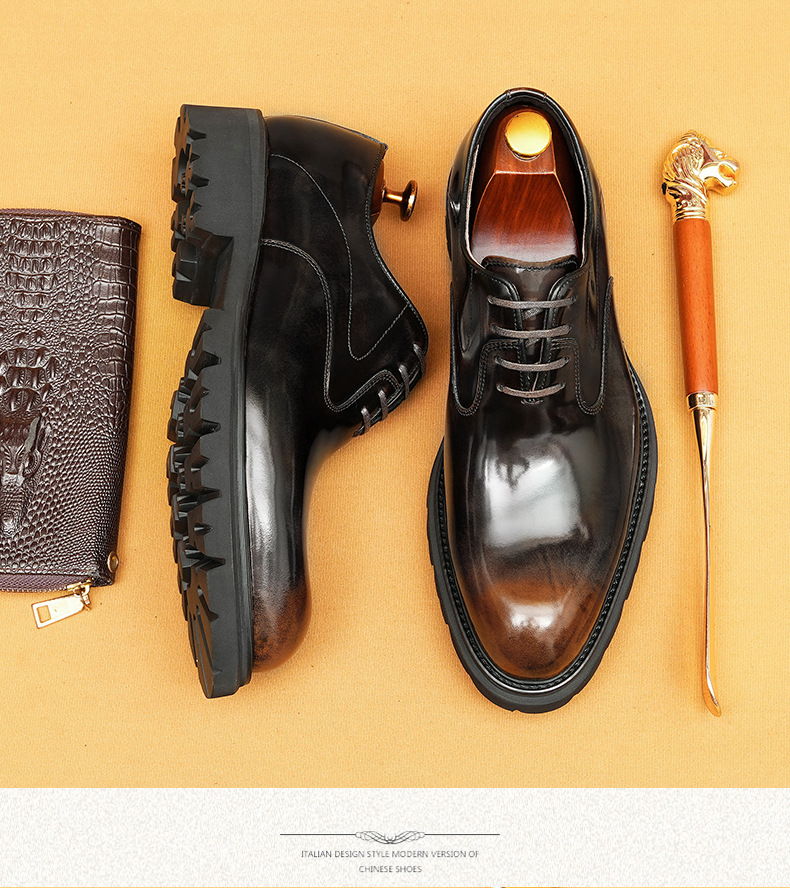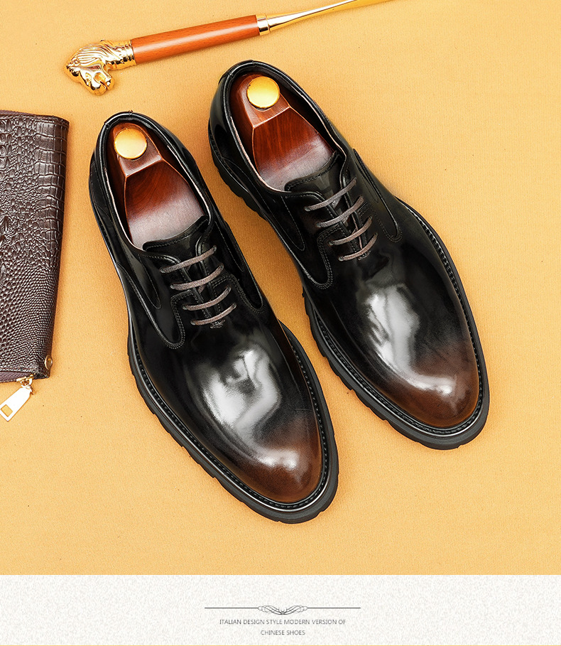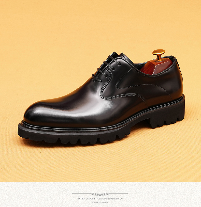 Giày da thật nguyên miếng, bề mặt bóng đẹp, dành cho nam giới. Kiểu dáng phù hợp với công sở, mang phong cách châu Âu cổ điển. Đế giày được thiết kế có phần đế dày hơn một chút. Sản phẩm sử dụng chất liệu da bò tự nhiên ở mặt ngoài, cho cảm giác thoải mái và bền lâu. Khi sử dụng, nên vệ sinh nhẹ nhàng bằng vải mềm và bảo quản nơi khô ráo. | Tên sản phẩm: Giày Da Nam Chất Liệu Da Bò Tăng Chiều Cao Đế Cao - Giày Dép Nam | Mã sản phẩm: B7286 - Giá: 2.360.000đ | Mã nhà sản xuất: SHERAW-G05Hình ảnh sản phẩm