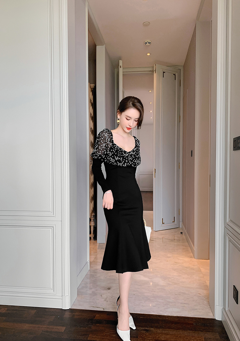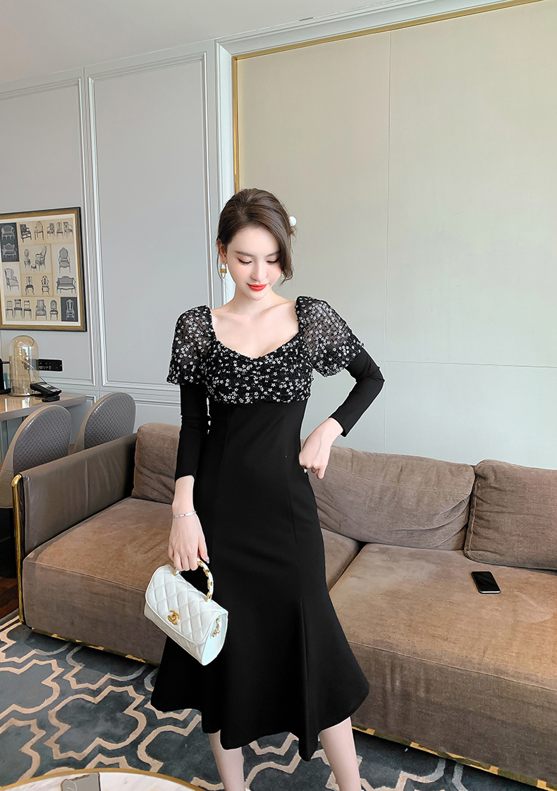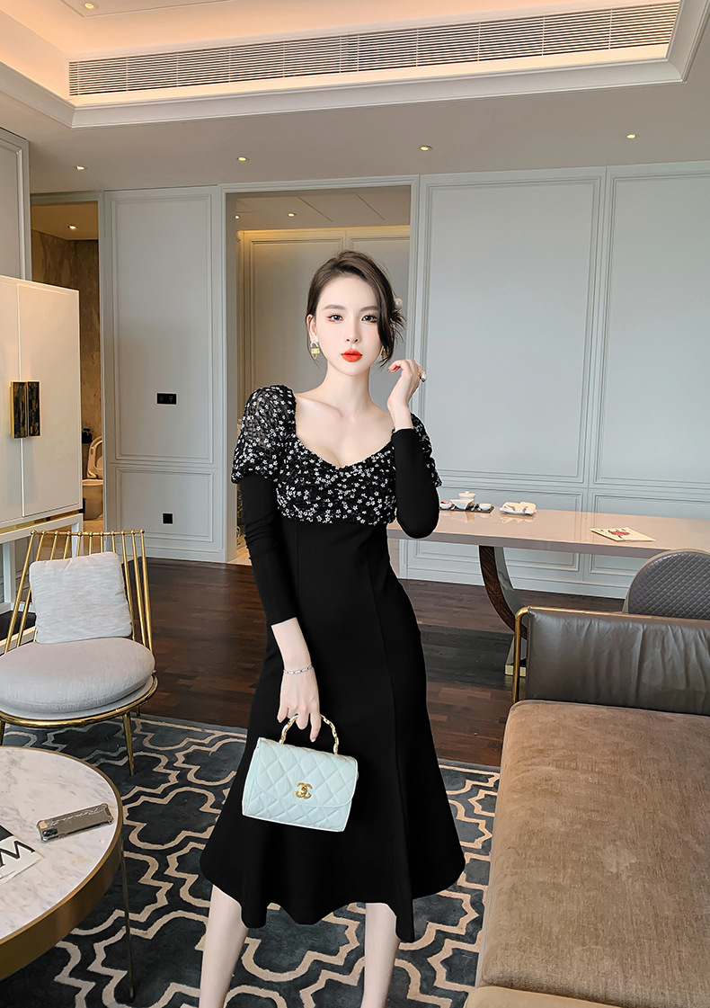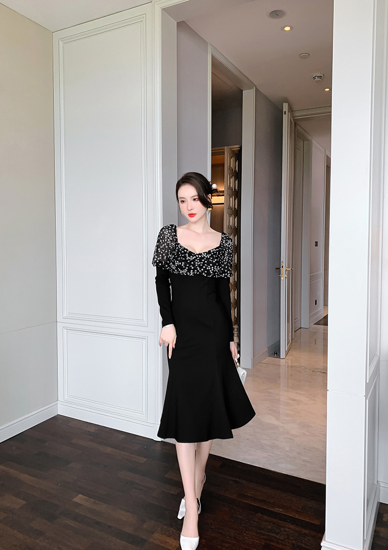 Chiếc đầm tay dài thiết kế theo phong cách Pháp, điểm nhấn là phần eo ôm dáng tôn lên vóc người thon gọn. Chất vải mềm mại kết hợp lưới tinh tế tạo nên vẻ đẹp dịu dàng. Kiểu dáng phù hợp cho những buổi gặp mặt hoặc sự kiện thường ngày. Có thể phối cùng giày cao gót và túi xách nhỏ để hoàn thiện bộ trang phục. | Tên sản phẩm: Váy Đầm Liền Thân Nữ Dài Tay Lưới Mỏng Hàng Mùa Xuân Thu Đông - Thời Trang Nữ | Mã sản phẩm: B7299 - Giá: 1.130.000đ | Mã nhà sản xuất: CHDG-G04Hình ảnh sản phẩm
