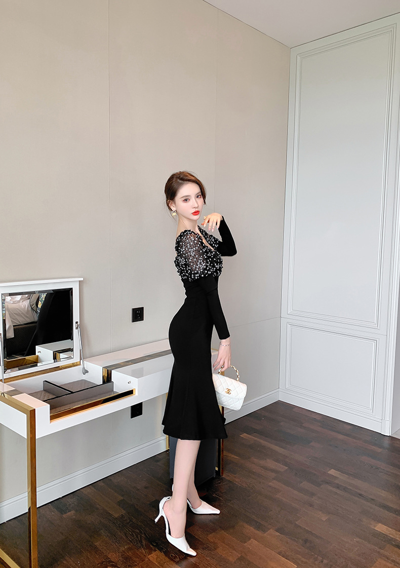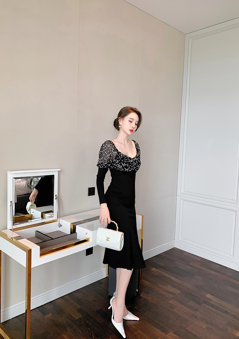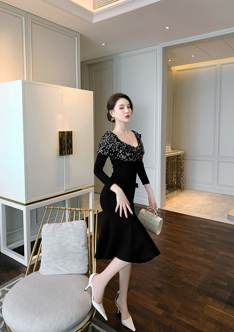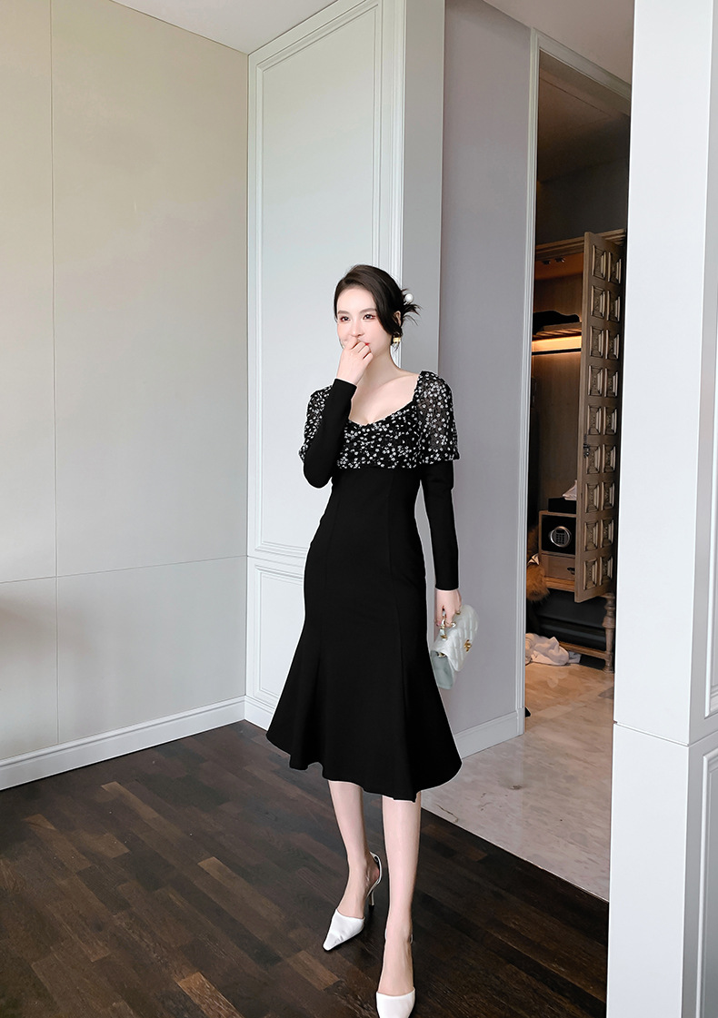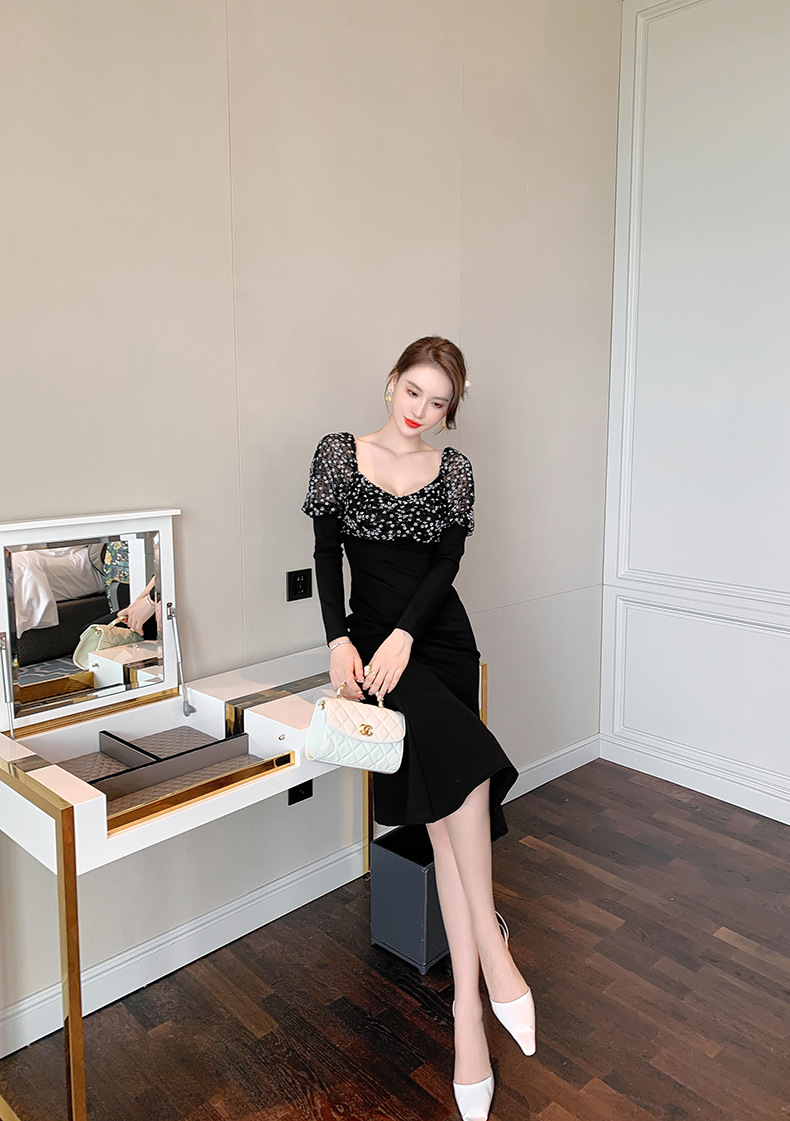 Chiếc đầm tay dài thiết kế theo phong cách Pháp, điểm nhấn là phần eo ôm dáng tôn lên vóc người thon gọn. Chất vải mềm mại kết hợp lưới tinh tế tạo nên vẻ đẹp dịu dàng. Kiểu dáng phù hợp cho những buổi gặp mặt hoặc sự kiện thường ngày. Có thể phối cùng giày cao gót và túi xách nhỏ để hoàn thiện bộ trang phục. | Tên sản phẩm: Váy Đầm Liền Thân Nữ Dài Tay Lưới Mỏng Hàng Mùa Xuân Thu Đông - Thời Trang Nữ | Mã sản phẩm: B7299 - Giá: 1.130.000đ | Mã nhà sản xuất: CHDG-G04Hình ảnh sản phẩm