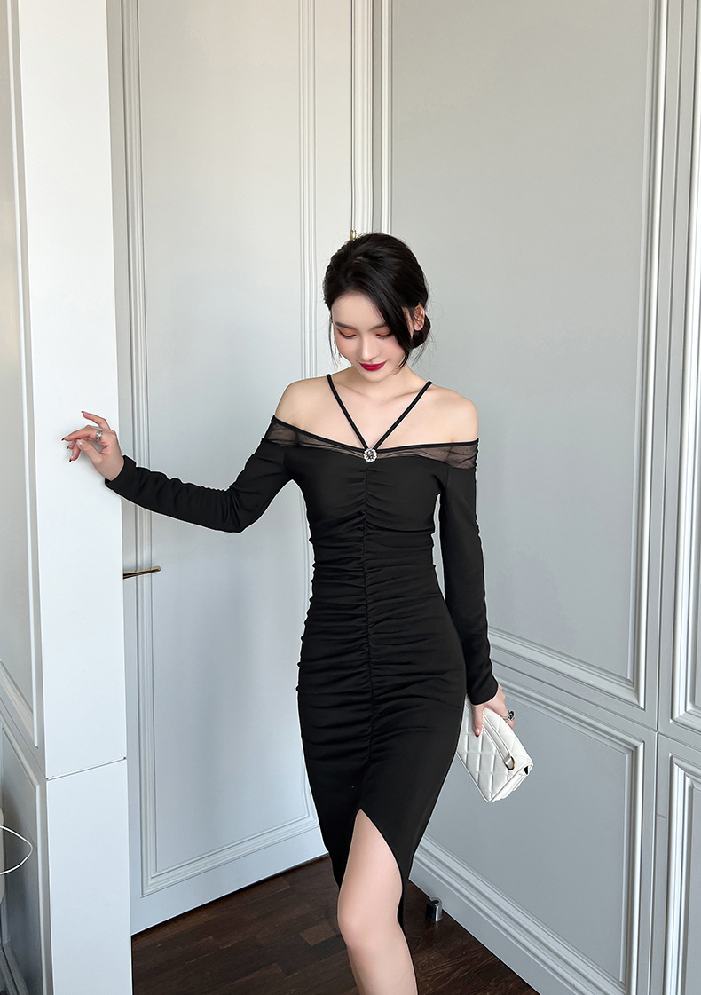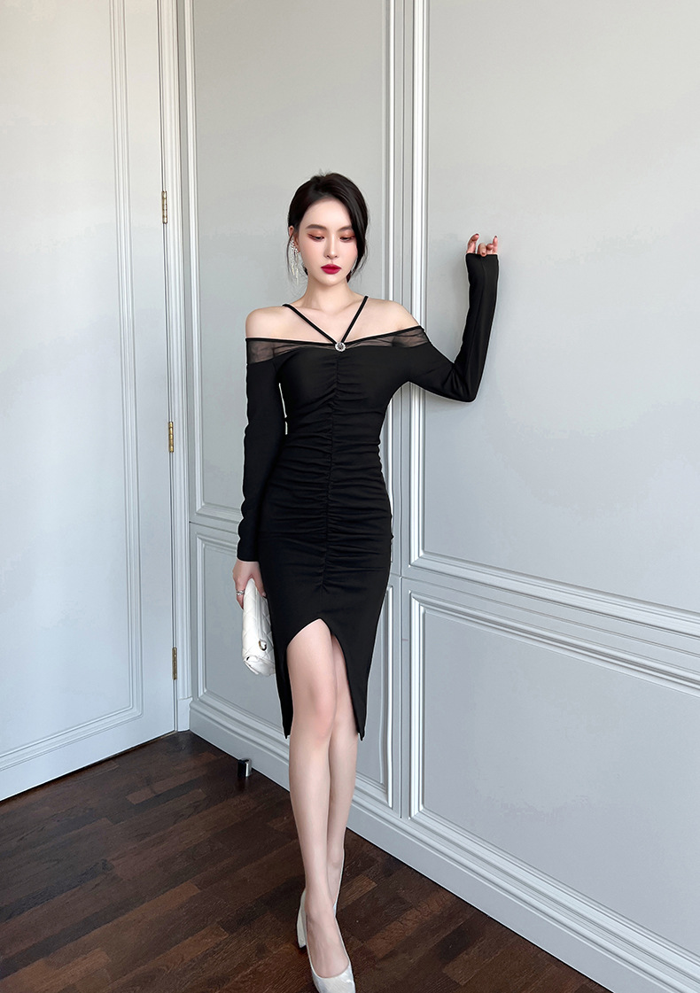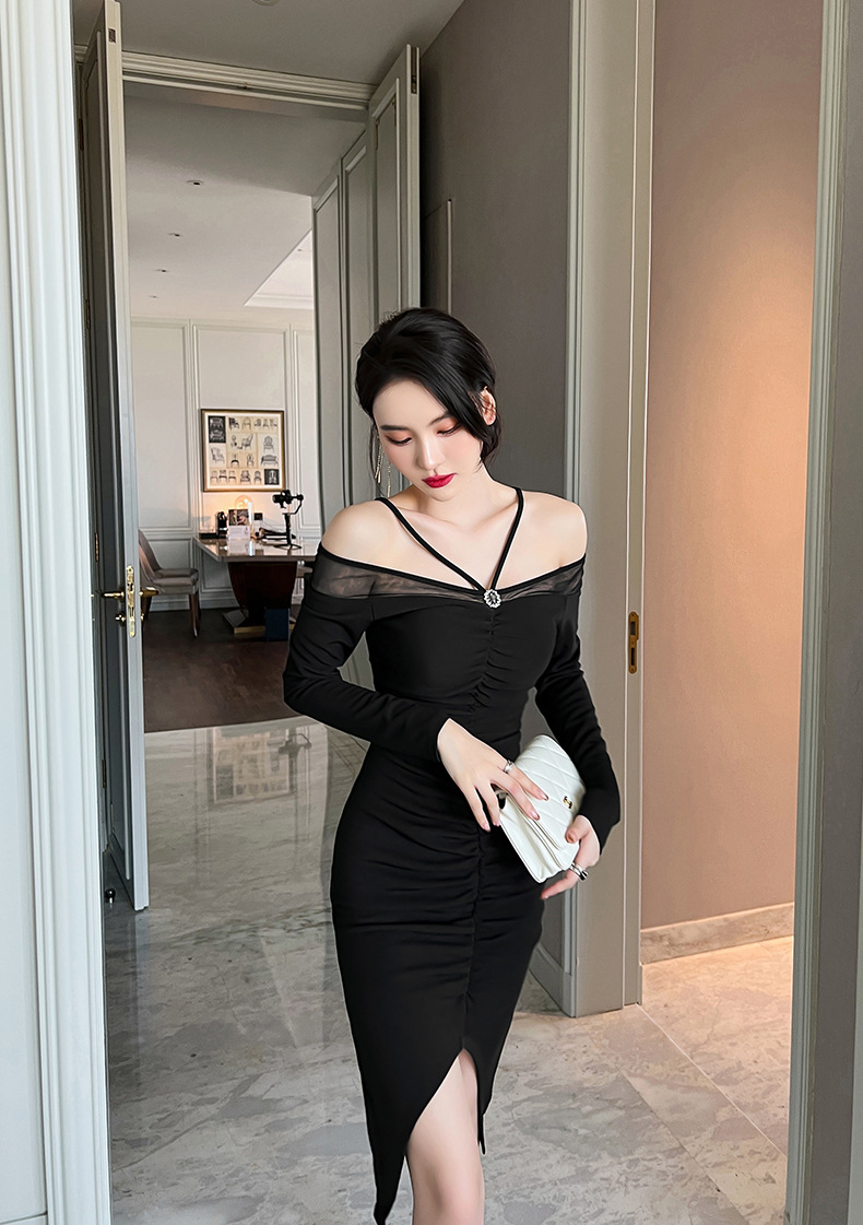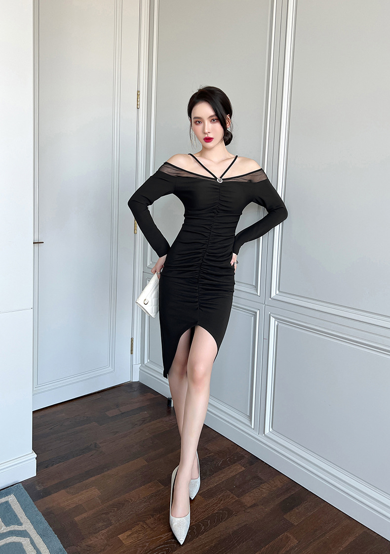 Đầm thiết kế dành cho nữ với phần cổ khoét hình chữ Nhất ôm sát, khoe trọn bờ v quyến rũ. Chất liệu vải mềm mại tôn dáng. Kiểu dáng đầm không theo quy tắc thông thường, tạo điểm nhấn lạ mắt. Màu đen dễ dàng phối đồ. Sản phẩm phù hợp cho những buổi gặp mặt, dạo phố. Mặc kèm phụ kiện để nổi bật hơn. | Tên sản phẩm: Váy Đầm Liền Thân Nữ Hàng Mùa Xuân Thu Đông - Thời Trang Nữ | Mã sản phẩm: B7301 - Giá: 980.000đ | Mã nhà sản xuất: CHDG-G03Hình ảnh sản phẩm