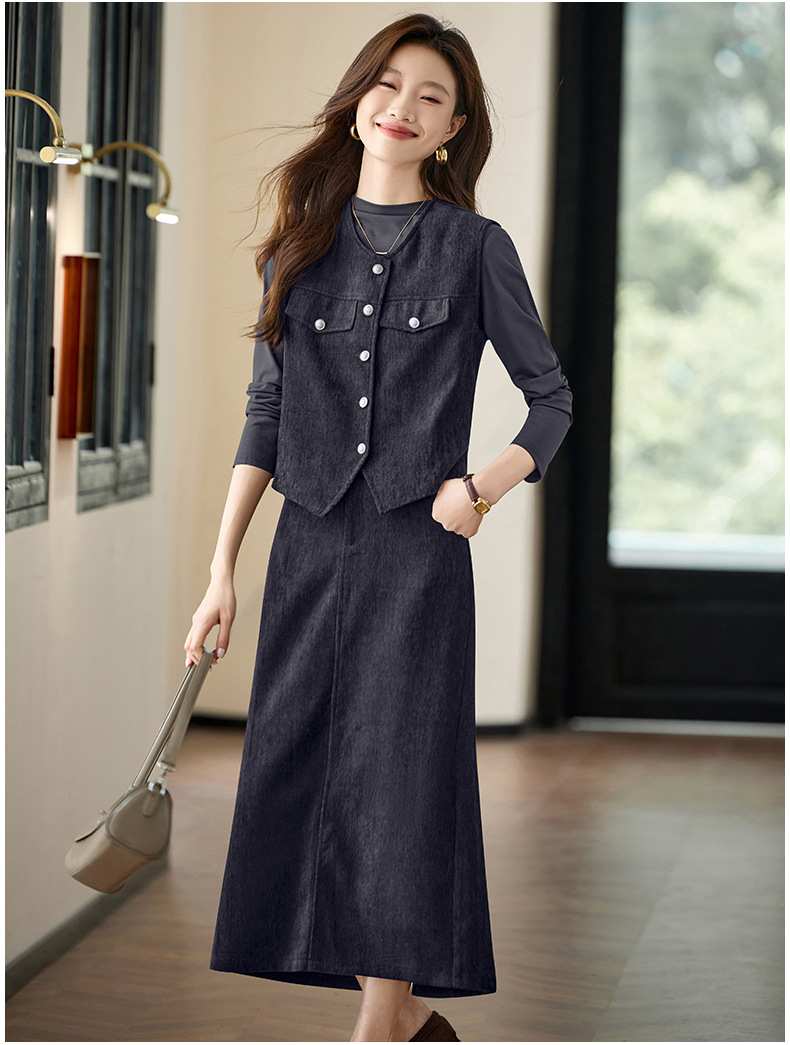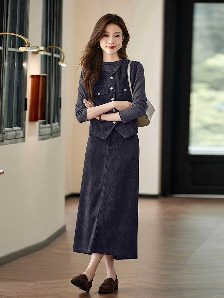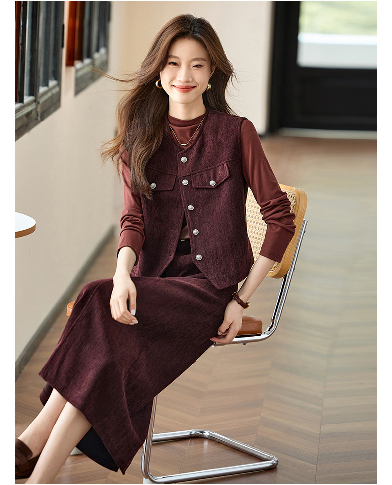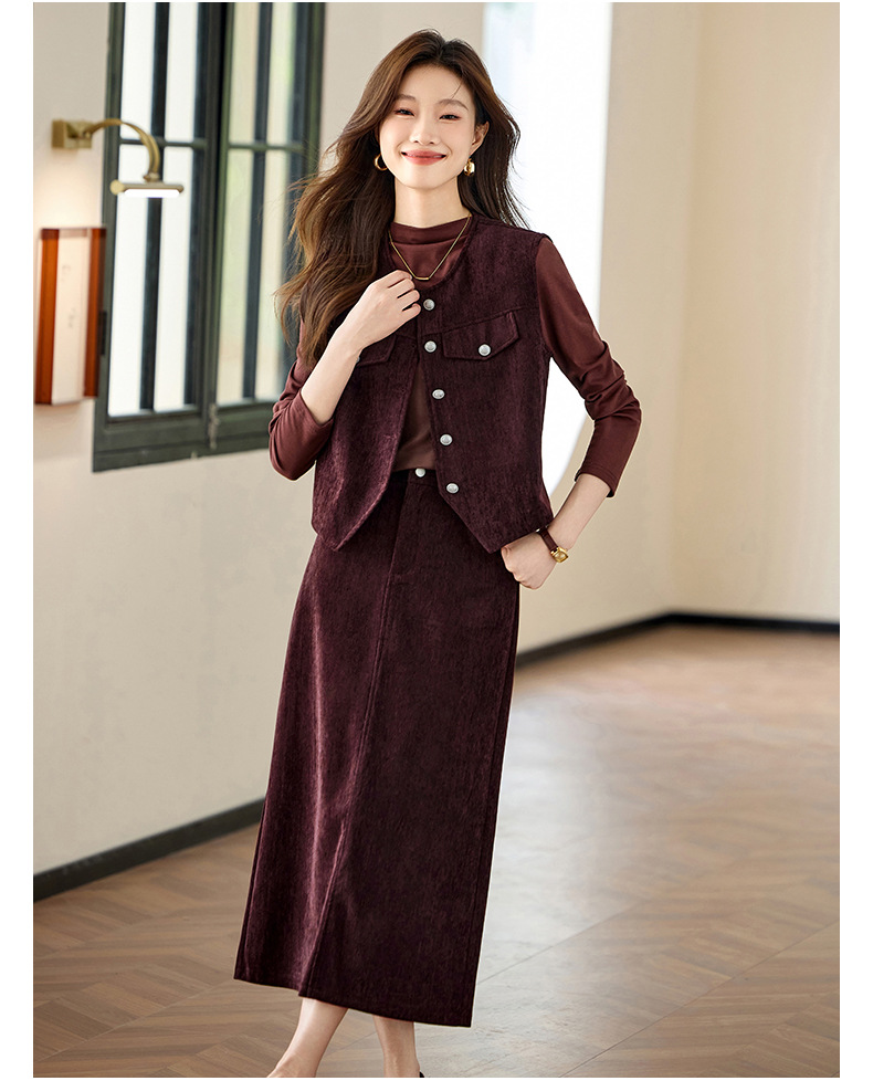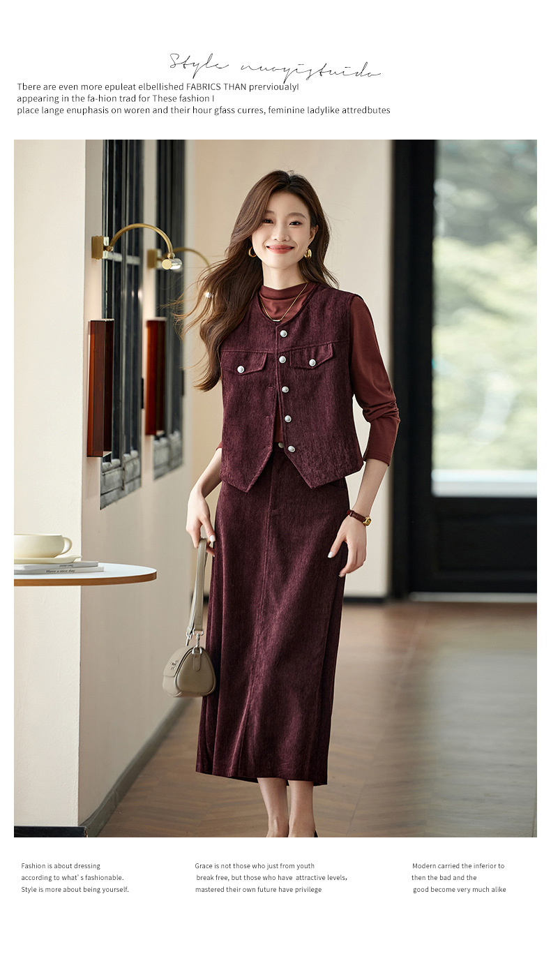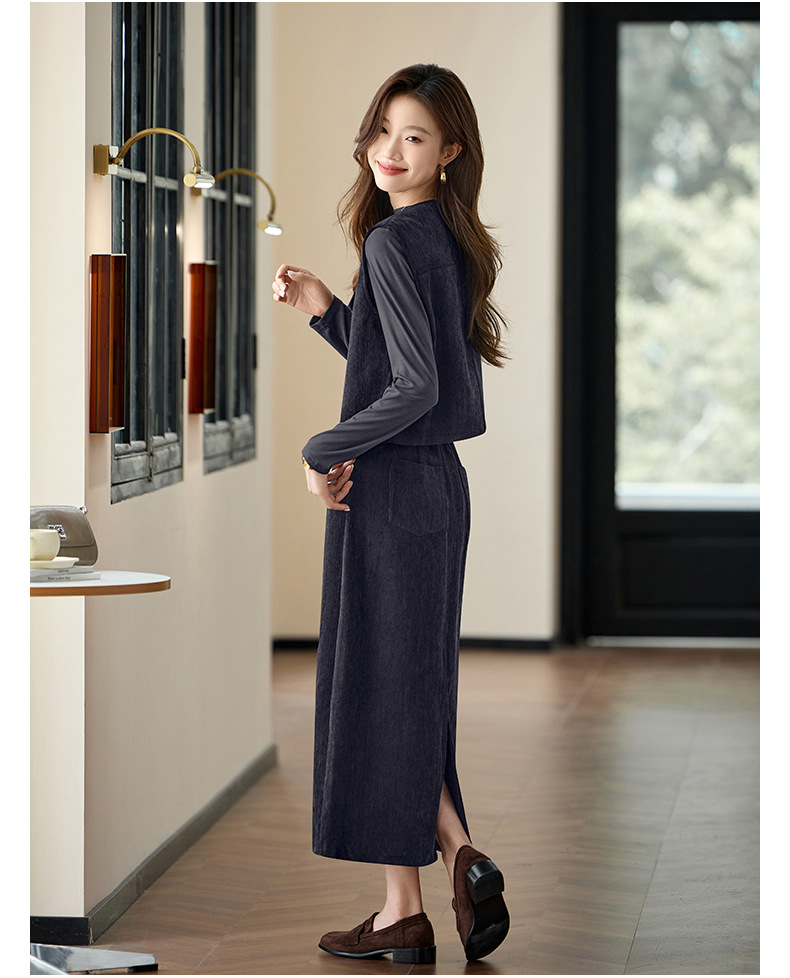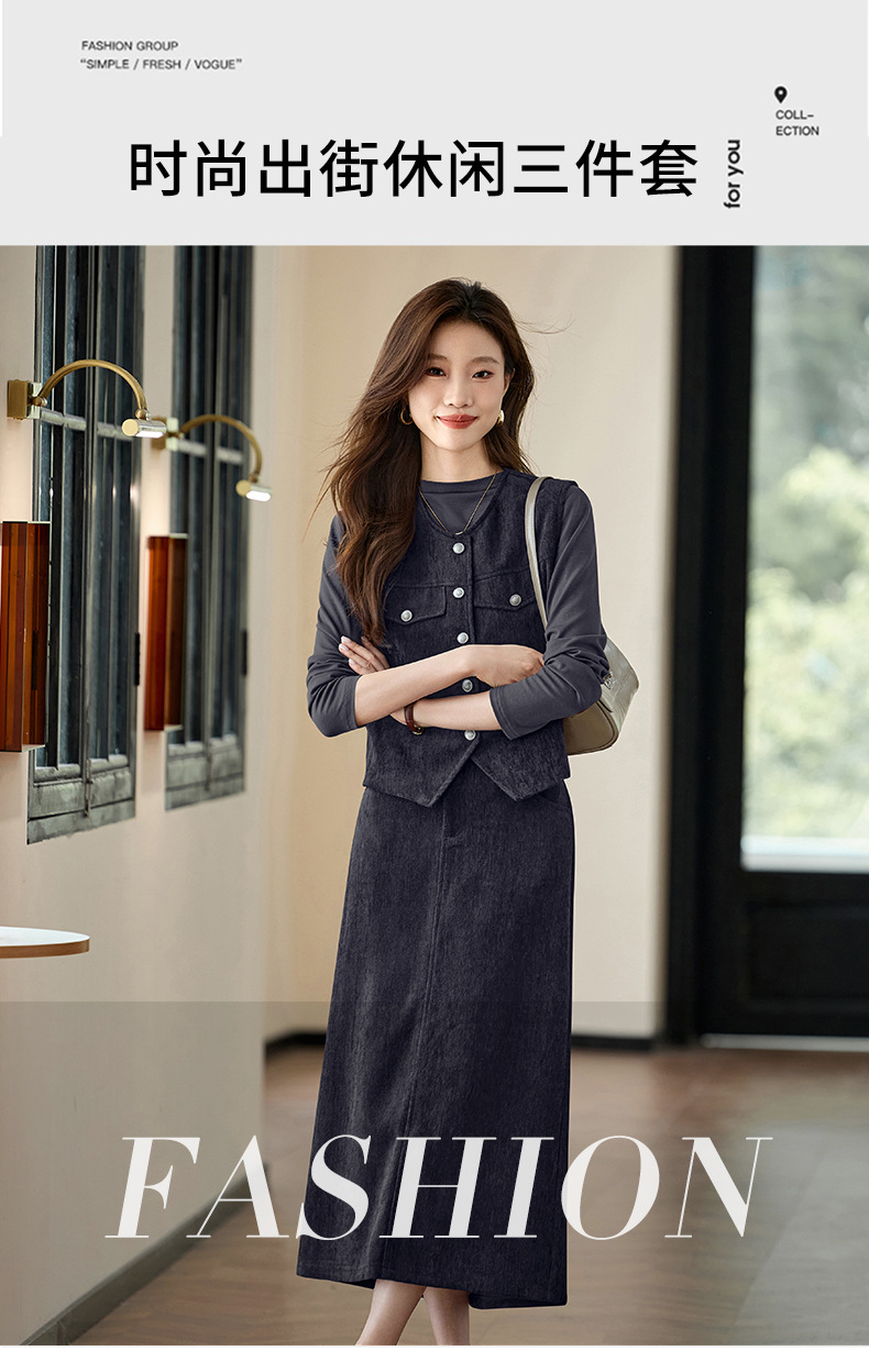 Bộ trang phục ba món này gồm áo khoác dạng vét, áo thun dài tay và chân váy. Thiết kế tạo dáng thanhai mảnh, toát lên vẻ đẹp dịu dàng và lịch sự. Kiểu dáng phù hợp cho tiết trời thu, dễ dàng phối đồ. Bạn có thể mặc nguyên bộ để có vẻ ngoài chỉn chu, hoặc tách riêng từng món để phối với các trang phục khác. Sản phẩm tiện lợi, giúp bạn có nhiều lựa chọn phong cách mỗi ngày. | Tên sản phẩm: Đồ Bộ Nữ Dài Tay Cả Bộ 3 Món Hàng Mùa Xuân Thu Đông - Thời Trang Nữ | Mã sản phẩm: B7327 - Giá: 1.770.000đ | Mã nhà sản xuất: HADG-G05Hình ảnh sản phẩm