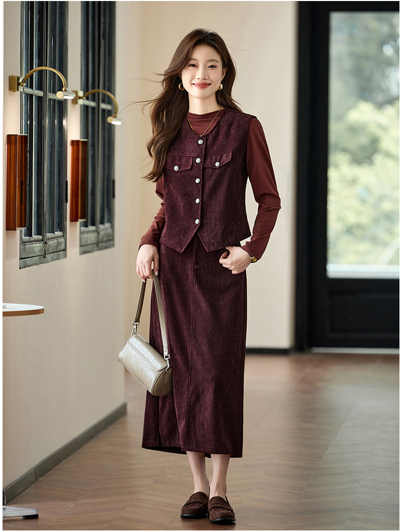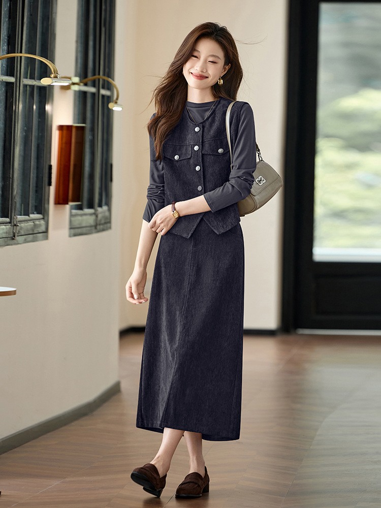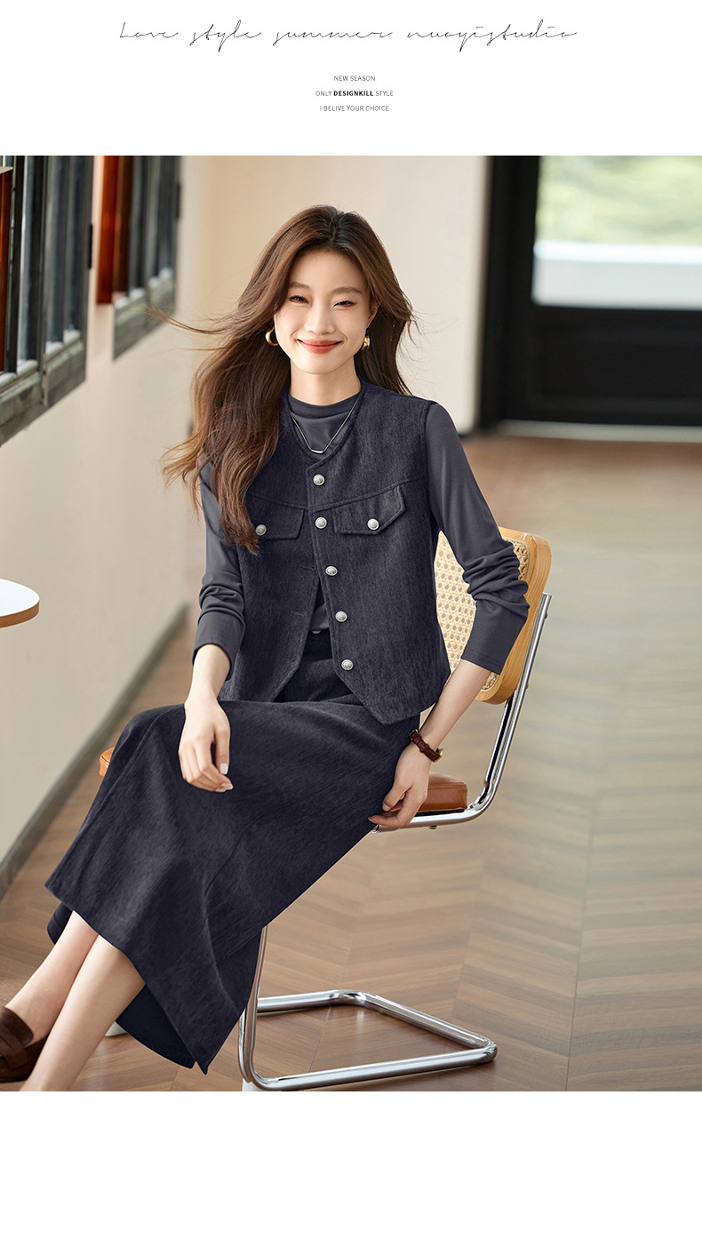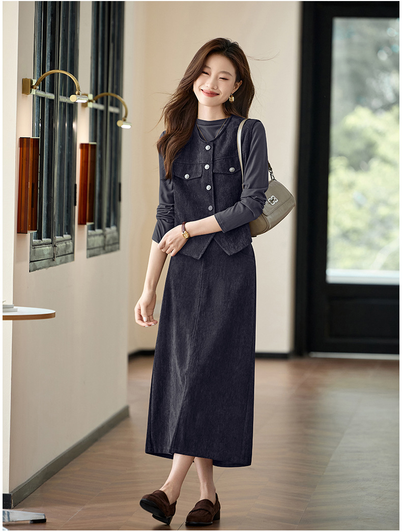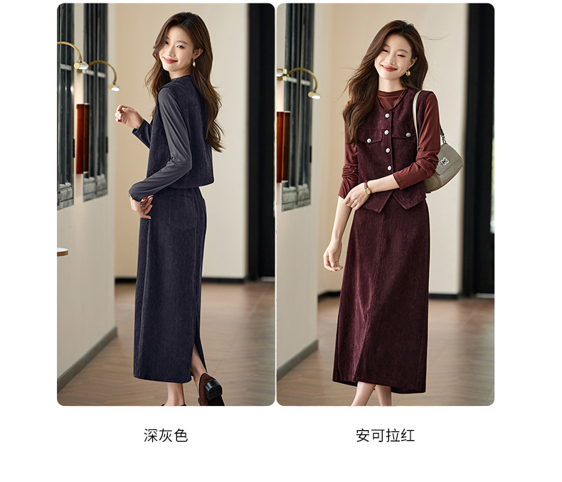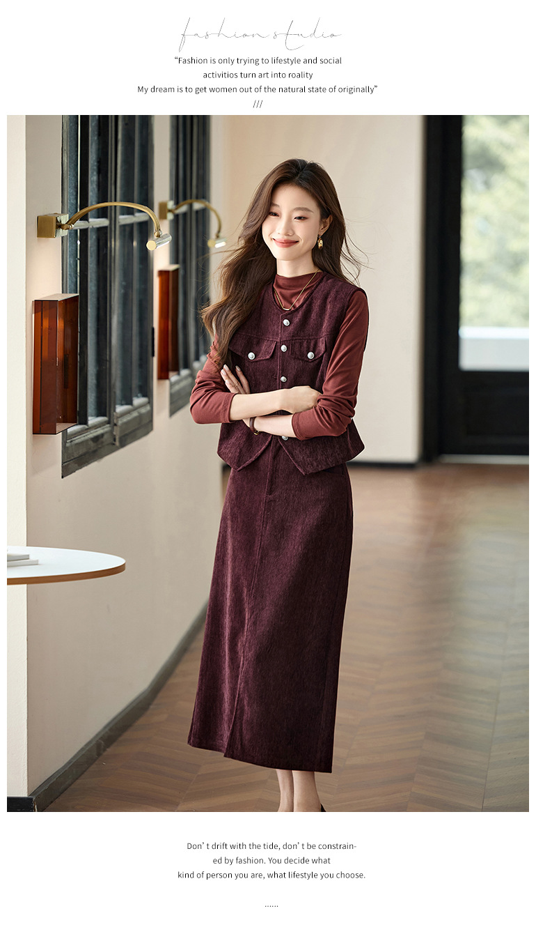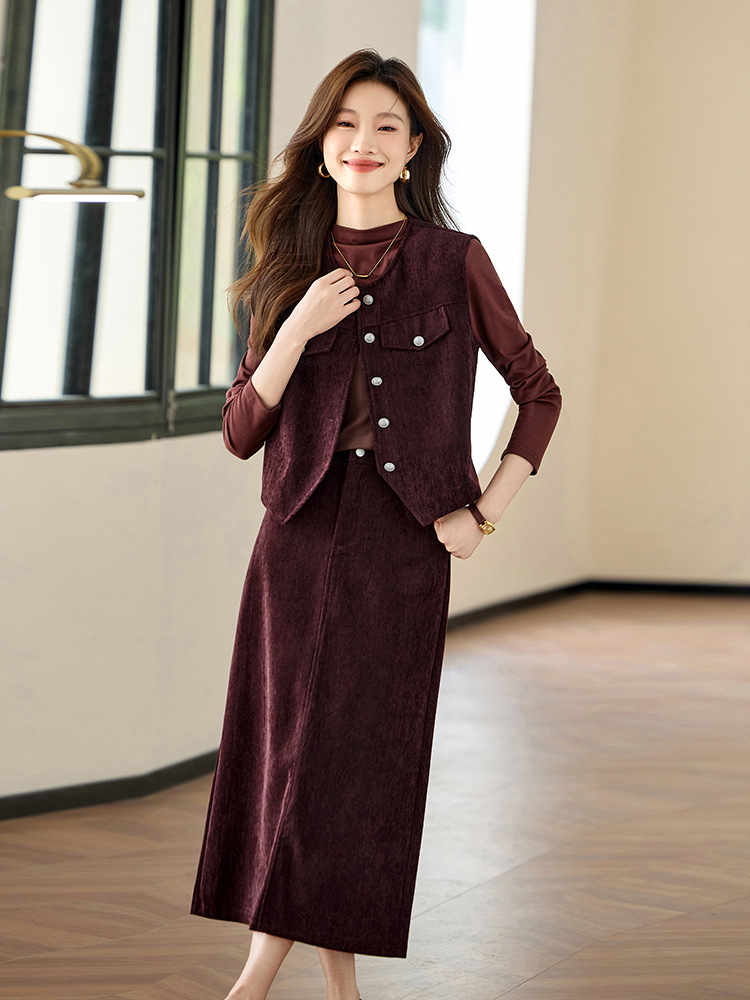 Bộ trang phục ba món này gồm áo khoác dạng vét, áo thun dài tay và chân váy. Thiết kế tạo dáng thanhai mảnh, toát lên vẻ đẹp dịu dàng và lịch sự. Kiểu dáng phù hợp cho tiết trời thu, dễ dàng phối đồ. Bạn có thể mặc nguyên bộ để có vẻ ngoài chỉn chu, hoặc tách riêng từng món để phối với các trang phục khác. Sản phẩm tiện lợi, giúp bạn có nhiều lựa chọn phong cách mỗi ngày. | Tên sản phẩm: Đồ Bộ Nữ Dài Tay Cả Bộ 3 Món Hàng Mùa Xuân Thu Đông - Thời Trang Nữ | Mã sản phẩm: B7327 - Giá: 1.770.000đ | Mã nhà sản xuất: HADG-G05Hình ảnh sản phẩm