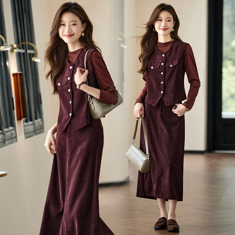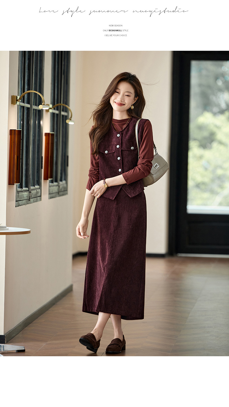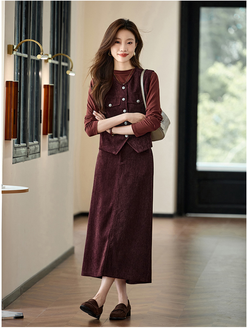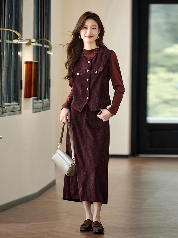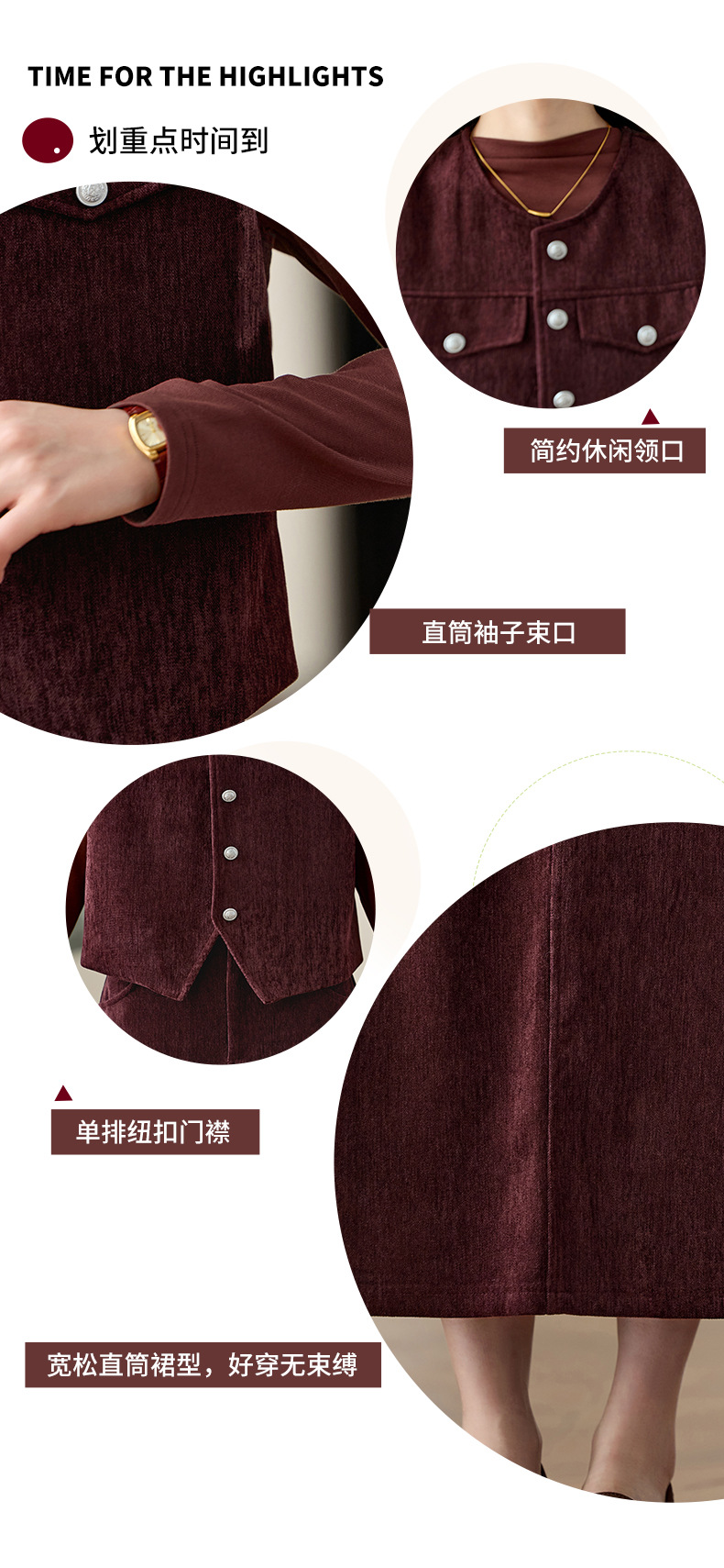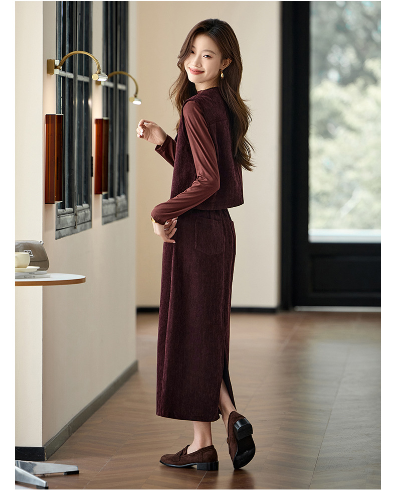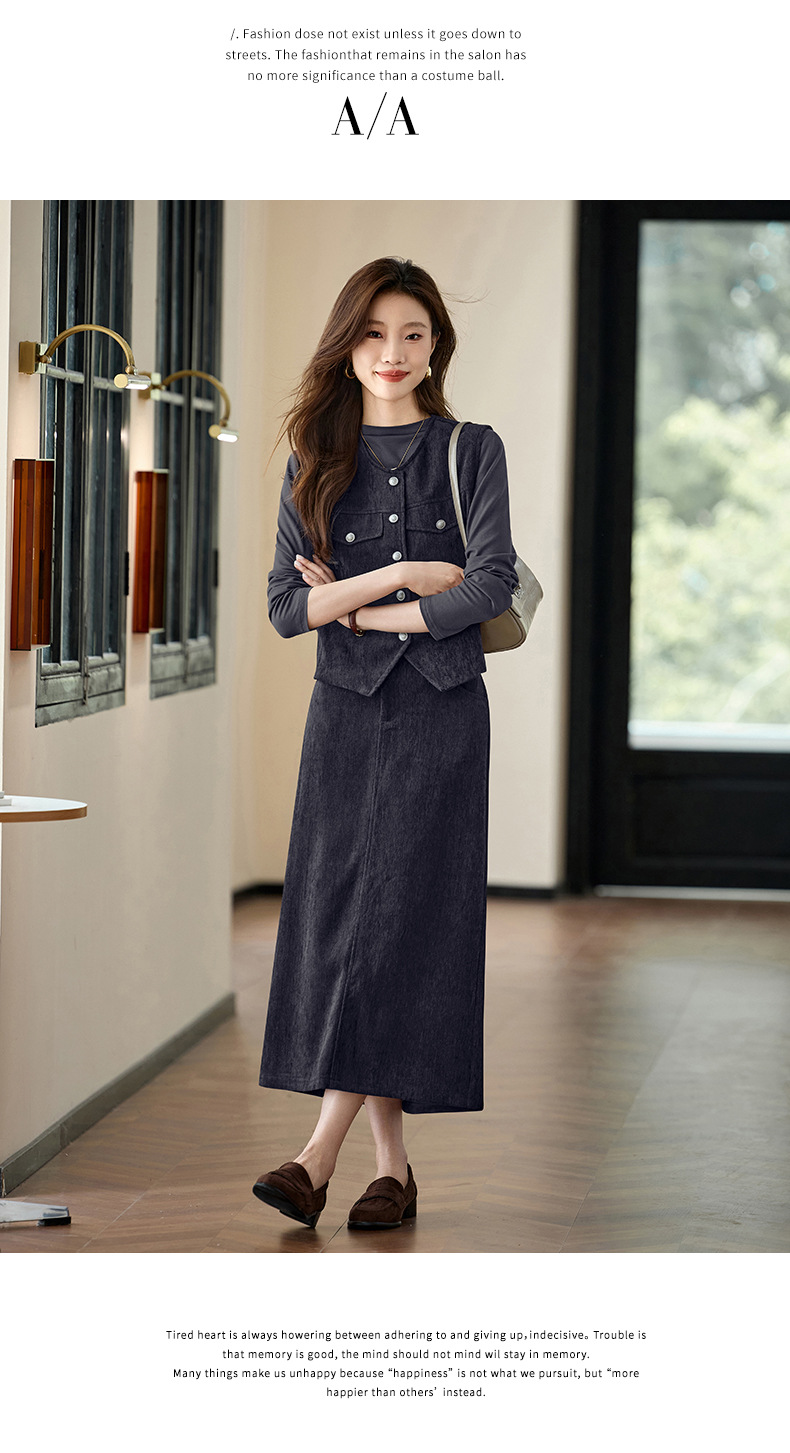 Bộ trang phục ba món này gồm áo khoác dạng vét, áo thun dài tay và chân váy. Thiết kế tạo dáng thanhai mảnh, toát lên vẻ đẹp dịu dàng và lịch sự. Kiểu dáng phù hợp cho tiết trời thu, dễ dàng phối đồ. Bạn có thể mặc nguyên bộ để có vẻ ngoài chỉn chu, hoặc tách riêng từng món để phối với các trang phục khác. Sản phẩm tiện lợi, giúp bạn có nhiều lựa chọn phong cách mỗi ngày. | Tên sản phẩm: Đồ Bộ Nữ Dài Tay Cả Bộ 3 Món Hàng Mùa Xuân Thu Đông - Thời Trang Nữ | Mã sản phẩm: B7327 - Giá: 1.770.000đ | Mã nhà sản xuất: HADG-G05Hình ảnh sản phẩm