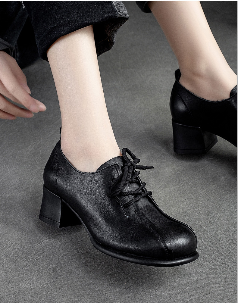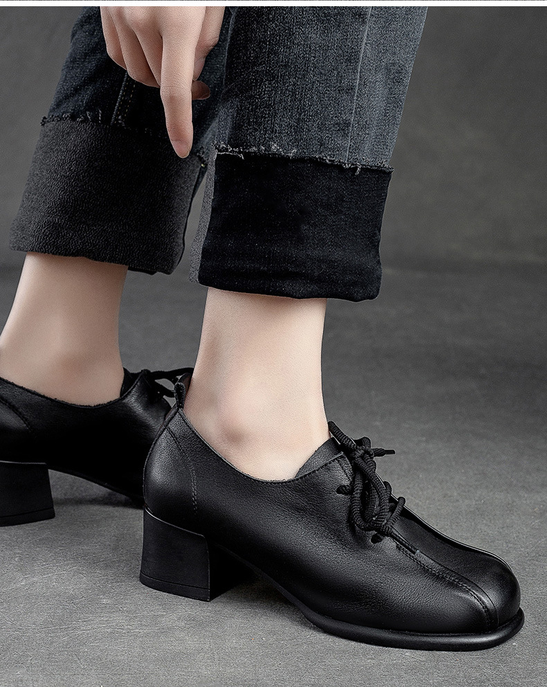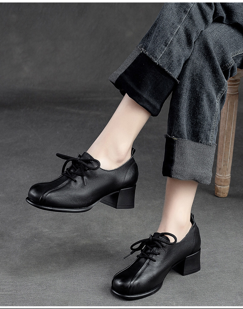 Giày thiết kế kiểu dáng tròn, phong cách cổ điển nhẹ nhàng phù hợp cho các bạn nữ. Sản phẩm được làm từ chất da bò mềm mại, mang lại cảm giác dễ chịu khi mang. Đế giày làm từ chất liệu đàn hồi, kết hợp cùng gót thấp vững chắc, giúp bạn thoải mái vận động cả ngày. Dễ dàng phối cùng nhiều loại trang phục như quần jeans hay váy để tạo vẻ ngoài tươi tắn, thư giãn. | Tên sản phẩm: Giày Cao Gót Nữ Chất Liệu Da Bò Mũi Tròn Gót Vuông Hàng Mùa Xuân Thu Đông Phục Cổ Cổ Điển - Giày Dép Nữ | Mã sản phẩm: B7329 - Giá: 1.380.000đ | Mã nhà sản xuất: SHDU-G04Hình ảnh sản phẩm