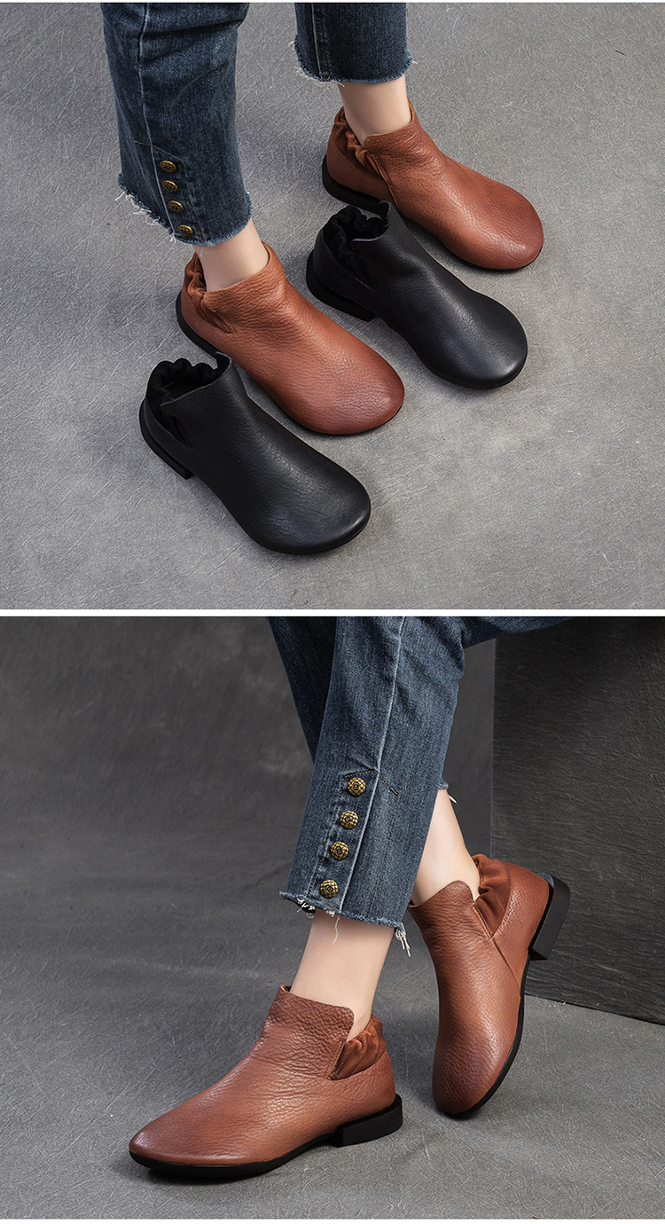 Giày bốt cổ thấp thiết kế kiểu xỏ chân tiện lợi, phù hợp cho việc di chuyển hàng ngày. Sản phẩm được làm từ chất liệu da bò mềm mại, đem lại cảm giác dễ chịu khi mang. Kiểu dáng đơn giản, phối hợp nét cổ điển nhẹ nhàng. Bạn có thể dễ dàng kết hợp với nhiều trang phục khác nhau để tạo nên phong cách riêng cho mình. Chỉ cần xỏ chân vào là có thể ra ngoài ngay. | Tên sản phẩm: Giày Boot Cổ Thấp Nữ Chất Liệu Da Bò Hàng Mùa Xuân Thu Đông Phục Cổ Cổ Điển - Giày Dép Nữ | Mã sản phẩm: B7367 - Giá: 2.670.000đ | Mã nhà sản xuất: SHDU-G06Hình ảnh sản phẩm