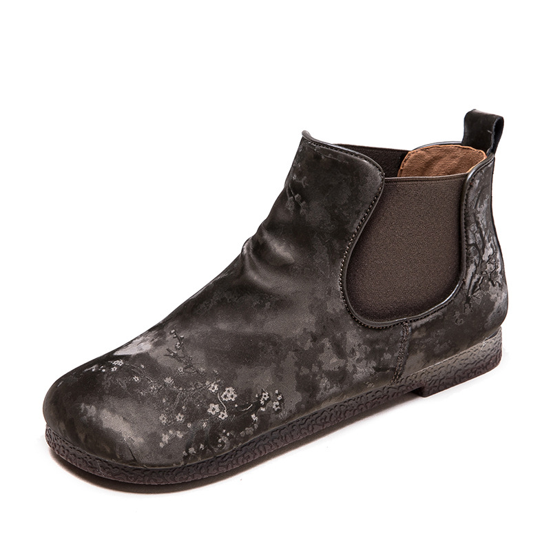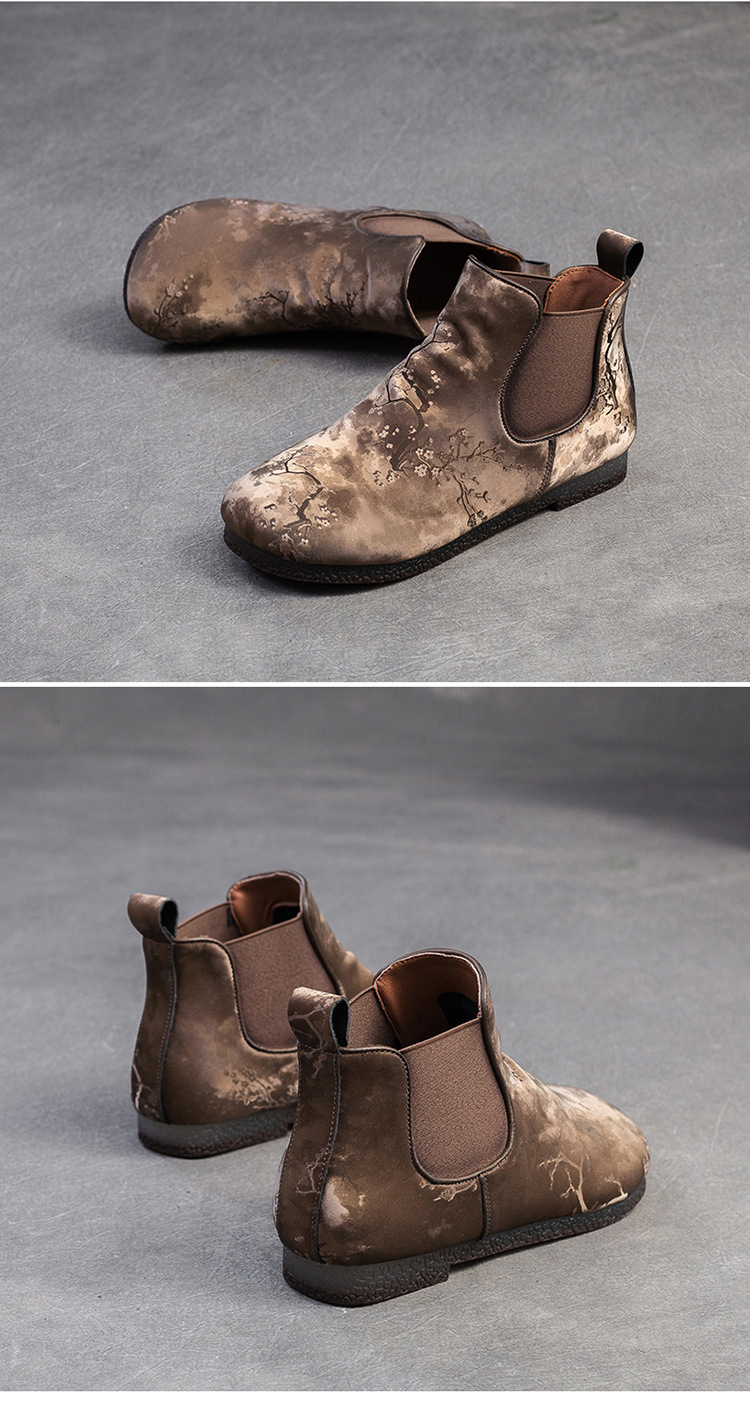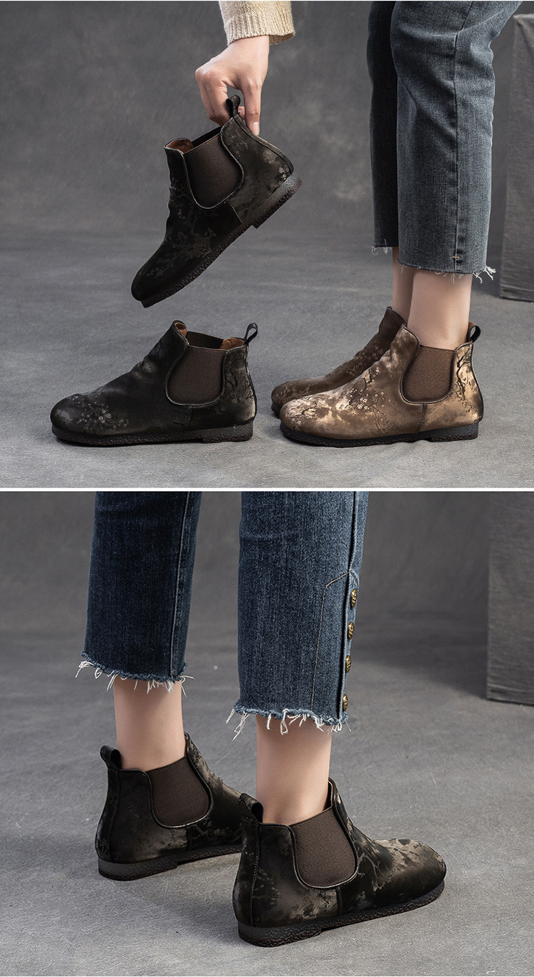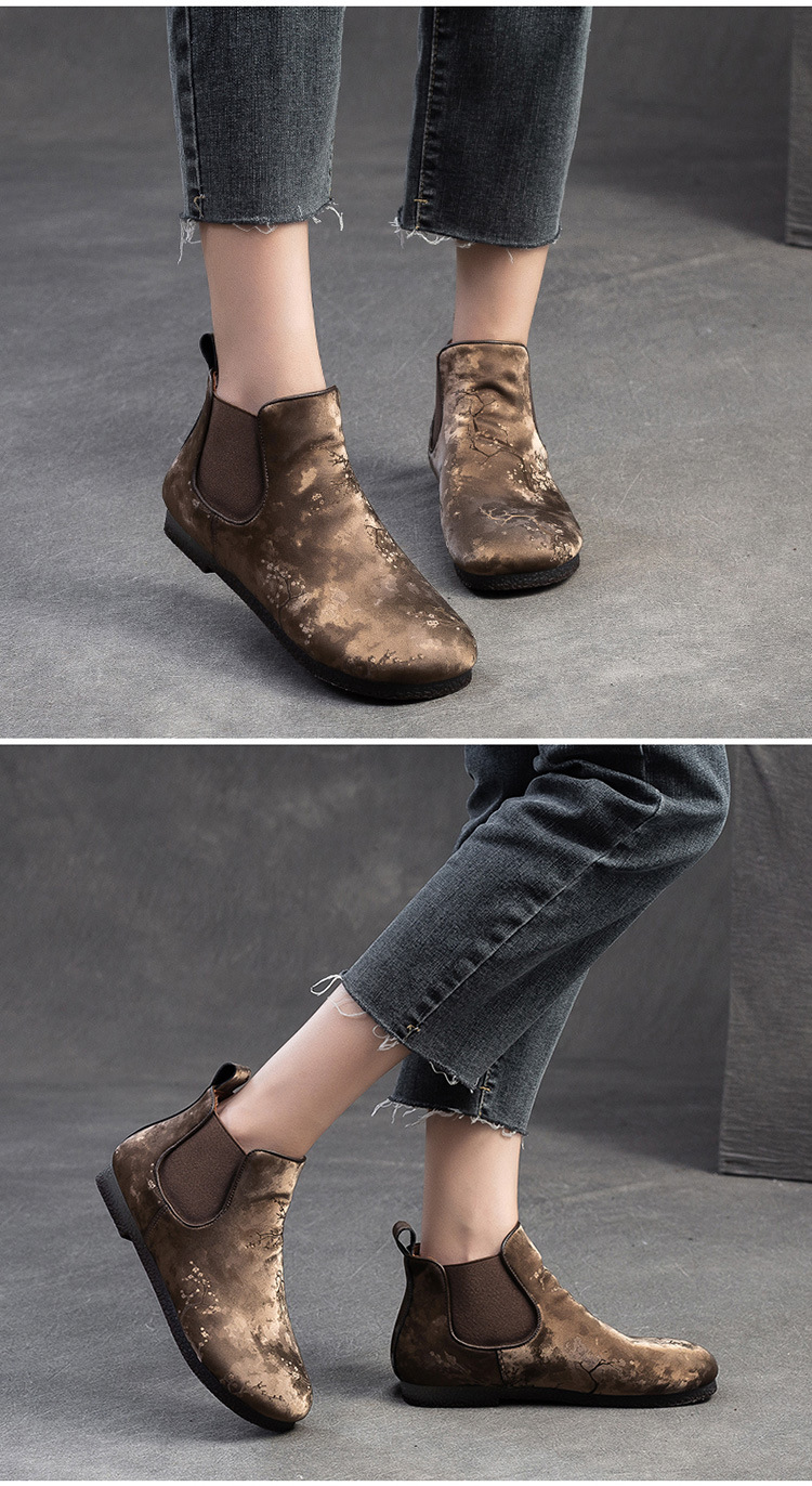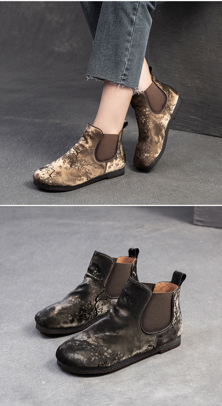 Bốt ngắn nữ tính với phần mũi tròn dễ thương, phong cách dân tộc pha chút hoài cổ. Sản phẩm được làm từ chất liệu lụa mềm mại, mang lại cảm giác dễ chịu khi mang. Đế bằng phẳng giúp bạn di chuyển thoải mái cả ngày dài. Kiểu dáng ống suông dễ dàng phối cùng nhiều loại trang phục như quần jeans, váy hay quần short. Bạn có thể sử dụng như một điểm nhấn cho những dịp gặp mặt thân mật hoặc dạo phố. | Tên sản phẩm: Giày Boot Cổ Thấp Nữ Mũi Tròn Hàng Mùa Xuân Thu Đông Phục Cổ Cổ Điển - Giày Dép Nữ | Mã sản phẩm: B7385 - Giá: 1.420.000đ | Mã nhà sản xuất: SHDU-G04Hình ảnh sản phẩm