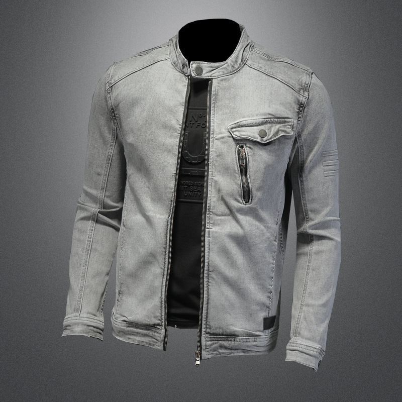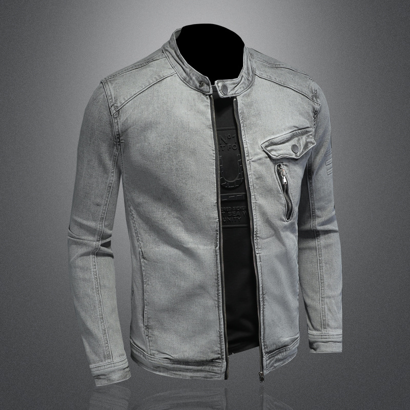 Áo khoác jeans nam với phong cách trẻ trung, năng động. Chất liệu denim co giãn nhẹ kết hợp phối khóa kéo tiện lợi, giúp người mặc dễ dàng vận động. Kiểu dáng ôm vừa vặn cơ thể, tôn lên đường nét cơ bản. Màu sắc chủ đạo là xám tro, được xử lý qua công đoạn giặt tạo hiệu ứng màu tự nhiên. Sản phẩm phù hợp mặc hàng ngày, kết hợp cùng quần jeans hoặc quần kaki. | Tên sản phẩm: Áo Khoác Nam Chất Liệu Jean Bò Dáng Ôm - Thời Trang Nam | Mã sản phẩm: B7410 - Giá: 1.880.000đ | Mã nhà sản xuất: QITYGF-G05Hình ảnh sản phẩm