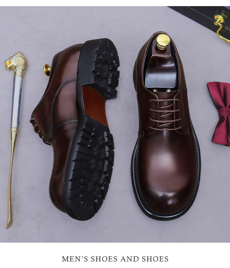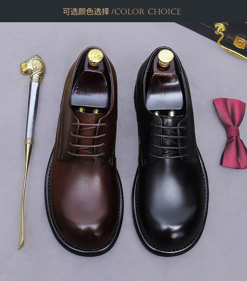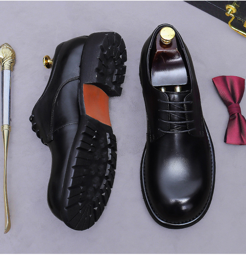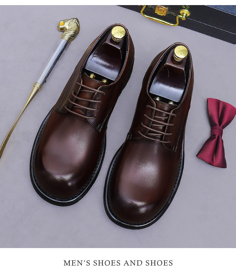 Giày nam thiết kế dáng Derby lịch sự, phù hợp khi đi làm hoặc trong những dịp quan trọng. Sản phẩm được làm từ chất liệu da bò mềm mại, mang lại cảm giác dễ chịu khi mang cả ngày. Đế giày dày được bo tròn ở phần mũi, tạo điểm nhấn nổi bật và giúp bước đi vững chãi hơn. Bạn có thể kết hợp cùng trang phục công sở hoặc vest để có vẻ ngoài chỉn chu. | Tên sản phẩm: Giày Da Nam Chất Liệu Da Bò Mũi Tròn Đế Cao Dùng Trong Lễ Cưới Ngày Cưới - Giày Dép Nam | Mã sản phẩm: B7453 - Giá: 2.310.000đ | Mã nhà sản xuất: ASTYCH-G05Hình ảnh sản phẩm