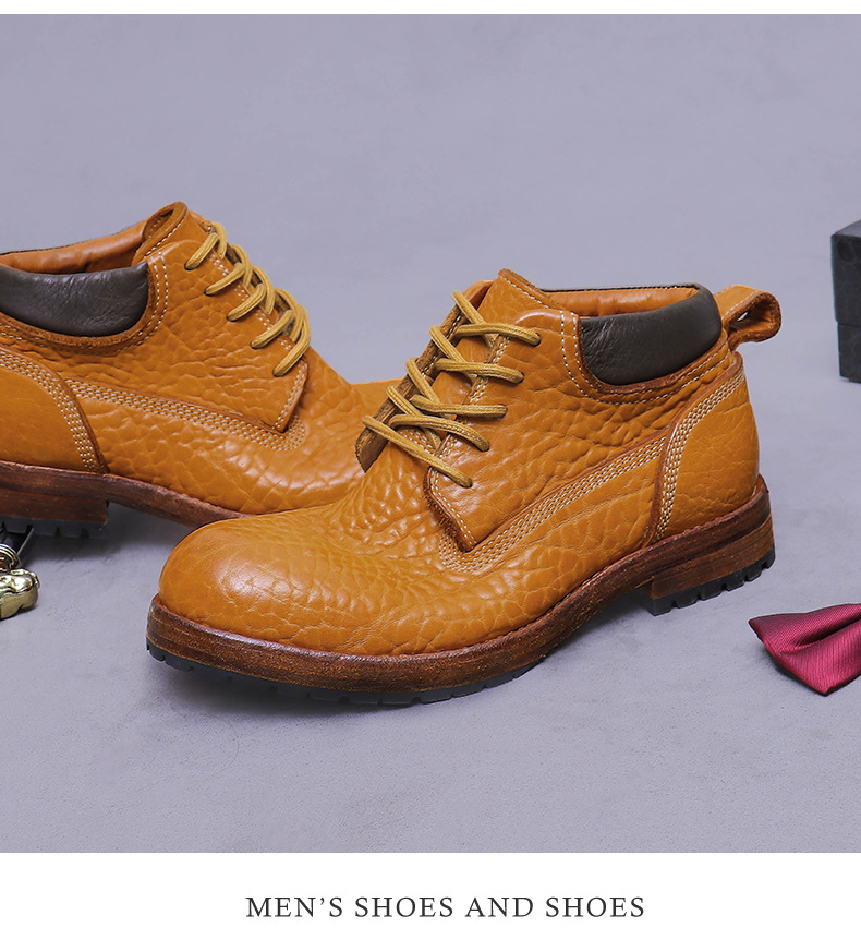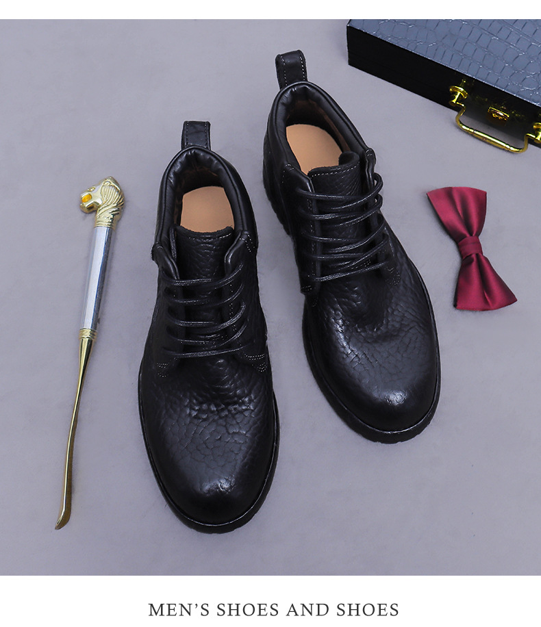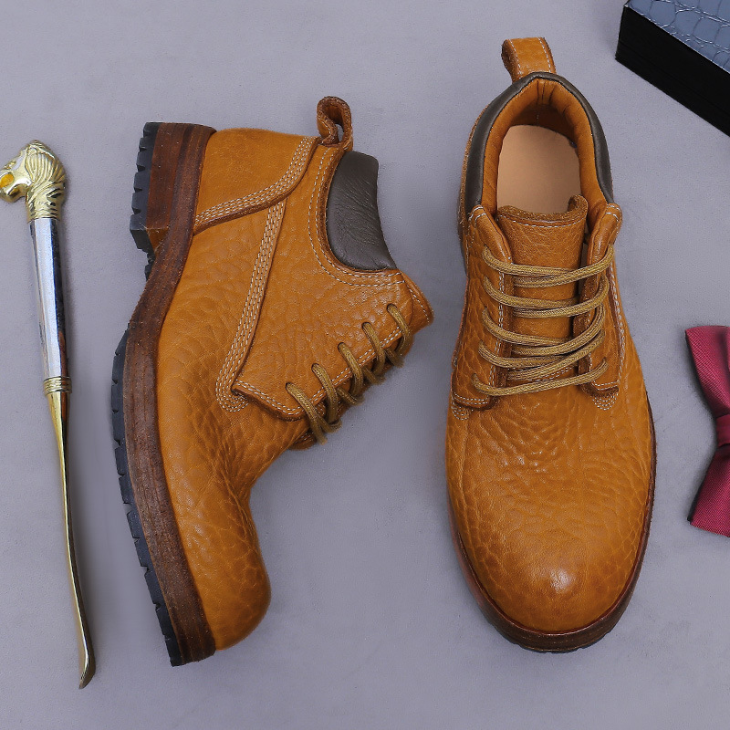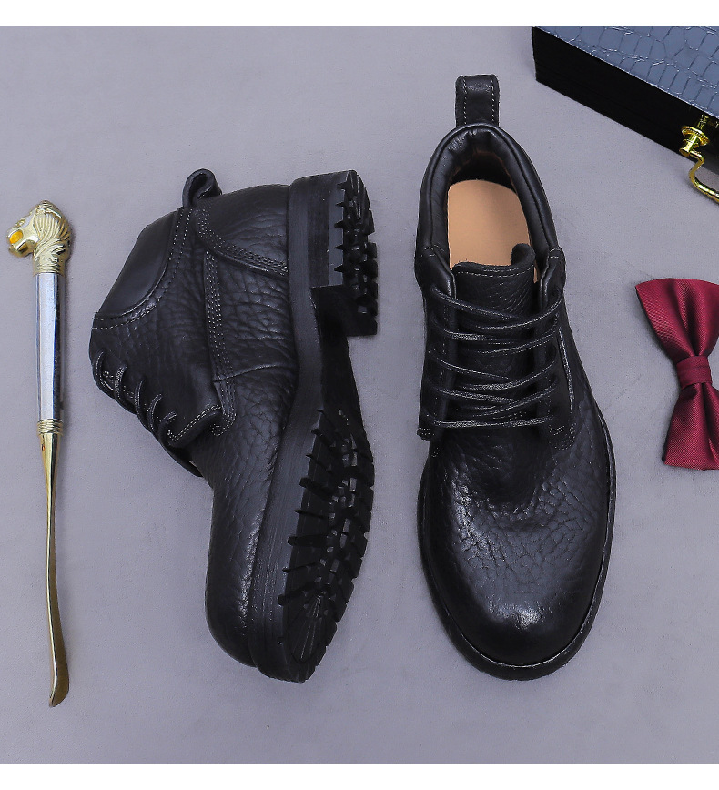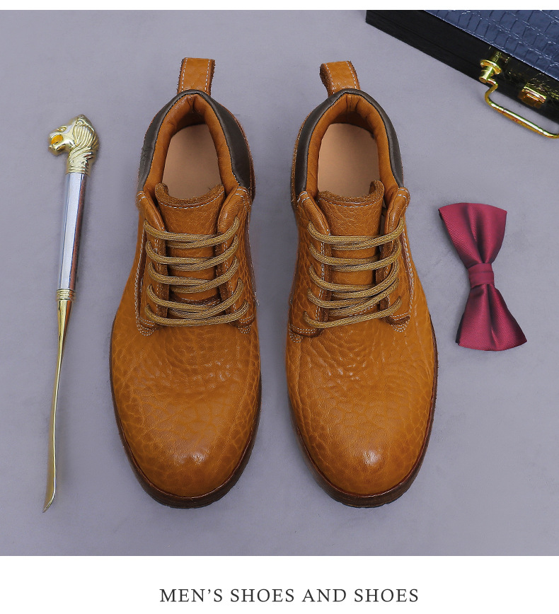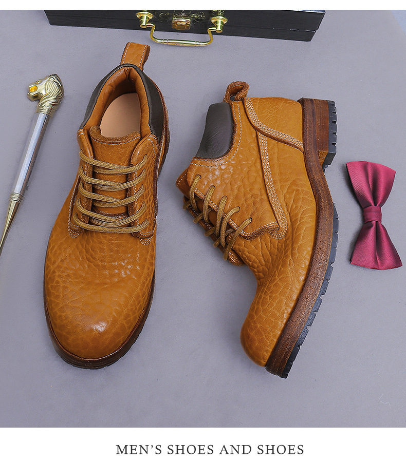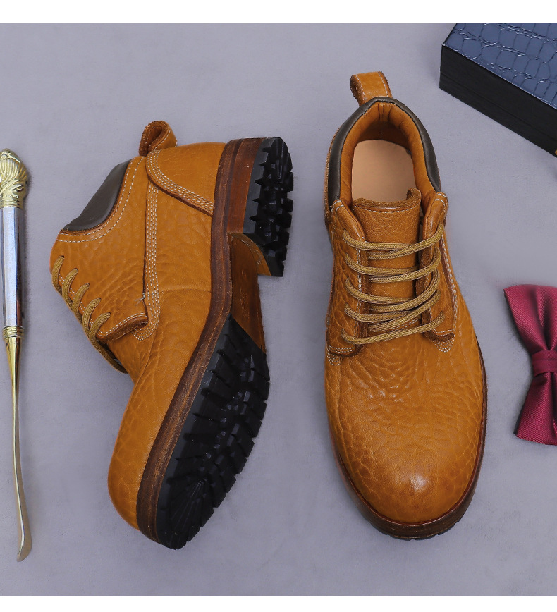 Đôi bốt cổ cao này được làm từ chất liệu da thật vân quả vải, mang đến vẻ ngoại hình mạnh mẽ và cá tính. Kiểu dáng bốt công sở cổ điển kết hợp với phần đế được may thủ công chắc chắn. Sản phẩm phù hợp để đi làm hoặc dạo phố, dễ dàng phối cùng quần jean hay quần vải. Bạn chỉ cần xỏ vào và cột dây kỹ là có thể sử dụng ngay. | Tên sản phẩm: Boot Cổ Thấp Nam Chất Liệu Da Bò - Giày Dép Nam | Mã sản phẩm: B7486 - Giá: 4.950.000đ | Mã nhà sản xuất: ASTYCH-G06Hình ảnh sản phẩm