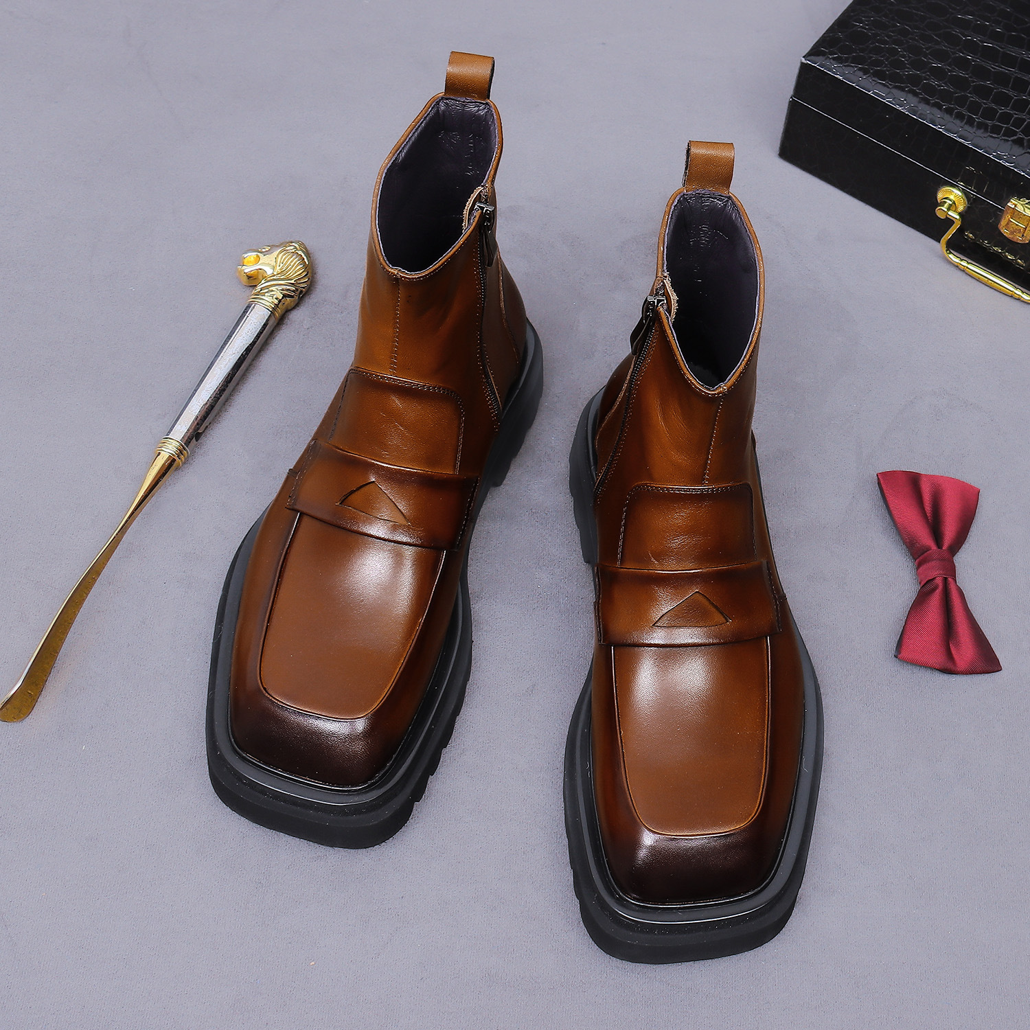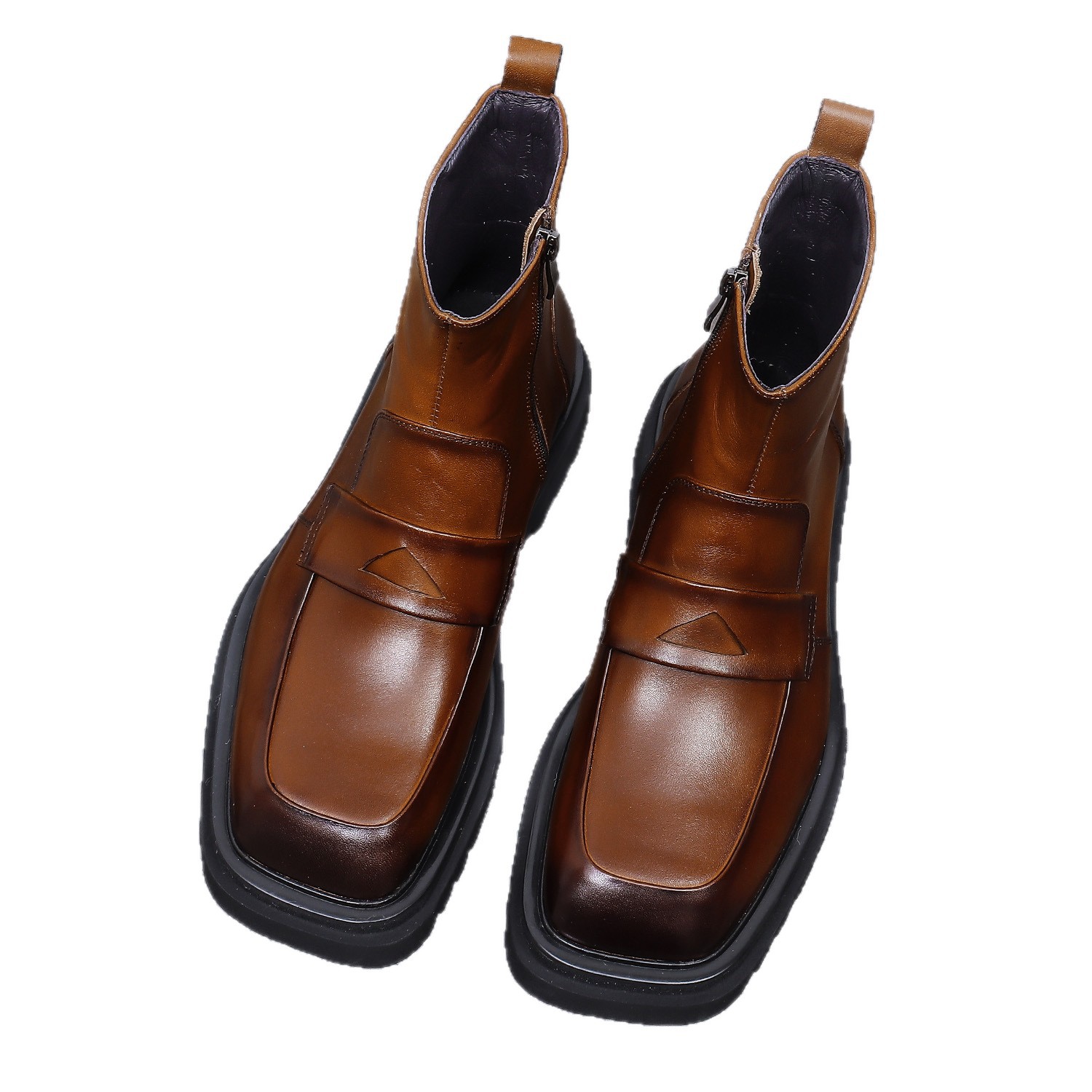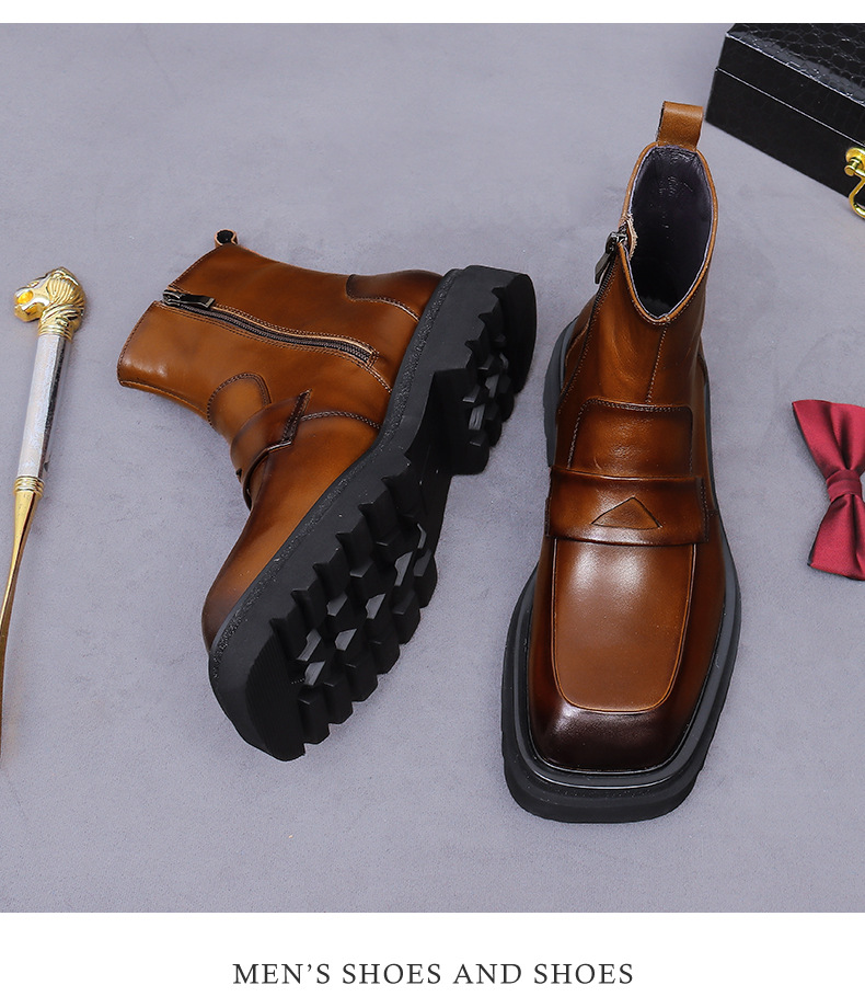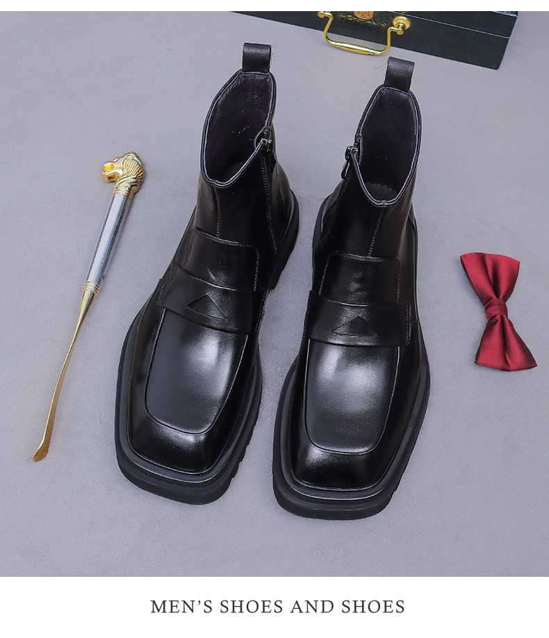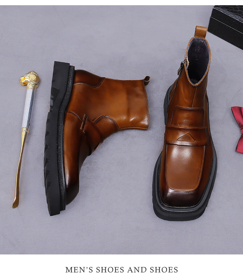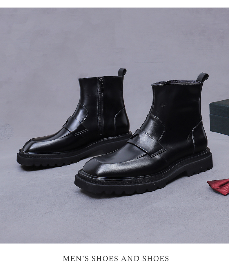 Giày boot nam kiểu dáng Anh mới ra, kết hợp chất liệu da và vải bền đẹp. Thiết kế cổ thấp vừa phải, ôm chân nhẹ nhàng. Phần mũi vuông tạo điểm nhấn khỏe khoắn, phù hợp khi mặc quần âu hay jeans. Sử dụng khóa kéo bên hông giúp mang vào tháo ra dễ dàng. Có thể xỏ chân trực tiếp mà không cần buộc dây. Kiểu dáng lịch sự, dùng được trong nhiều dịp khác nhau. | Tên sản phẩm: Boot Martin Nam Chất Liệu Da Bò - Giày Dép Nam | Mã sản phẩm: B7501 - Giá: 2.730.000đ | Mã nhà sản xuất: ASTYCH-G06Hình ảnh sản phẩm
