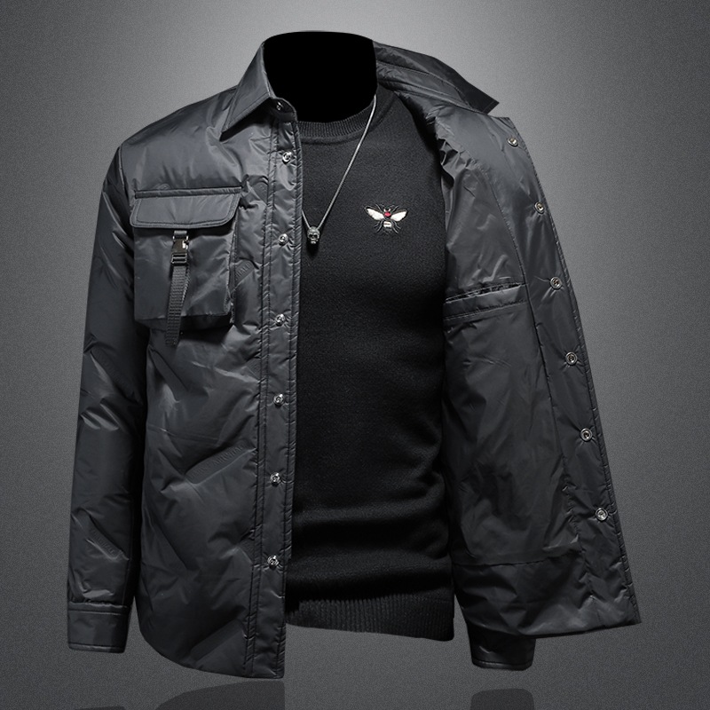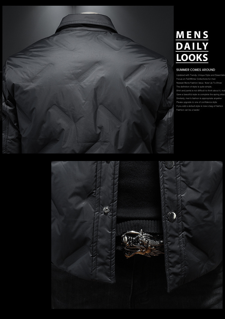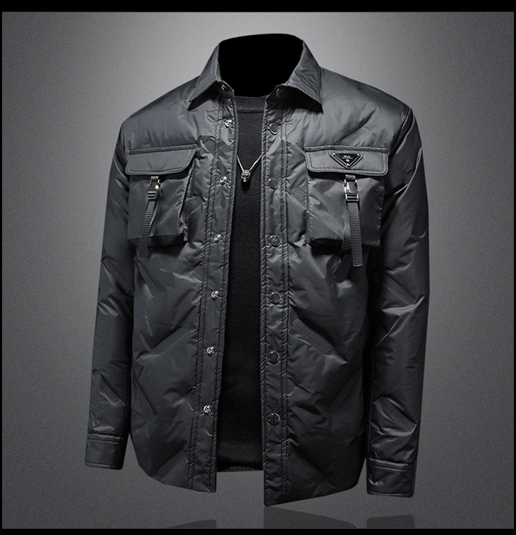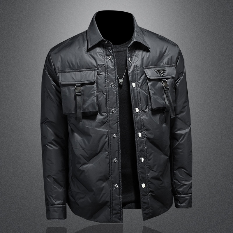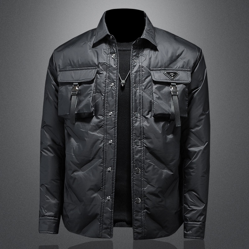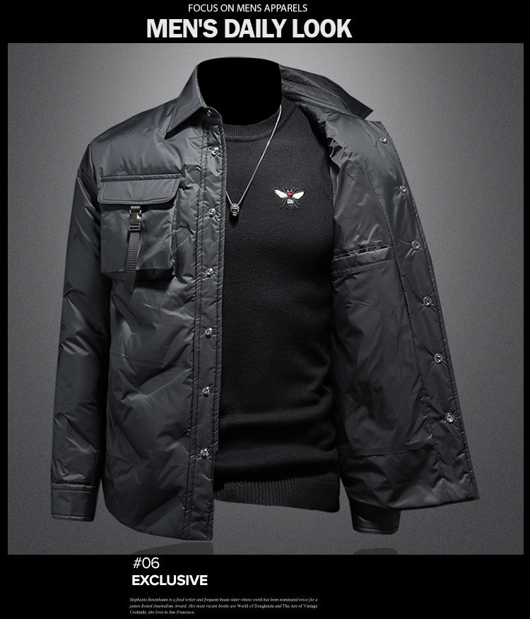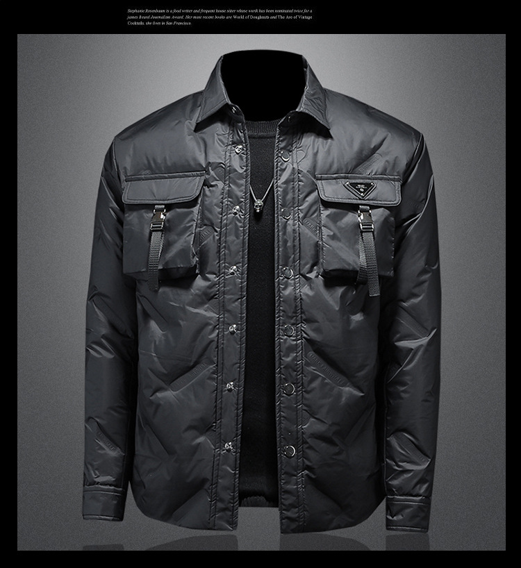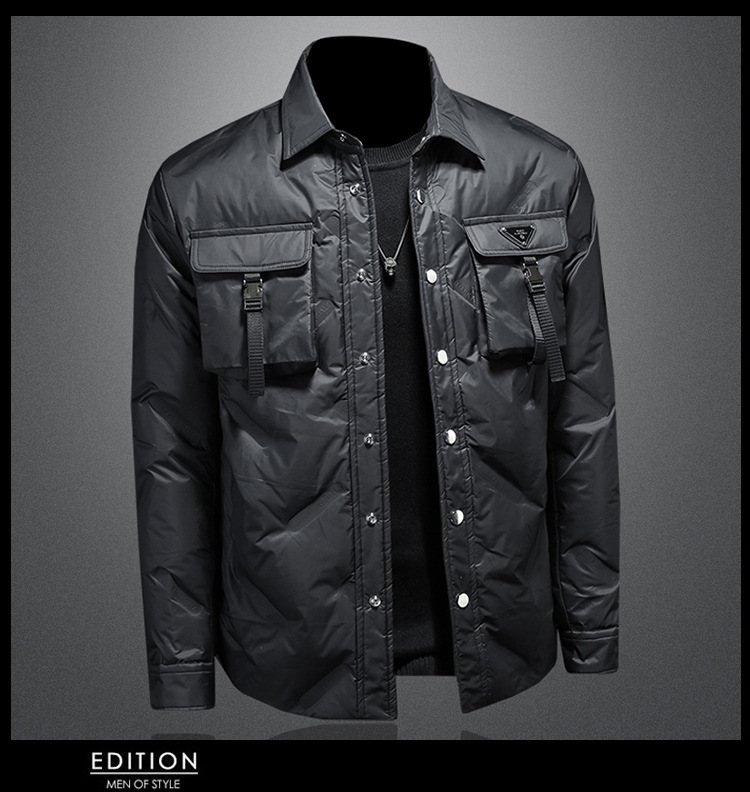 Áo khoác dáng ôm dành cho nam, có cổ sơ mi và túi tiện lợi. Sản phẩm được lót bằng lớp lông vũ ấm áp, phù hợp mặc trong tiết trời lạnh. Kiểu dáng trẻ trung, thiết kế dạng áo khoác ngắn giúp người mặc cảm thấy thoải mái khi vận động nhẹ. Có thể mặc kết hợp cùng áo thun bên trong hoặc mặc như một lớp áo khoác ngoài cùng để giữ nhiệt tốt hơn. | Tên sản phẩm: Áo Sơ Mi Nam Dáng Ôm Hàng Mùa Xuân Thu Đông Phong Cách Trẻ Trung - Thời Trang Nam | Mã sản phẩm: B7510 - Giá: 2.410.000đ | Mã nhà sản xuất: QITYGF-G05Hình ảnh sản phẩm
