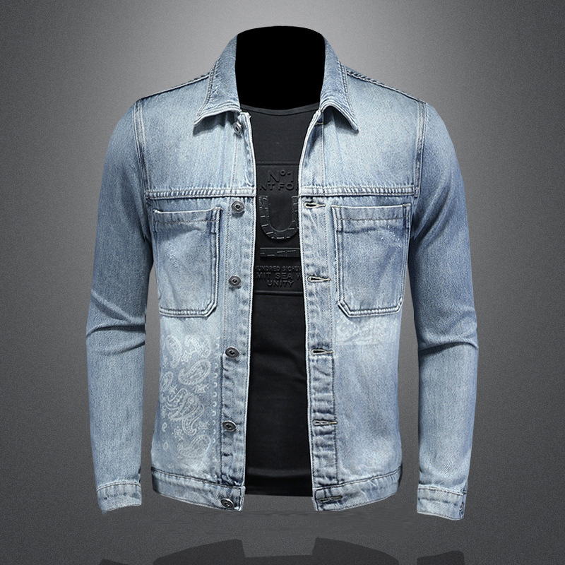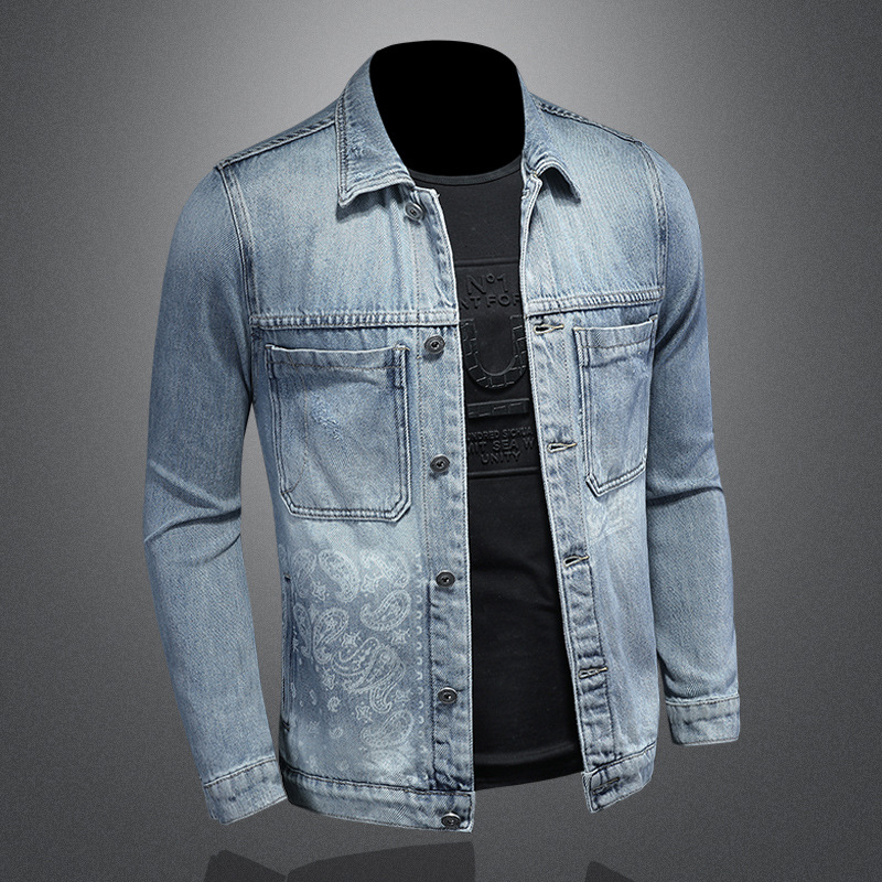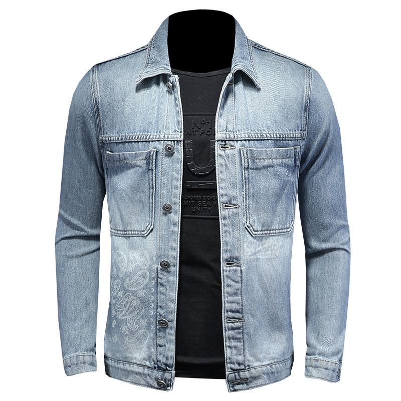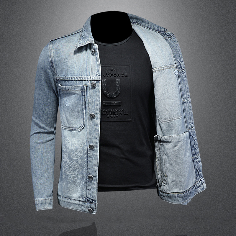 Áo khoác denim nam với họa tiết hạt điều độc đáo, mang phong cách cổ điển nhẹ nhàng. Sản phẩm có thiết kế nhiều túi tiện lợi, vừa giúp bảo quản đồ dùng cá nhân vừa tạo điểm nhấn. Áo sử dụng chất liệu vải bền chắc, màu xanh nhạt dễ dàng phối cùng nhiều trang phục. Có thể mặc như áo khoác ngoài hàng ngày hoặc kết hợp khi đi chơi. Giặt với nước lạnh và phơi khô tự nhiên để giữ form áo và màu vải đẹp lâu. | Tên sản phẩm: Áo Sơ Mi Nam Chất Liệu Jean Bò Họa Tiết Hoa Hàng Mùa Xuân Thu Đông Phục Cổ Cổ Điển - Thời Trang Nam | Mã sản phẩm: B7537 - Giá: 1.880.000đ | Mã nhà sản xuất: QITYGF-G05Hình ảnh sản phẩm
