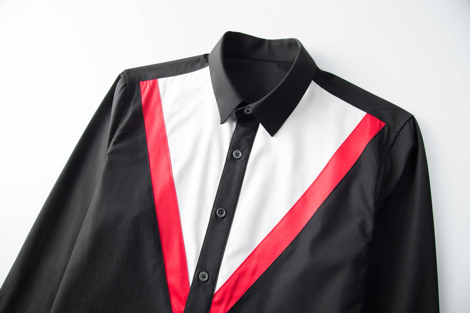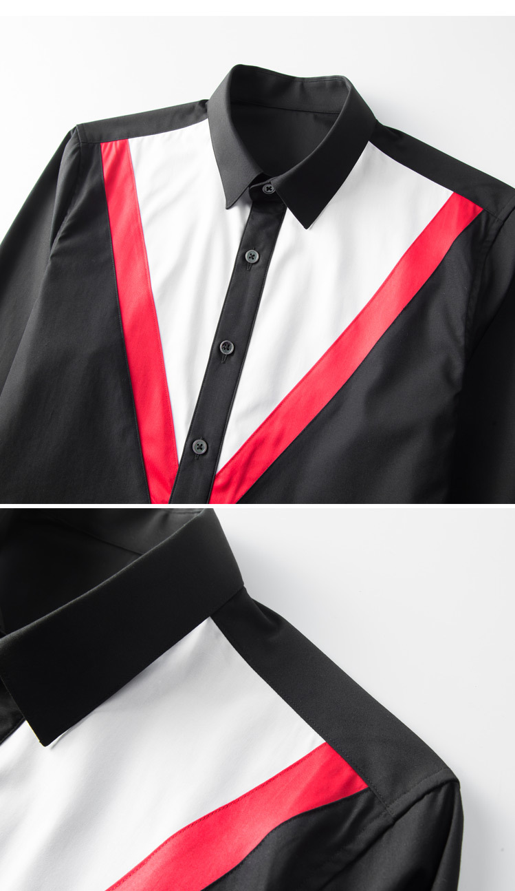 Áo sơ mi nam dáng ôm với điểm nhấn là phần vạt trước được cắt tạo hình tam giác bằng chất liệu màu tương phản. Tay dài phù hợp mặc hằng ngày. Kiểu dáng trẻ trung, phá cách nhưng vẫn lịch sự. Sản phẩm dễ dàng phối cùng quần tây hoặc quần jean. Giặt máy nhẹ nhàng và ủi ở nhiệt độ vừa phải để giữ form áo. | Tên sản phẩm: Áo Sơ Mi Nam Dáng Ôm - Thời Trang Nam | Mã sản phẩm: B7538 - Giá: 2.190.000đ | Mã nhà sản xuất: SHDAP-G05Hình ảnh sản phẩm