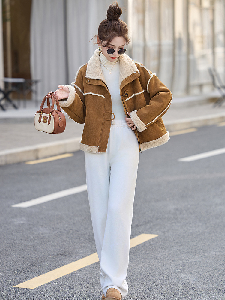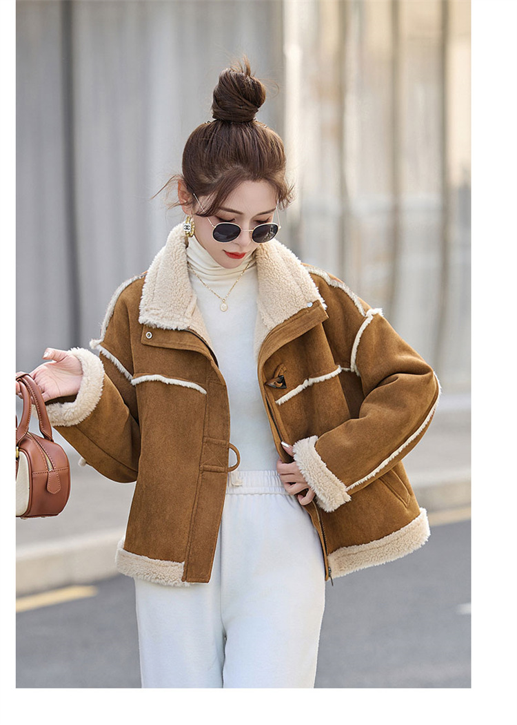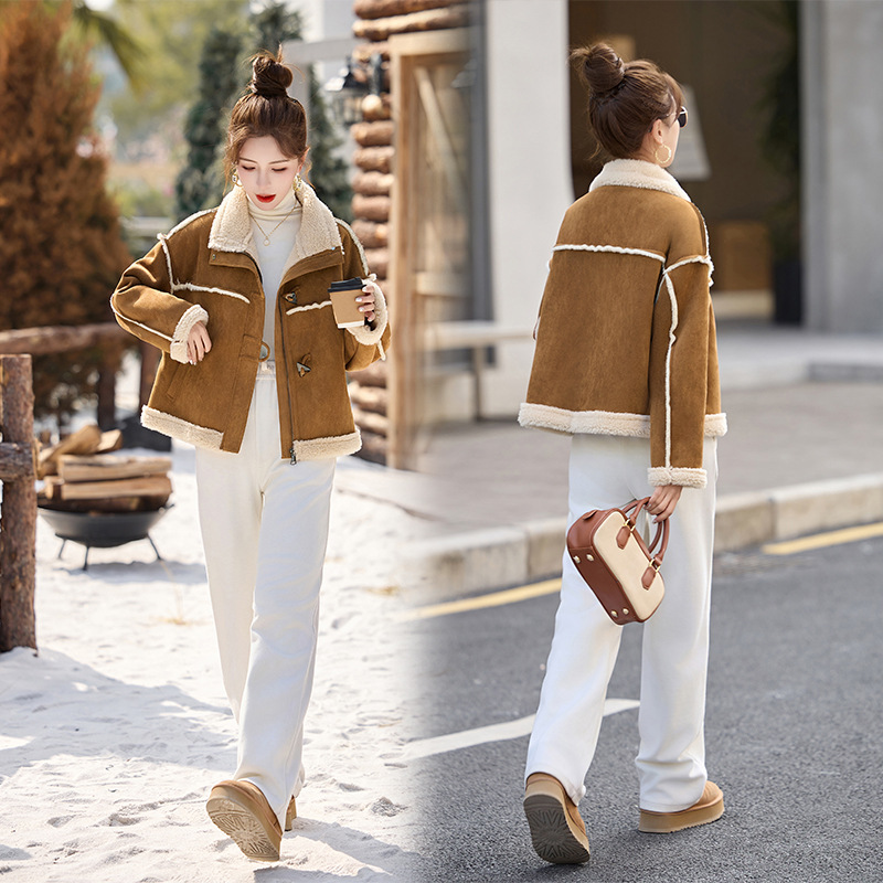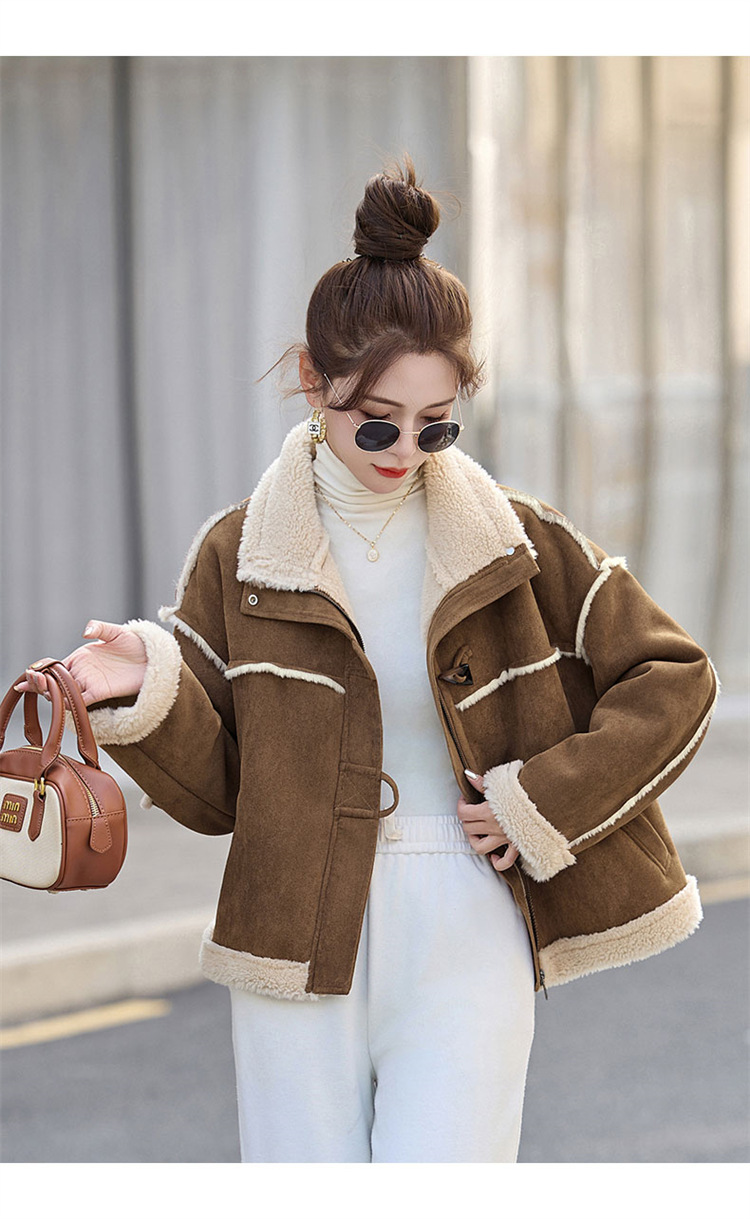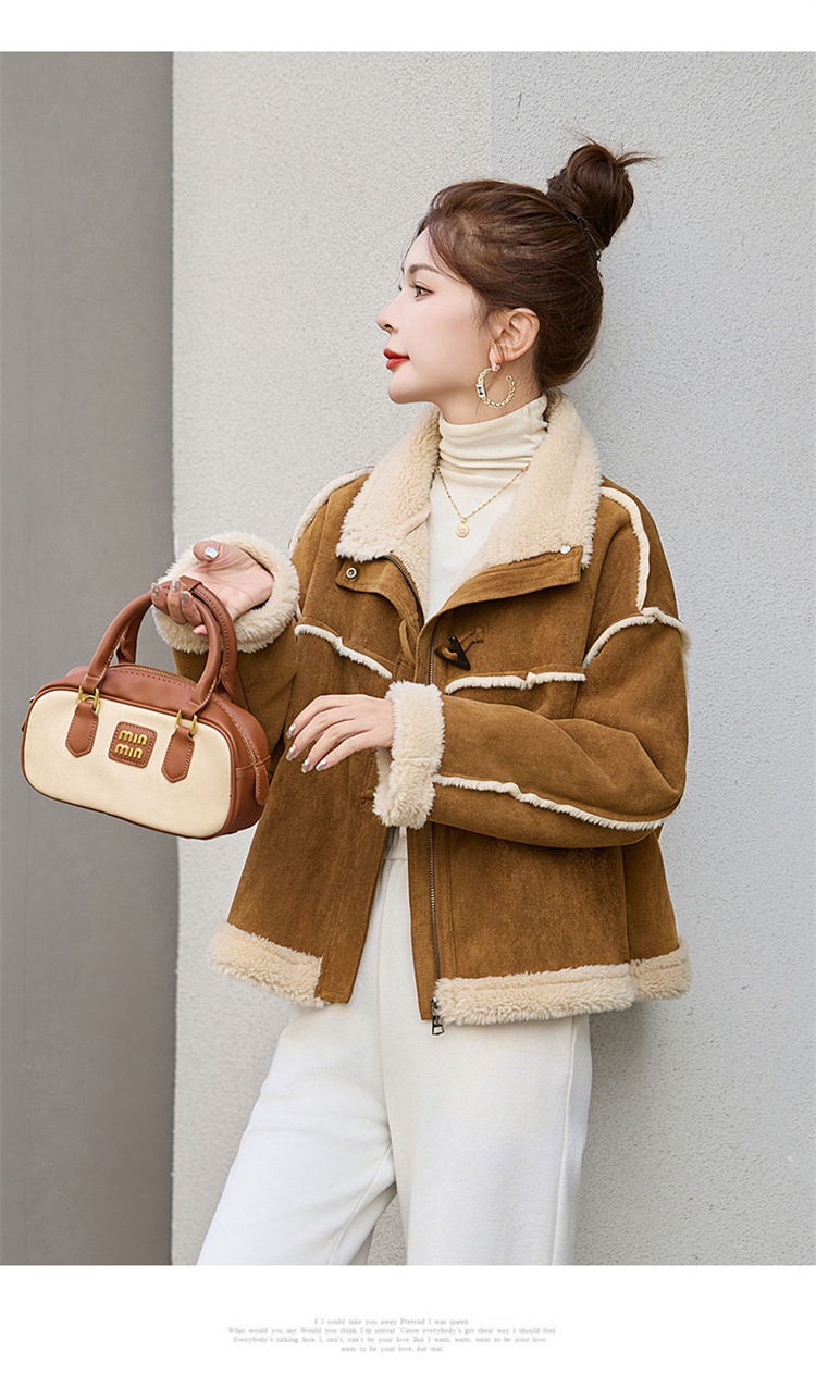 Áo khoác nữ dáng vừa vặn, được kết hợp từ hai lớp vải mềm mại bên trong và ngoài. Lớp trong có chất liệu lông cừu non ấm áp, còn lớp ngoài làm từ vải da lộn mịn màng. Kiểu dáng thời trang, dễ dàng kết hợp với nhiều trang phục khác nhau như quần jeans hay váy liền. Sản phẩm phù hợp cho những ngày thu đông, giữ ấm tốt mà không gây bí. Chỉ cần mặc trực tiếp, phối cùng trang sức nhẹ nhàng là đã có vẻ ngoài ưa nhìn. | Tên sản phẩm: Áo Khoác Nữ Hàng Mùa Xuân Thu Đông - Thời Trang Nữ | Mã sản phẩm: B7540 - Giá: 2.170.000đ | Mã nhà sản xuất: HADG-G05Hình ảnh sản phẩm