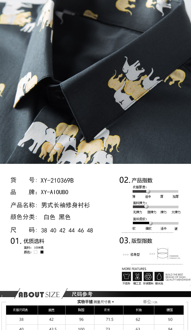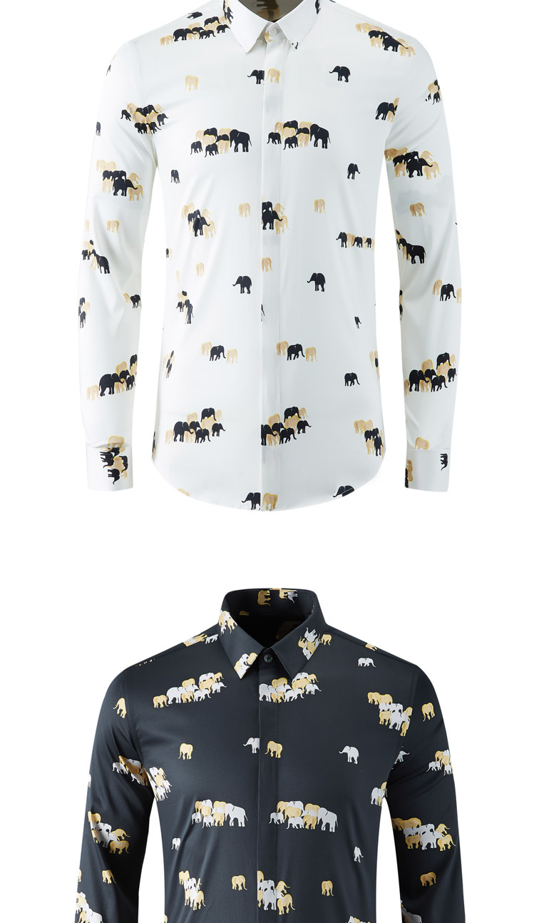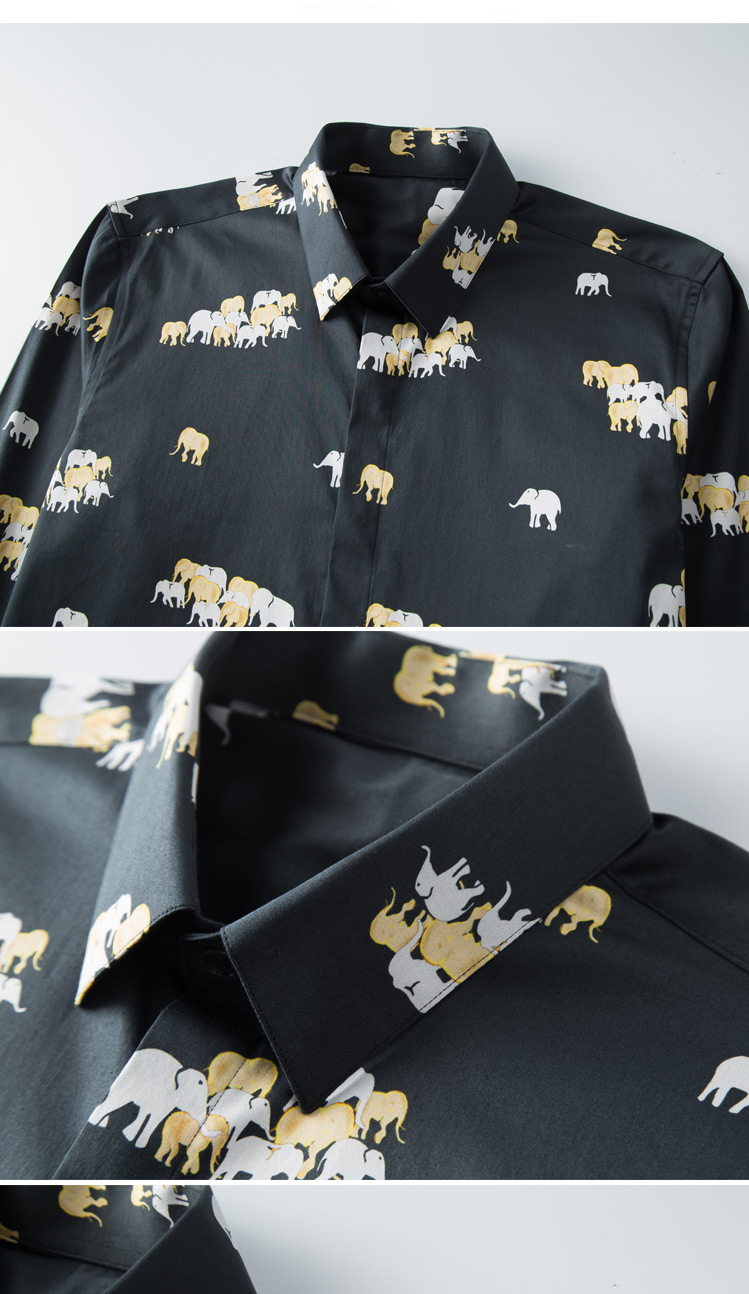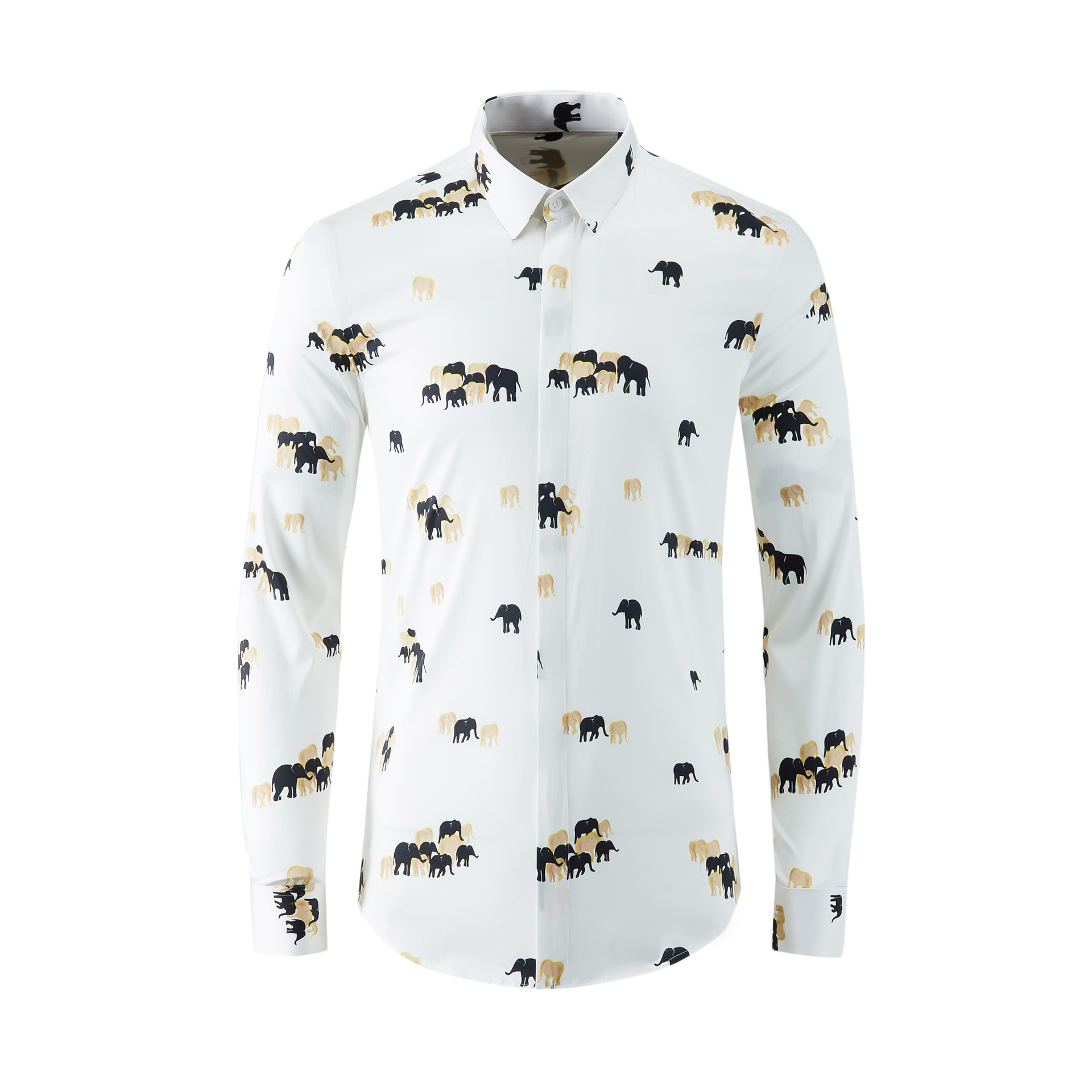 Áo sơ mi nam tay dài có hình con voi in kỹ thuật số sắc nét, tạo điểm nhấn sinh động. Chất vải cotton mềm mại, thoáng mát cho cả ngày dài dễ chịu. Kiểu dáng ôm vừa vặn cơ thể, phù hợp với phong cách trẻ trung, nhẹ nhàng. Sản phẩm mặc kèm quần tây hay quần jean đều hợp. Giặt tay hoặc máy nhẹ nhàng để hình in bền đẹp theo thời gian. | Tên sản phẩm: Áo Sơ Mi Nam Chất Liệu Vải Bông Dáng Ôm Họa Tiết Hoa - Thời Trang Nam | Mã sản phẩm: B7556 - Giá: 2.240.000đ | Mã nhà sản xuất: SHDAP-G05Hình ảnh sản phẩm