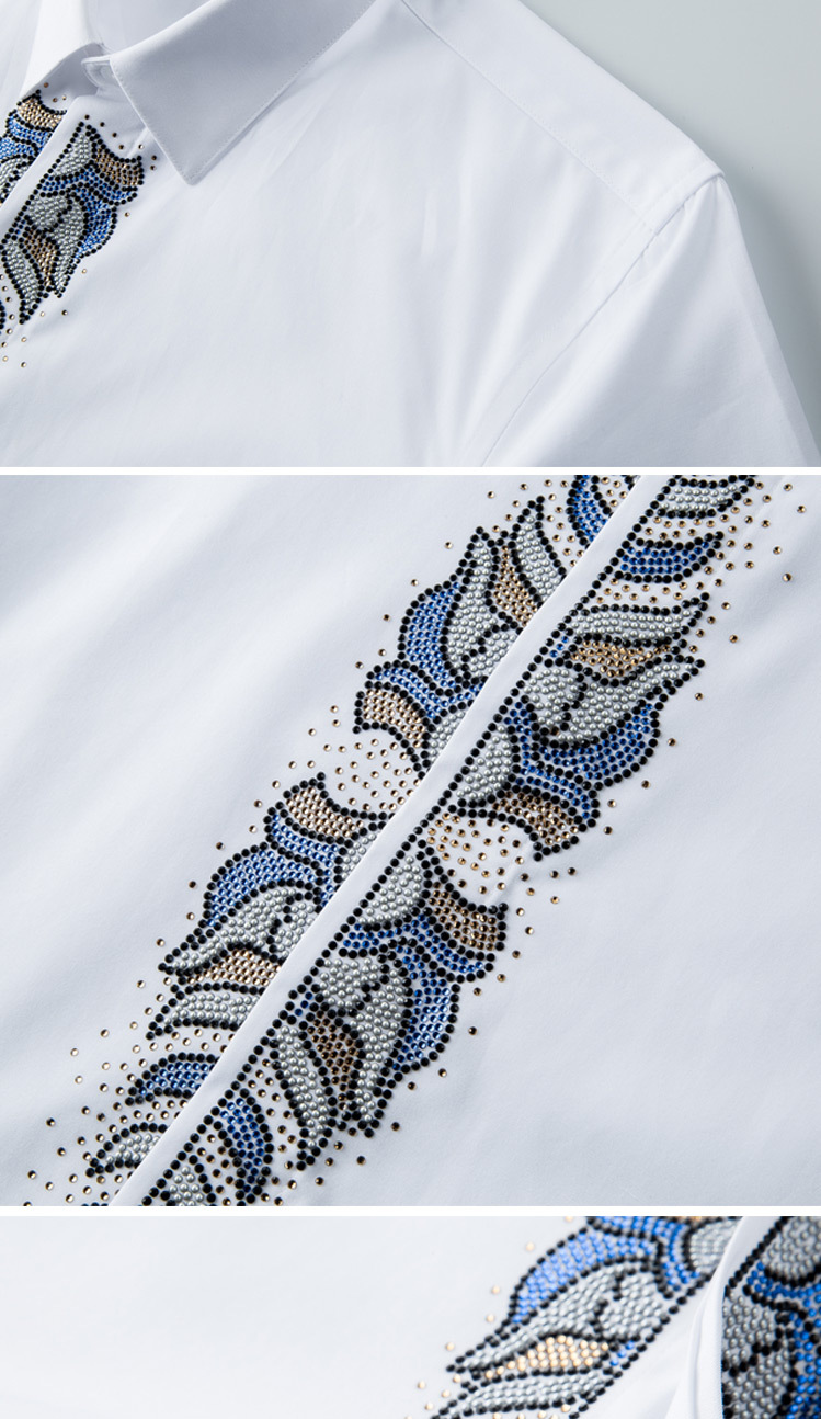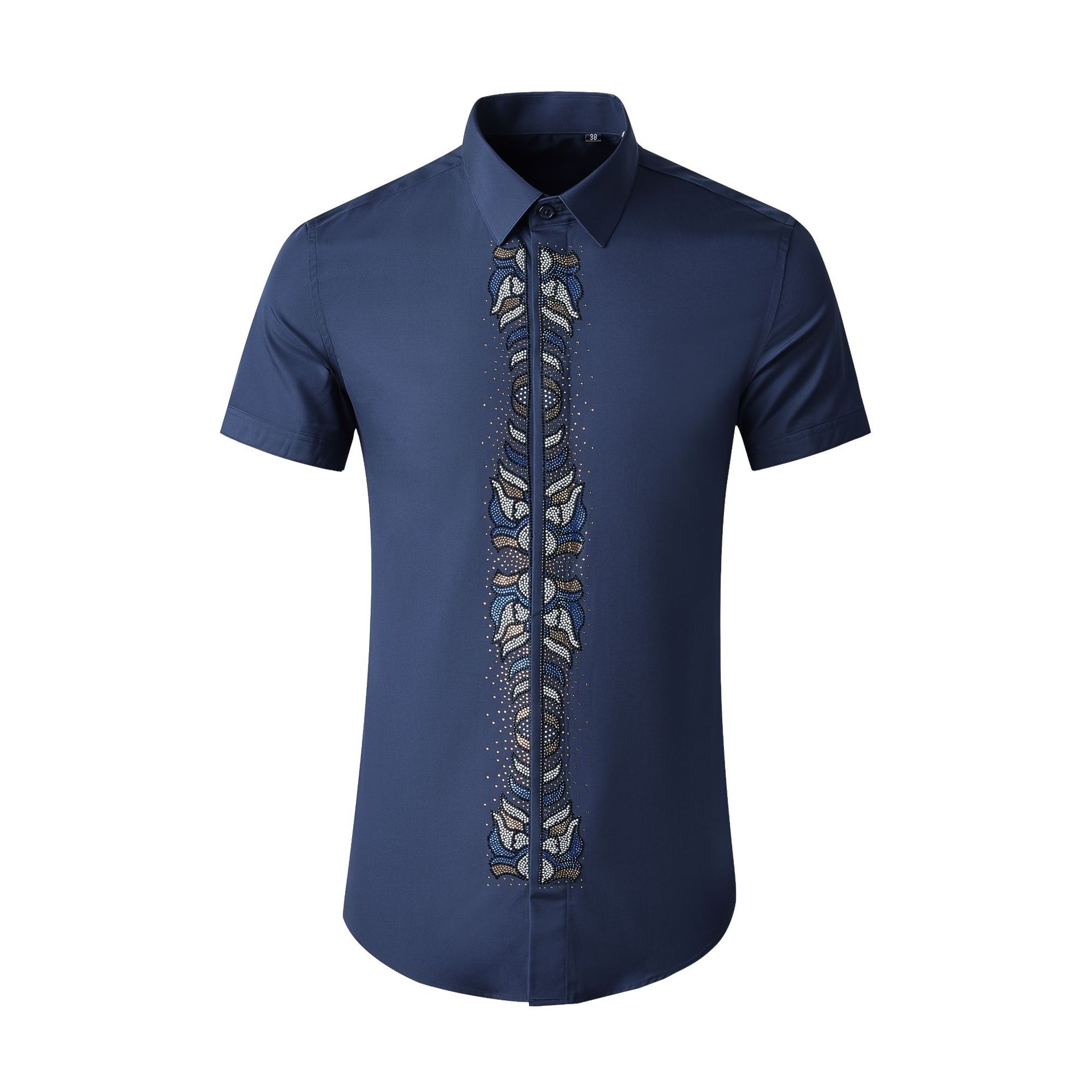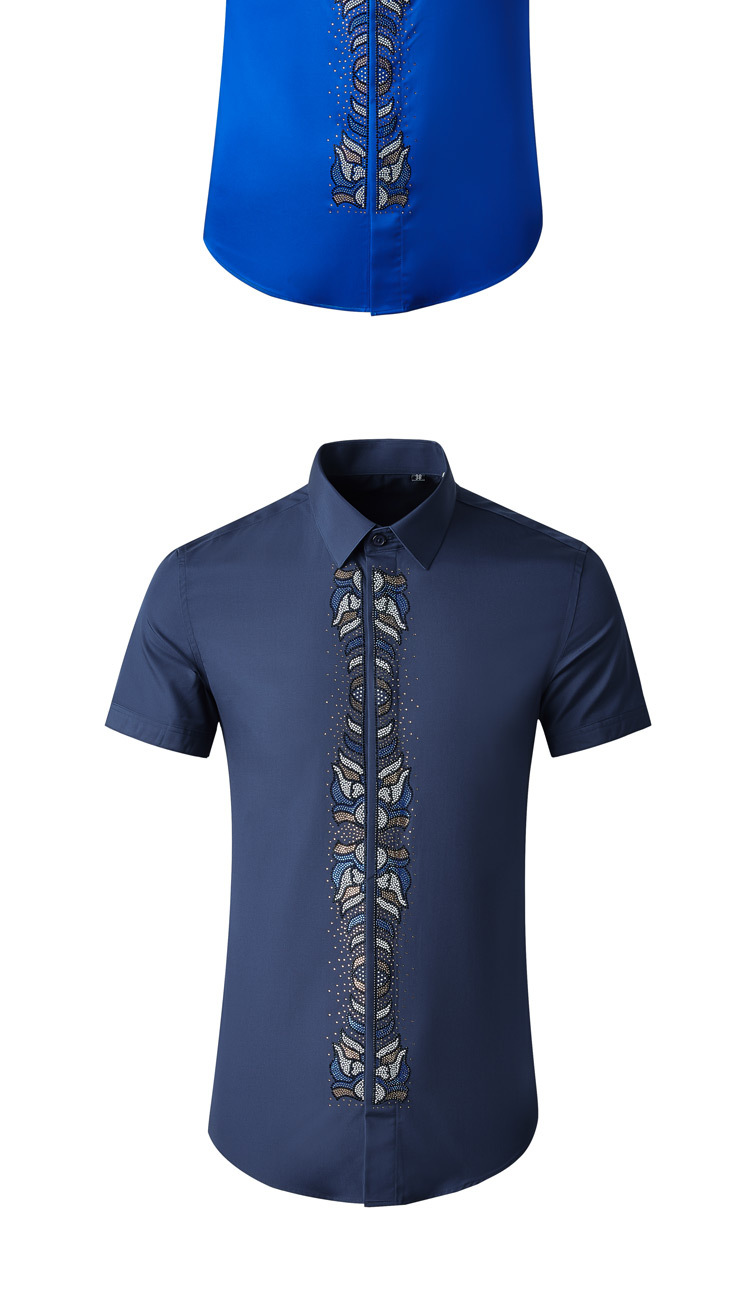 Áo sơ mi ngắn tay này có điểm nhấn đặc biệt ở đường diềm cổ và tay áo, được trang trí bằng các hạt đính lấp lánh tạo nên nét cá tính. Kiểu dáng ôm vừa vặn giúp tôn lên đường nét cơ thể. Chất vải mềm mại, thoáng mát, phù hợp cho những dịp đi chơi, gặp gỡ hằng ngày. Bạn có thể mặc kết hợp với quần jeans hoặc quần âu để tạo nên phong cách trẻ trung, năng động. | Tên sản phẩm: Áo Sơ Mi Nam Dáng Ôm Ngắn Tay - Thời Trang Nam | Mã sản phẩm: B7567 - Giá: 2.000.000đ | Mã nhà sản xuất: SHDAP-G05Hình ảnh sản phẩm
