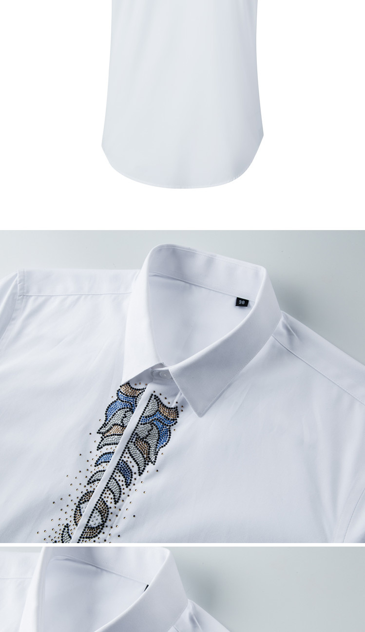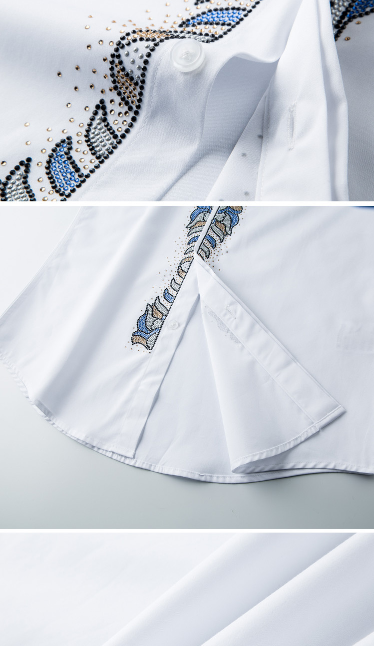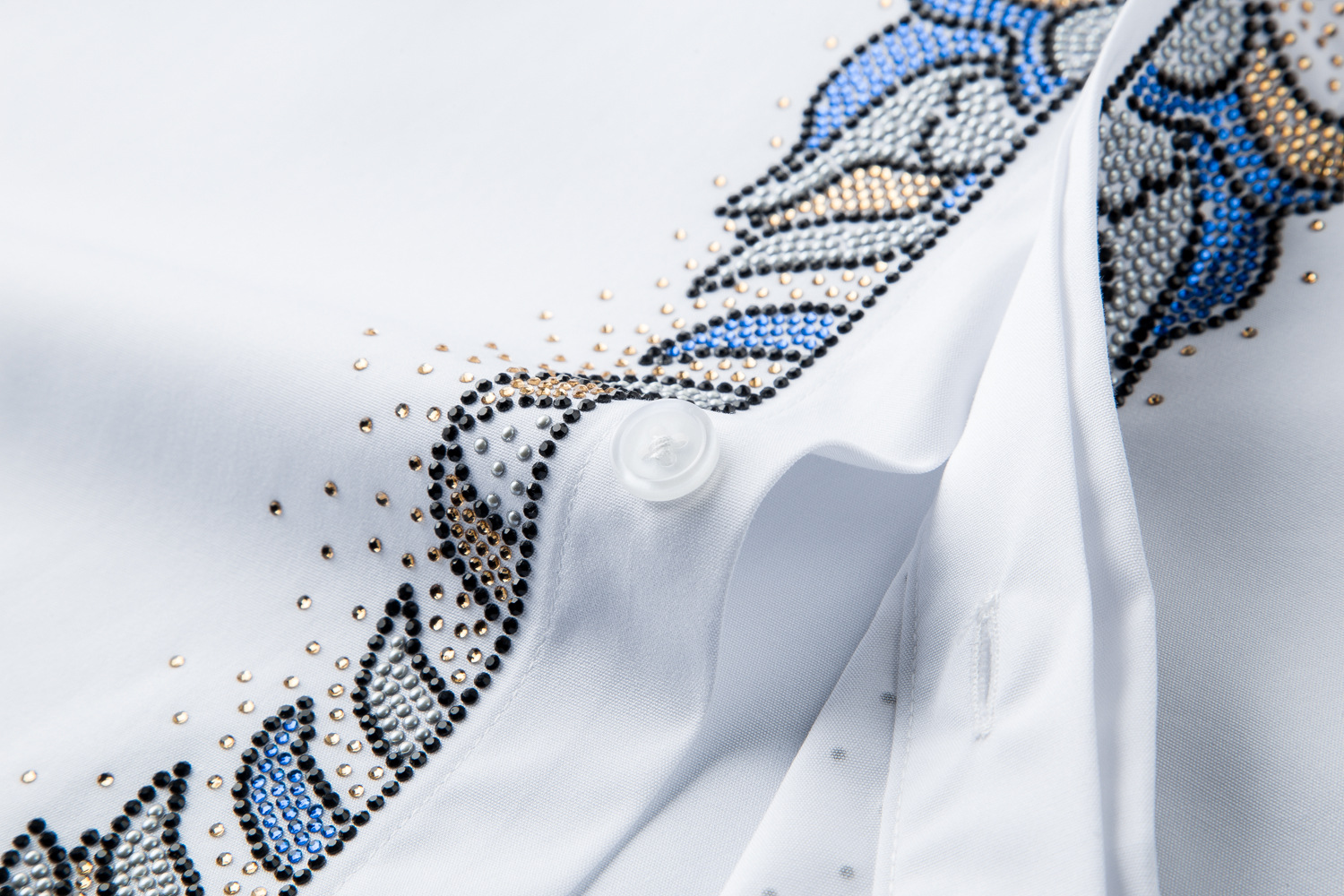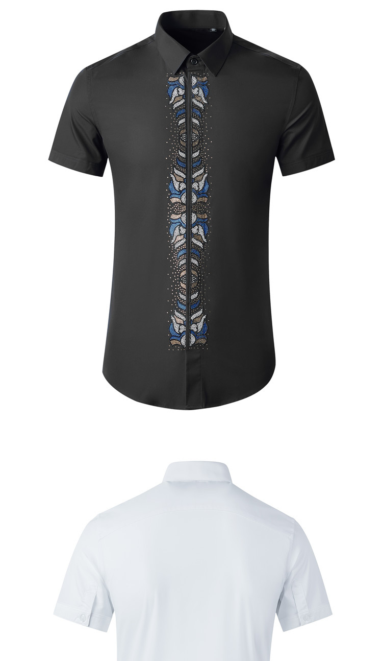 Áo sơ mi ngắn tay này có điểm nhấn đặc biệt ở đường diềm cổ và tay áo, được trang trí bằng các hạt đính lấp lánh tạo nên nét cá tính. Kiểu dáng ôm vừa vặn giúp tôn lên đường nét cơ thể. Chất vải mềm mại, thoáng mát, phù hợp cho những dịp đi chơi, gặp gỡ hằng ngày. Bạn có thể mặc kết hợp với quần jeans hoặc quần âu để tạo nên phong cách trẻ trung, năng động. | Tên sản phẩm: Áo Sơ Mi Nam Dáng Ôm Ngắn Tay - Thời Trang Nam | Mã sản phẩm: B7567 - Giá: 2.000.000đ | Mã nhà sản xuất: SHDAP-G05Hình ảnh sản phẩm