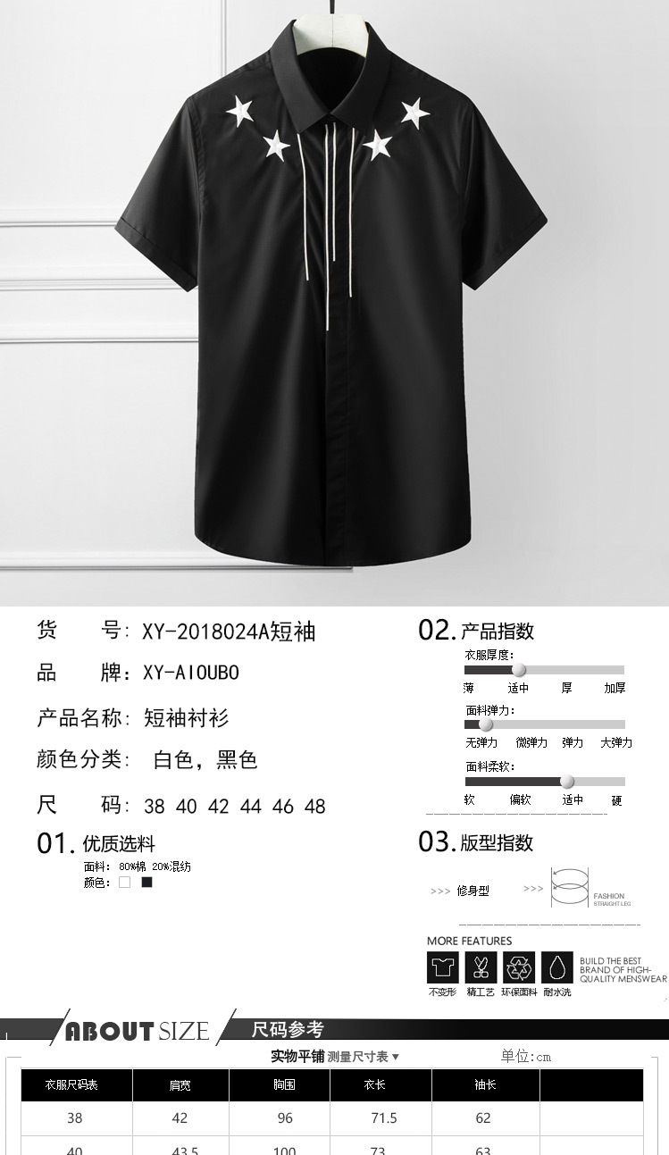 Áo sơ mi ngắn tay dành cho nam, kiểu dáng ôn nhẹ tôn dáng. Sản phẩm nổi bật với họa tiết thêu hình ngôi sao năm cánh tinh xảo, tạo điểm nhấn độc đáo. Chất vải mềm mại, thoáng mát, thích hợp mặc trong những ngày thời tiết ấm áp. Có thể phối hợp cùng quần tây hoặc quần jeans để tạo vẻ ngoài lịch sự, năng động. Dễ dàng giặt sạch và bảo quản như các loại áo thông thường. | Tên sản phẩm: Áo Sơ Mi Nam Ngắn Tay Thêu Họa Tiết Hoa Hàng Mùa Hè - Thời Trang Nam | Mã sản phẩm: B7589 - Giá: 2.100.000đ | Mã nhà sản xuất: SHDAP-G05Hình ảnh sản phẩm