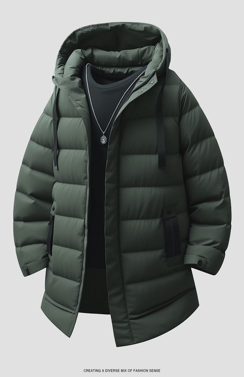 Áo khoác mùa đông dành cho nam, kiểu dáng rộng rãi thoải mái với mũ trùm đầu tiện lợi. Sản phẩm được làm từ chất liệu bông và lông vũ tổng hợp cách nhiệt tốt, giữ ấm hiệu quả trong thời tiết lạnh giá. Áo có thiết kế dài vừa phải, phù hợp với nhiều dáng người và có thể đặt làm theo kích thước cá nhân. Sử dụng như một lớp áo ngoài cùng để giữ ấm khi đi ra ngoài hoặc tham gia các hoạt động ngoài trời. | Tên sản phẩm: Áo Khoác Dày Nam Chất Liệu Vải Bông Big Size Ngoại Cỡ Mũ Liền Dày Ấm Hàng Mùa Xuân Thu Đông - Thời Trang Nam | Mã sản phẩm: B7590 - Giá: 690.000đ | Mã nhà sản xuất: SHDLO-G02Hình ảnh sản phẩm