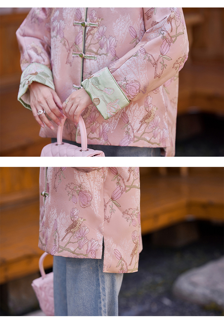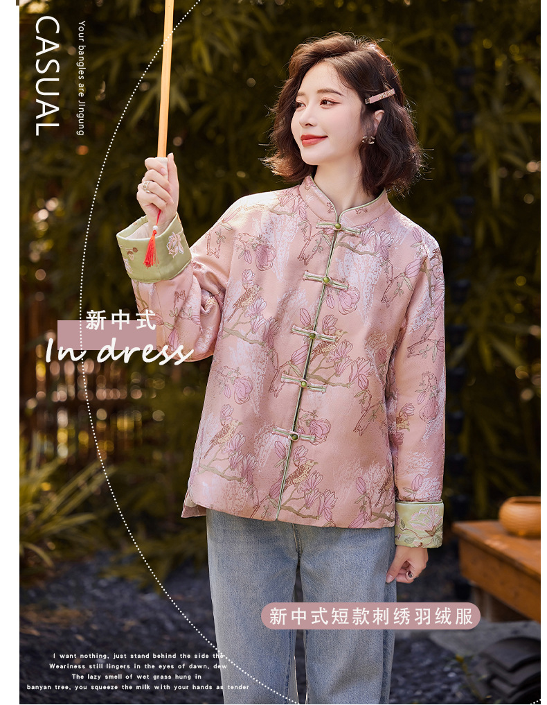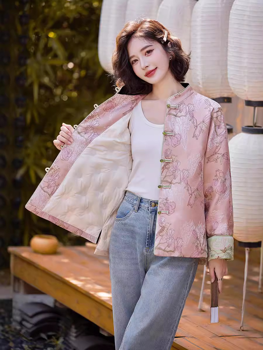 Áo khoác dành cho nữ, kiểu dáng ngắn gọn, phù hợp cho mùa thu đông. Chất liệu lông vũ nhẹ và ấm, giữ nhiệt tốt. Điểm nhấn là các họa tiết thêu tinh xảo, mang phong cách cổ điển nhẹ nhàng. Dễ dàng phối cùng nhiều loại trang phục như quần dài, váy liền. Sản phẩm thiết kế vừa vặn, mang lại sự thoải mái khi mặc hàng ngày hoặc dự các sự kiện. | Tên sản phẩm: Áo Khoác Nữ Thêu Họa Tiết Hoa Hàng Mùa Xuân Thu Đông Phục Cổ Cổ Điển - Thời Trang Nữ | Mã sản phẩm: B7633 - Giá: 3.010.000đ | Mã nhà sản xuất: HADG-G06Hình ảnh sản phẩm