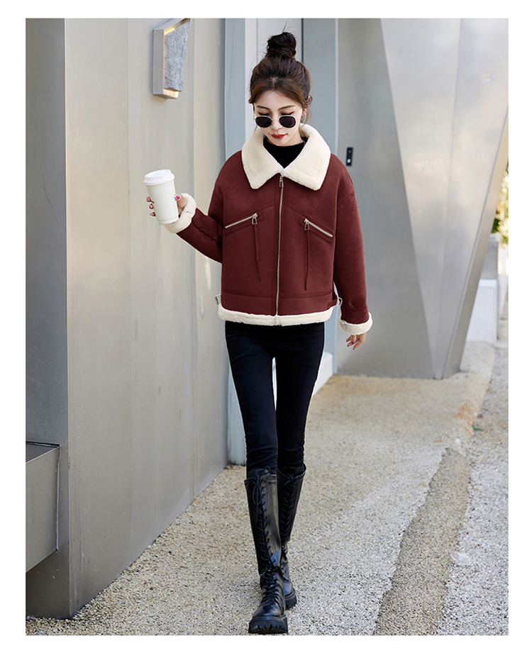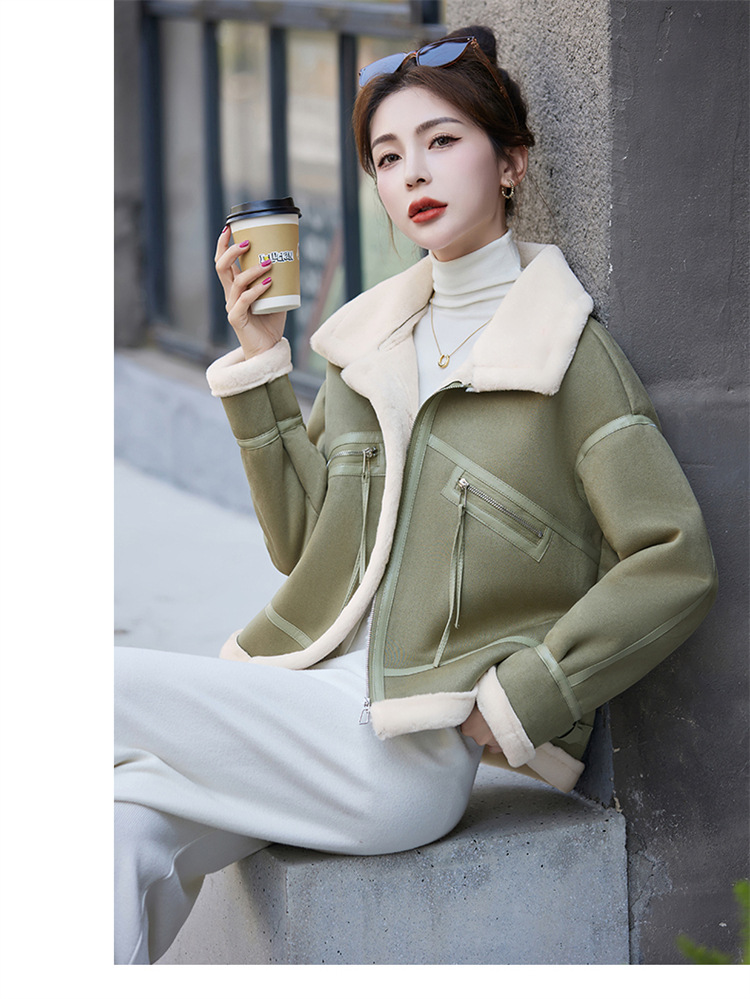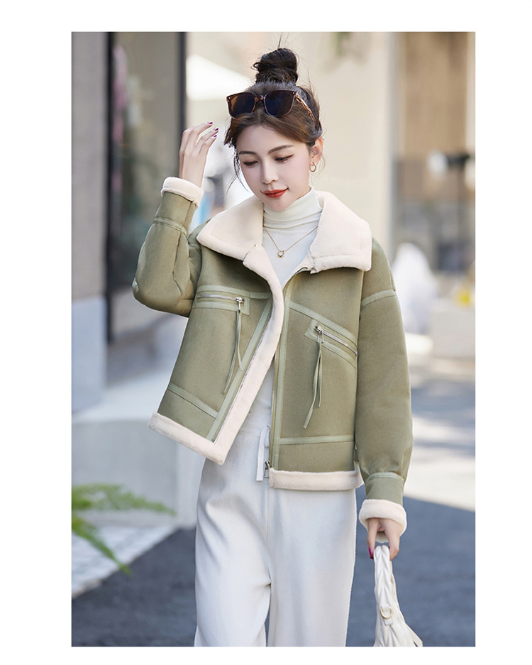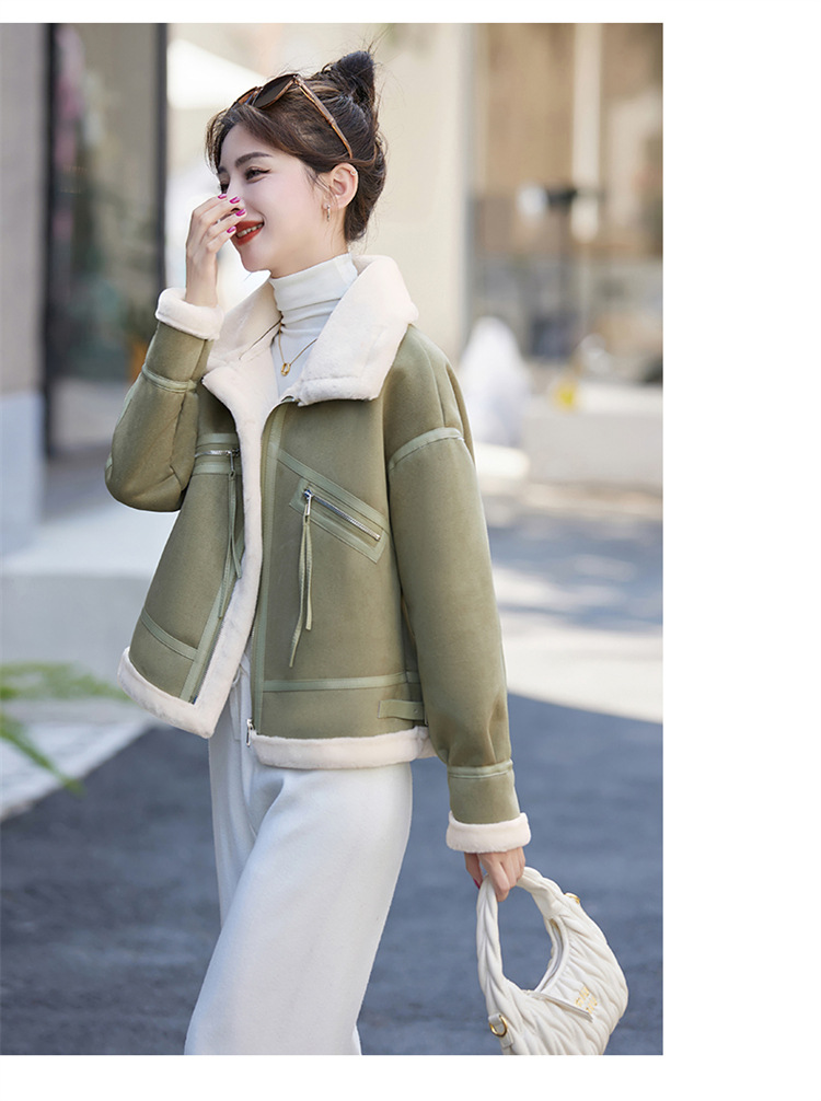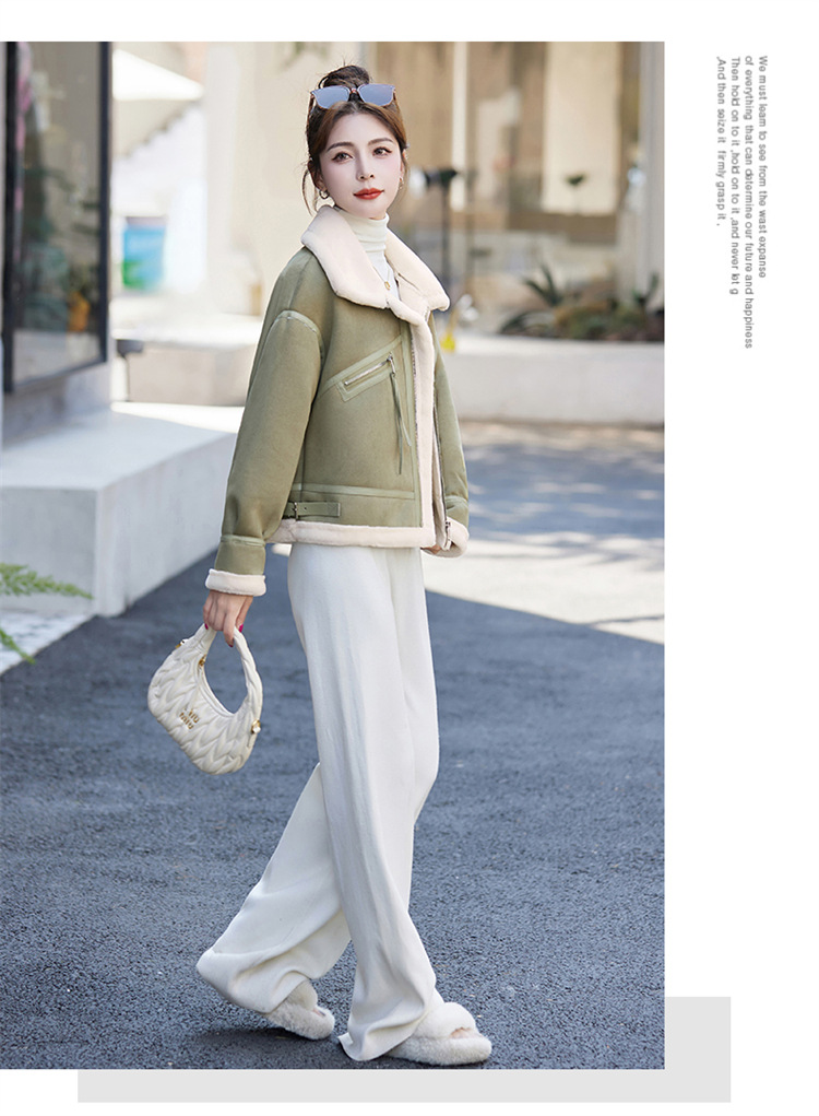 Áo khoác kiểu dáng trẻ trung, phù hợp cho những người có chiều cao khiêm tốn. Chất liệu bên ngoài mềm mại như da n, bên trong là lớp lông cừu ấm áp, giữ nhiệt tốt. Thiết kế dáng áo khoác xe máy phóng khoáng, có hàng cúc kim loại, tạo điểm nhấn khỏe khoắn. Mặc kèm với quần jeans và áo thun để tạo phong cách cá tính. Sản phẩm giữ ấm hiệu quả cho những ngày thời tiết se lạnh. | Tên sản phẩm: Áo Khoác Nữ Dày Ấm - Thời Trang Nữ | Mã sản phẩm: B7655 - Giá: 2.290.000đ | Mã nhà sản xuất: HADG-G05Hình ảnh sản phẩm