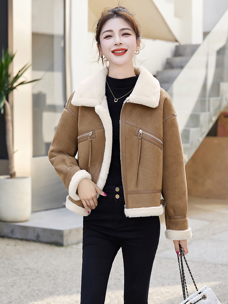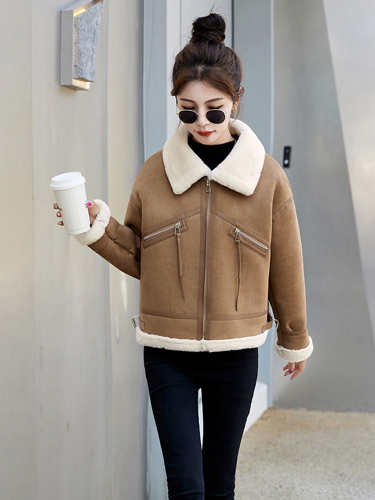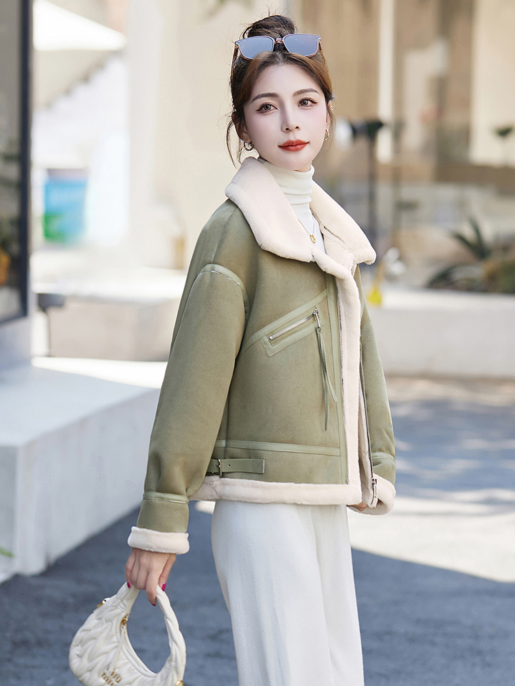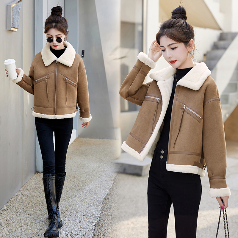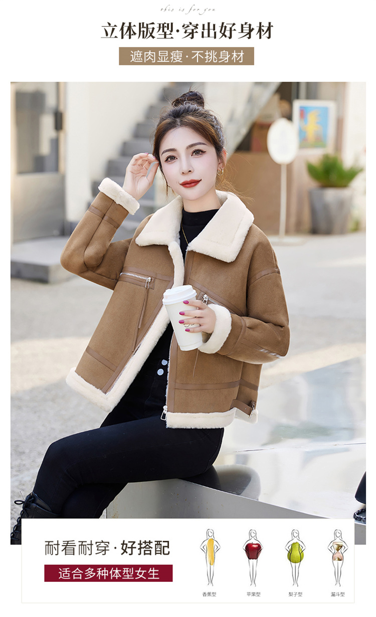 Áo khoác kiểu dáng trẻ trung, phù hợp cho những người có chiều cao khiêm tốn. Chất liệu bên ngoài mềm mại như da n, bên trong là lớp lông cừu ấm áp, giữ nhiệt tốt. Thiết kế dáng áo khoác xe máy phóng khoáng, có hàng cúc kim loại, tạo điểm nhấn khỏe khoắn. Mặc kèm với quần jeans và áo thun để tạo phong cách cá tính. Sản phẩm giữ ấm hiệu quả cho những ngày thời tiết se lạnh. | Tên sản phẩm: Áo Khoác Nữ Dày Ấm - Thời Trang Nữ | Mã sản phẩm: B7655 - Giá: 2.290.000đ | Mã nhà sản xuất: HADG-G05Hình ảnh sản phẩm