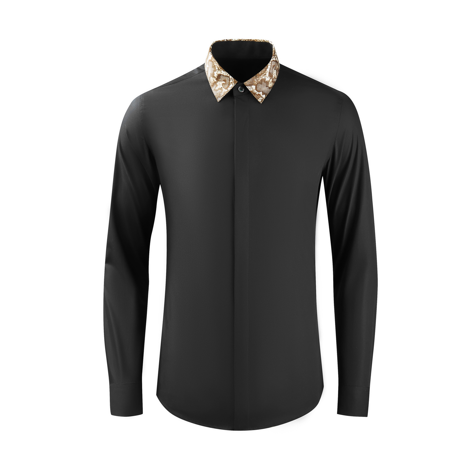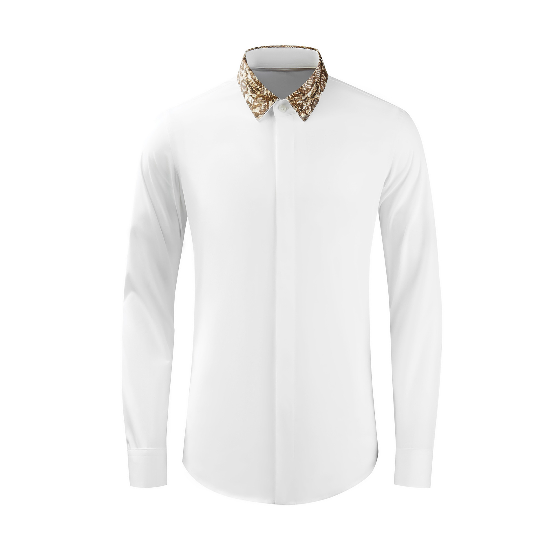 Áo sơ mi nam với họa tiết da rắn in nổi cùng các mảng ghép phá cách, tạo điểm nhấn khác biệt. Form áo ôn nhẹ vào cơ thể, giúp tôn dáng người mặc. Chất liệu vải mềm mại, thoáng mát, phù hợp dùng quanh năm. Có thể kết hợp cùng quần âu hoặc quần jeans để tạo nên phong cách cá tính trong nhiều dịp. | Tên sản phẩm: Áo Sơ Mi Nam Dáng Ôm Họa Tiết Hoa - Thời Trang Nam | Mã sản phẩm: B7661 - Giá: 2.000.000đ | Mã nhà sản xuất: SHDAP-G05Hình ảnh sản phẩm