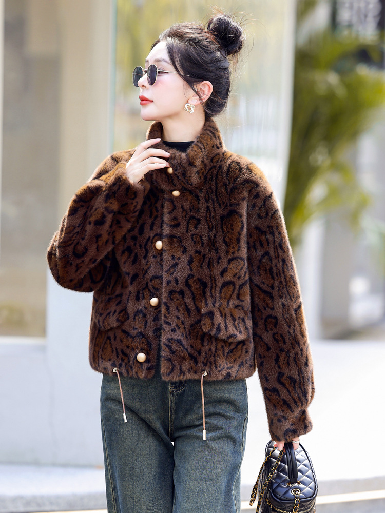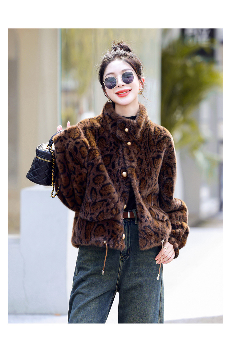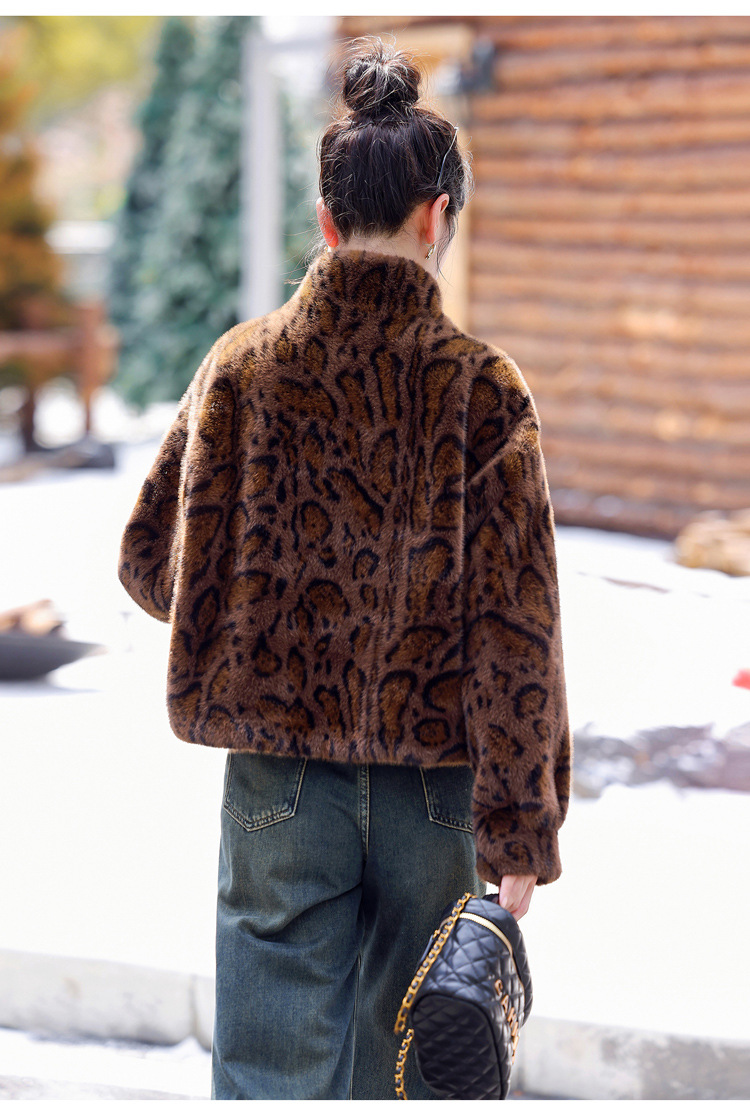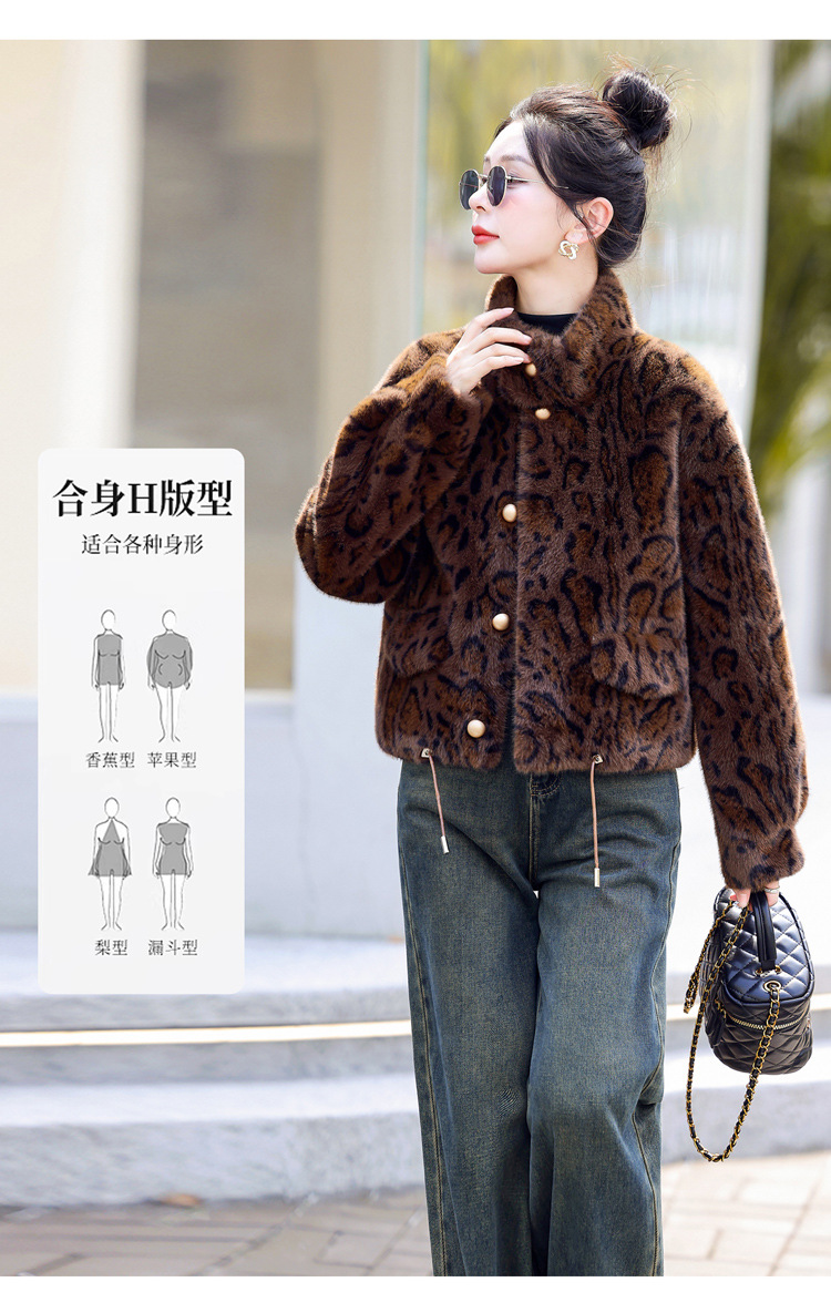 Áo khoác nữ ngắn có họa tiết da beo, thiết kế cổ đứng ôm ấm áp. Sản phẩm được làm từ chất liệu mô phỏng lông chồn hươu kết hợp da lông giả ấm áp, phù hợp thời tiết lạnh. Kiểu dáng trẻ trung, thời trang, giữ nhiệt tốt. Phối cùng quần jeans hoặc váy liền đều hợp. Mặc trực tiếp, dễ dàng phối đồ và di chuyển mà vẫn đảm bảo giữ ấm cho cơ thể. | Tên sản phẩm: Áo Khoác Nữ Hàng Mùa Xuân Thu Đông - Thời Trang Nữ | Mã sản phẩm: B7663 - Giá: 2.320.000đ | Mã nhà sản xuất: HADG-G05Hình ảnh sản phẩm