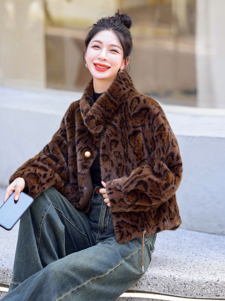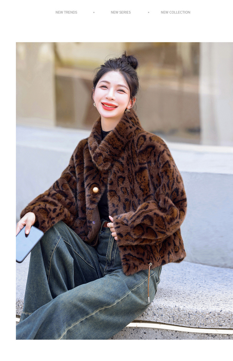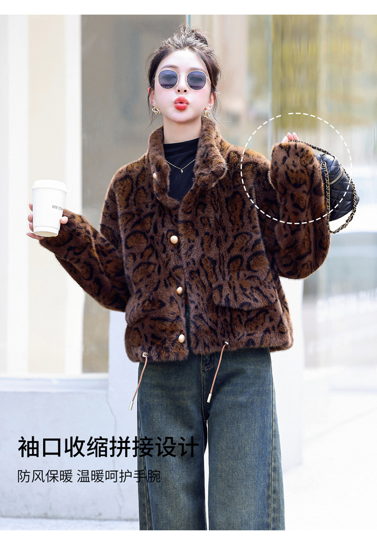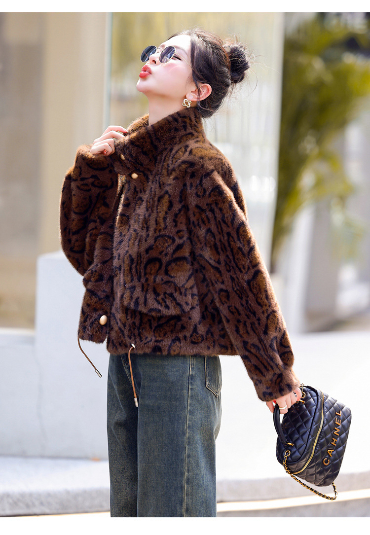 Áo khoác nữ ngắn có họa tiết da beo, thiết kế cổ đứng ôm ấm áp. Sản phẩm được làm từ chất liệu mô phỏng lông chồn hươu kết hợp da lông giả ấm áp, phù hợp thời tiết lạnh. Kiểu dáng trẻ trung, thời trang, giữ nhiệt tốt. Phối cùng quần jeans hoặc váy liền đều hợp. Mặc trực tiếp, dễ dàng phối đồ và di chuyển mà vẫn đảm bảo giữ ấm cho cơ thể. | Tên sản phẩm: Áo Khoác Nữ Hàng Mùa Xuân Thu Đông - Thời Trang Nữ | Mã sản phẩm: B7663 - Giá: 2.320.000đ | Mã nhà sản xuất: HADG-G05Hình ảnh sản phẩm