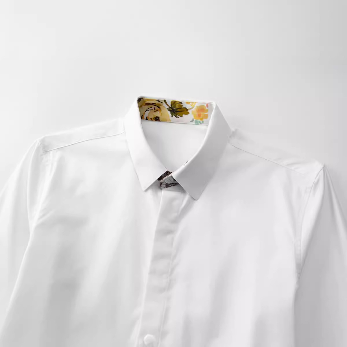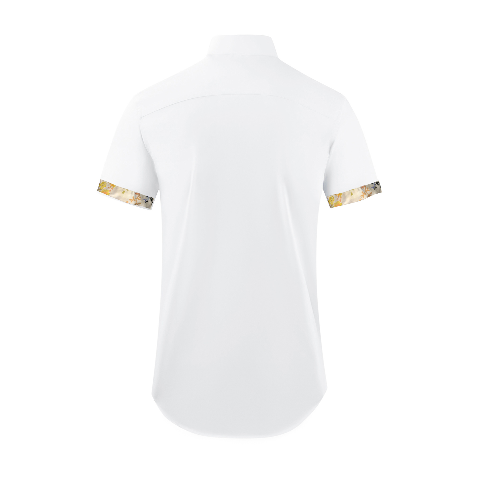 Áo sơ mi ngắn tay dành cho nam với điểm nhấn là họa tiết hoa lớn nổi bật ở phần cổ và tay. Chất liệu vải mềm mại, thoáng mát, phù hợp cho những ngày hè oi bức. Kiểu dáng phối màu tương phản trẻ trung, mang phong cách châu Âu hiện đại. Sản phẩm dễ dàng phối cùng quần jeans hoặc quần âu cơ bản. Có thể mặc trực tiếp hoặc kết hợp như áo khoác ngoài để tạo điểm nhấn cho trang phục. | Tên sản phẩm: Áo Sơ Mi Nam Ngắn Tay Họa Tiết Hoa Phong Cách Âu Mỹ - Thời Trang Nam | Mã sản phẩm: B7671 - Giá: 2.190.000đ | Mã nhà sản xuất: SHDAP-G05Hình ảnh sản phẩm