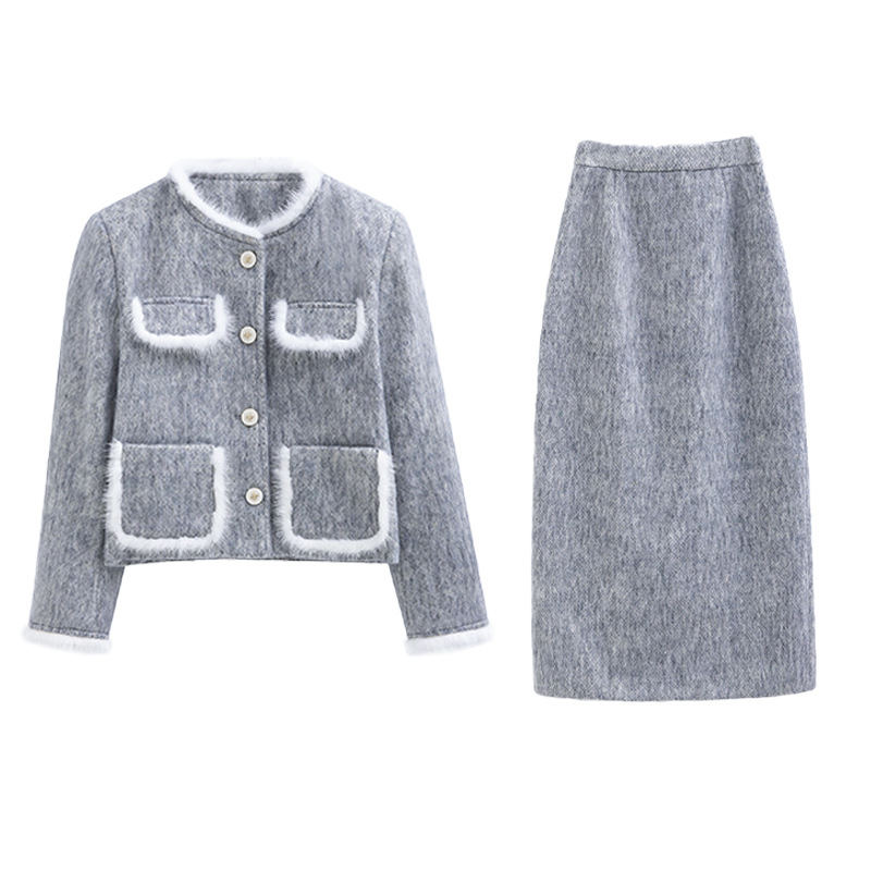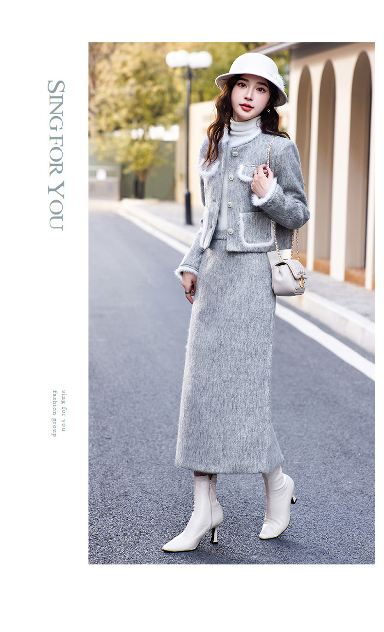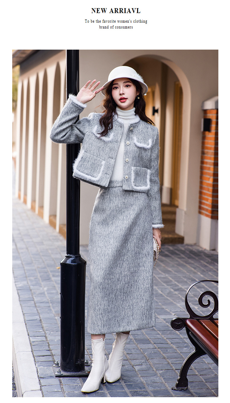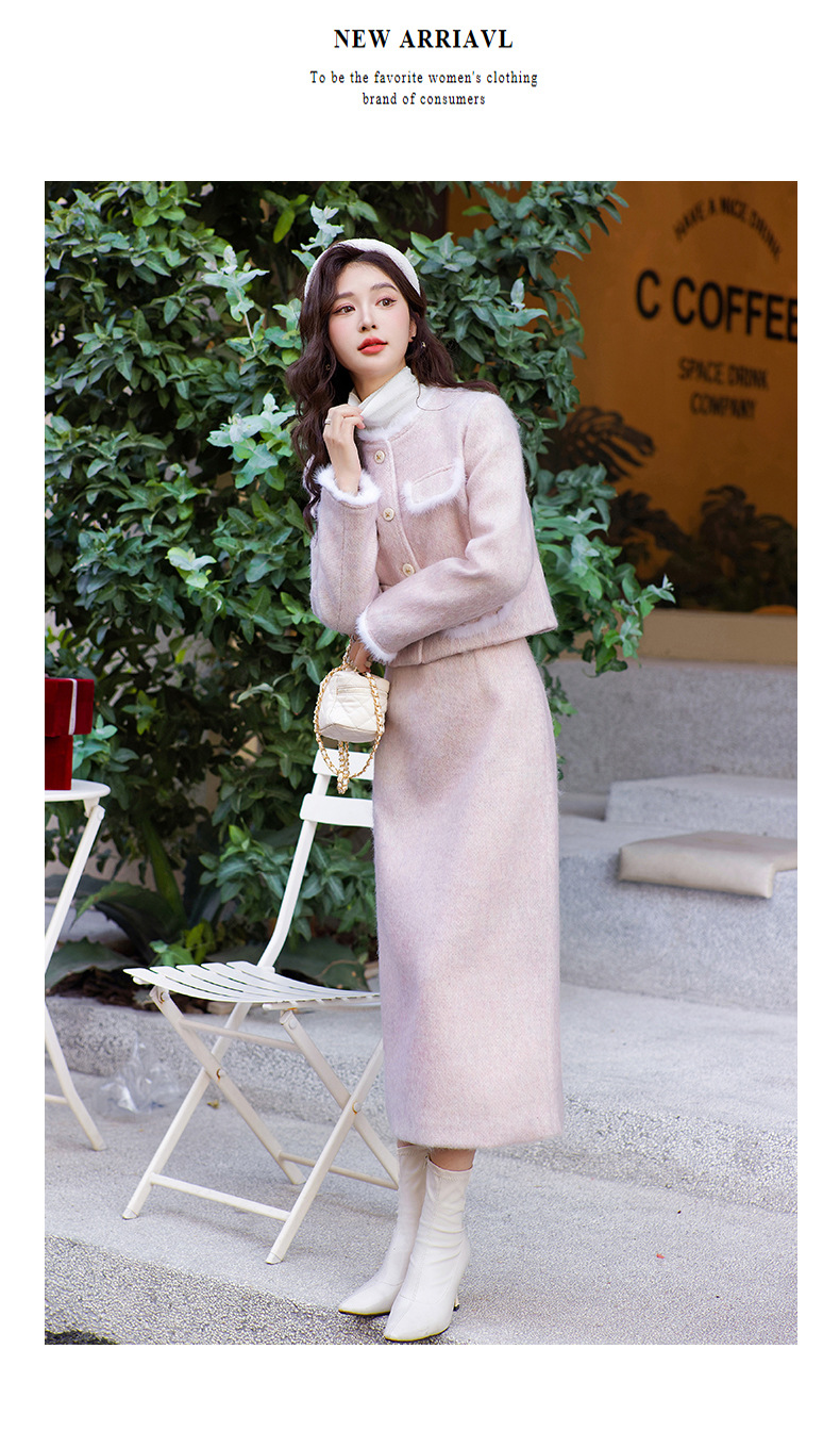 Bộ trang phục mới này gồm áo khoác dạng áo lót mỏng nhẹ và chân váy dài, phù hợp cho thời tiết lạnh. Chất liệu bên trong áo được làm từ lông vịt trắng, giữ ấm tốt. Điểm nhấn là phần viền được điểm xuyết bằng lớp lông mềm mại, tăng thêm nét duyên dáng. Kiểu dáng kết hợp giữa áo và váy tạo vẻ thanh lịch, dễ phối đồ. Có thể mặc đi làm, dạo phố hay trong các dịp gặp gỡ. | Tên sản phẩm: Đồ Bộ Nữ Hàng Mùa Xuân Thu Đông - Thời Trang Nữ | Mã sản phẩm: B7679 - Giá: 3.630.000đ | Mã nhà sản xuất: HADG-G06Hình ảnh sản phẩm