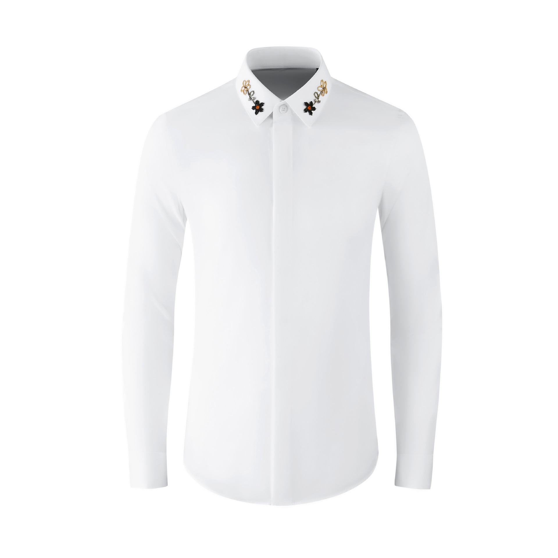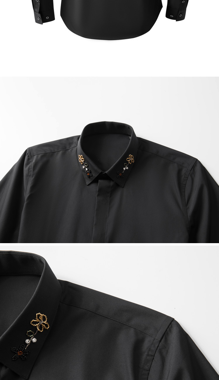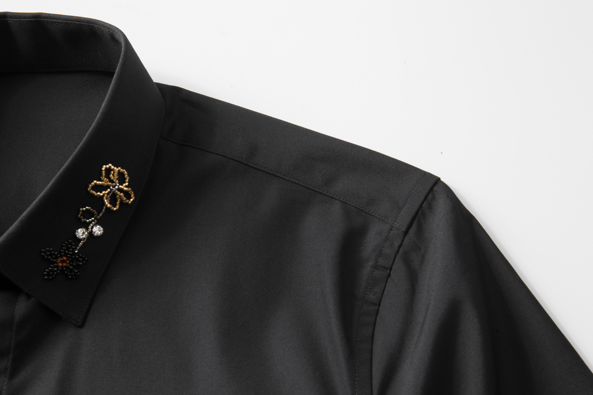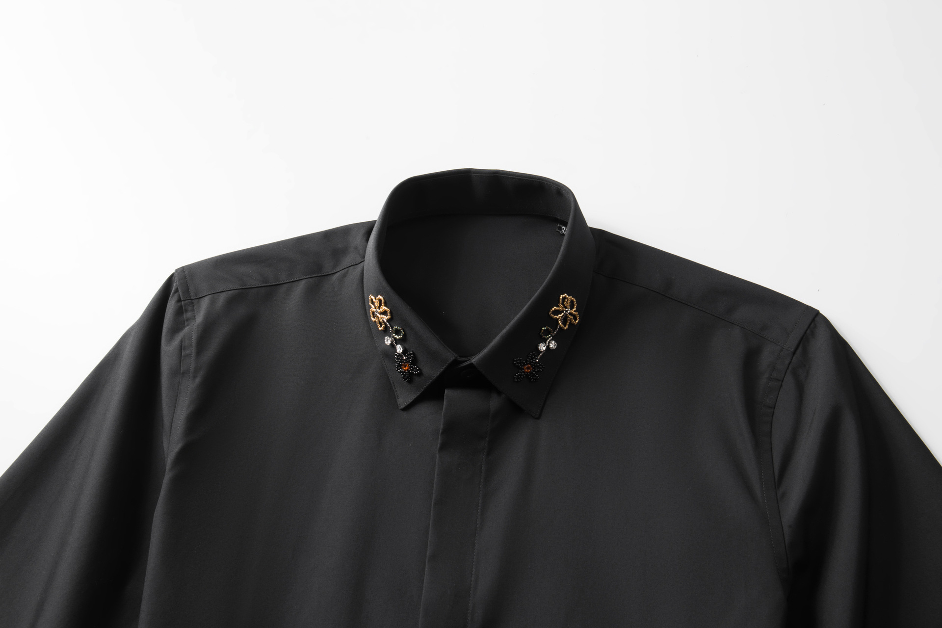 Áo sơ mi dài tay dành cho nam, kiểu dáng kết hợp giữa đi làm và hằng ngày. Điểm nhấn nổi bật ở phần cổ áo được trang trí tỉ mỉ bằng những bông hoa nhỏ và hạt cườm, tất cả đều được làm thủ công tinh xảo. Chất vải mềm mại, thoáng mát giúp người mặc cảm thấy dễ chịu. Sản phẩm phù hợp cho nhiều dịp như đi làm, gặp gỡ hay dự tiệc. Giặt tay hoặc giặt máy nhẹ nhàng để giữ form áo và các chi tiết trang trí được bền đẹp. | Tên sản phẩm: Áo Sơ Mi Nam Dài Tay Họa Tiết Hoa - Thời Trang Nam | Mã sản phẩm: B7724 - Giá: 2.670.000đ | Mã nhà sản xuất: SHDAP-G06Hình ảnh sản phẩm
