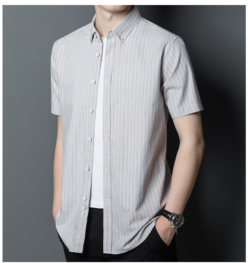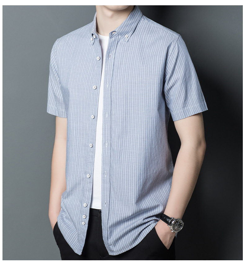 Áo sơ mi ngắn tay dành cho nam, kiểu dáng ôn nhẹ nhàng tôn dáng. Chất vải mềm mại, thoáng mát, thấm hút mồ hôi tốt, phù hợp mặc trong mùa hè. Cổ bẻ lịch sự kết hợp họa tiết sọc trang nhã, dễ dàng phối cùng quần tây hoặc quần âu. Sản phẩm phù hợp cho những dịp làm việc hay sinh hoạt hàng ngày. Giặt máy nhẹ nhàng và phơi nơi râm mát để giữ form áo. | Tên sản phẩm: Áo Sơ Mi Nam Chất Liệu Vải Bông Dáng Ôm Ngắn Tay Kín Cổ Hàng Mùa Hè Trung Niên - Thời Trang Nam | Mã sản phẩm: B7742 - Giá: 720.000đ | Mã nhà sản xuất: TOREGS-G02Hình ảnh sản phẩm