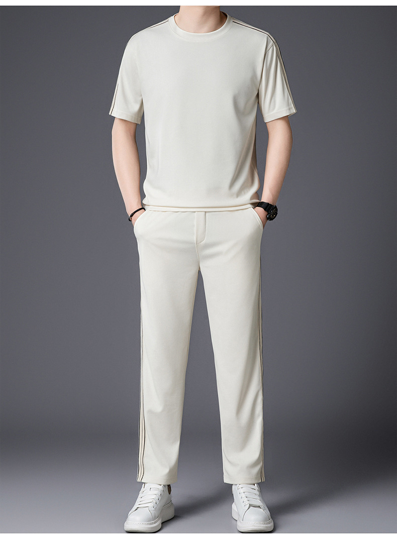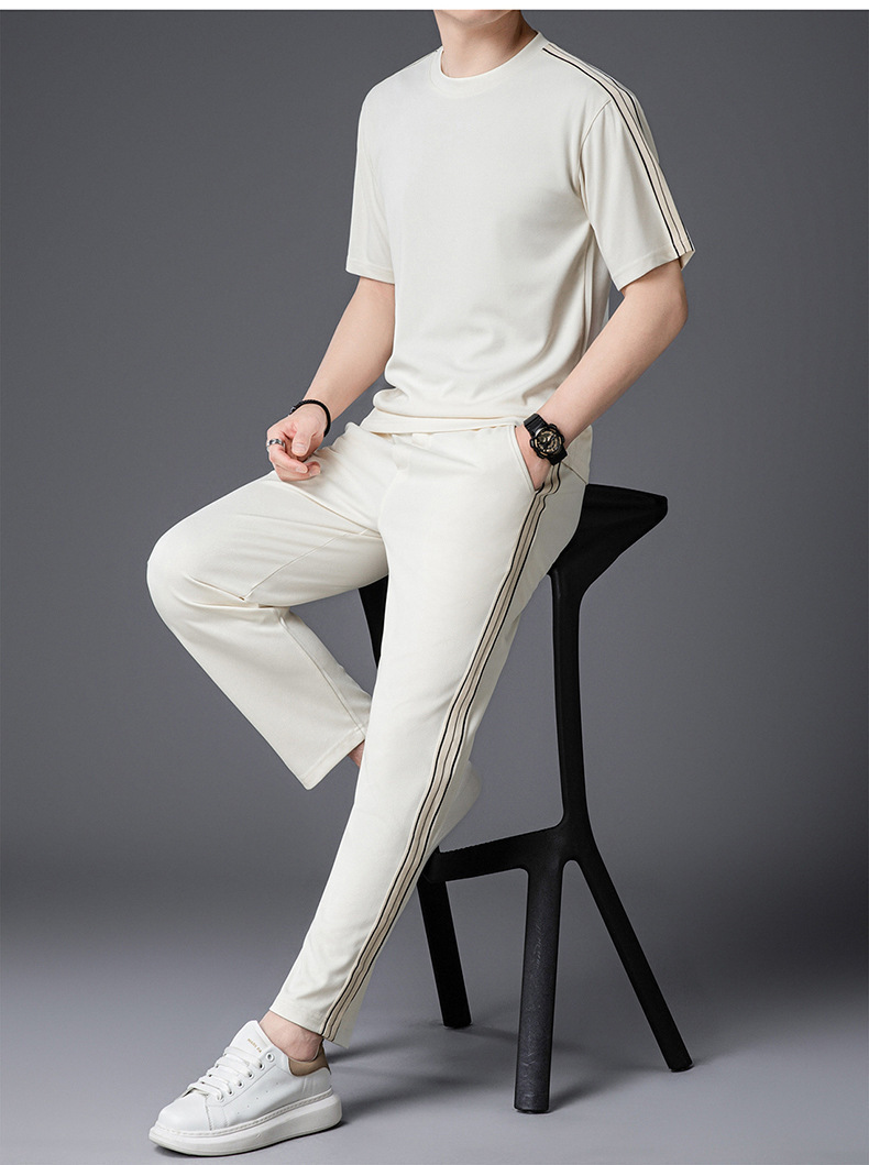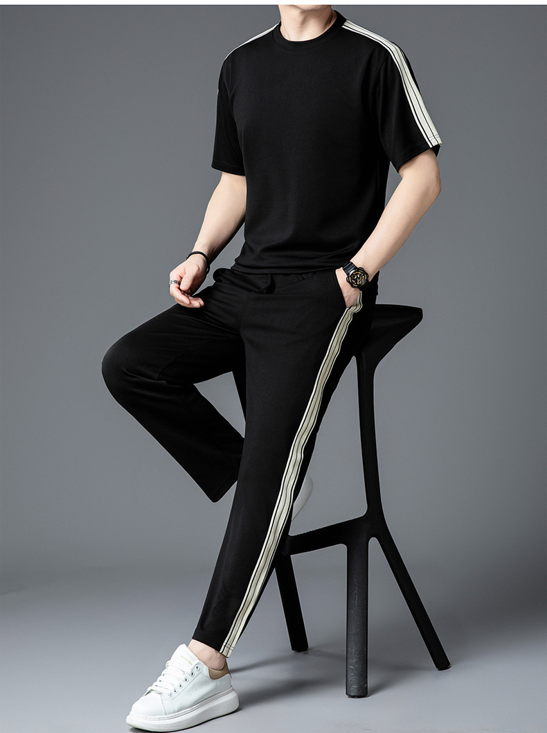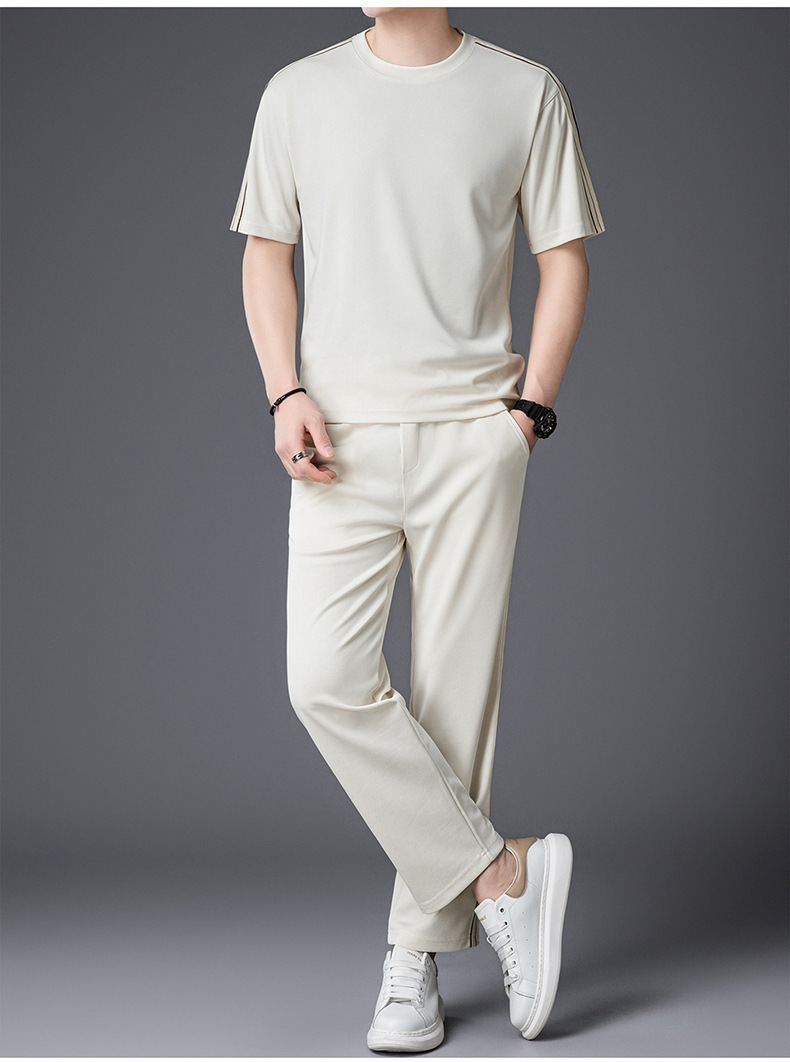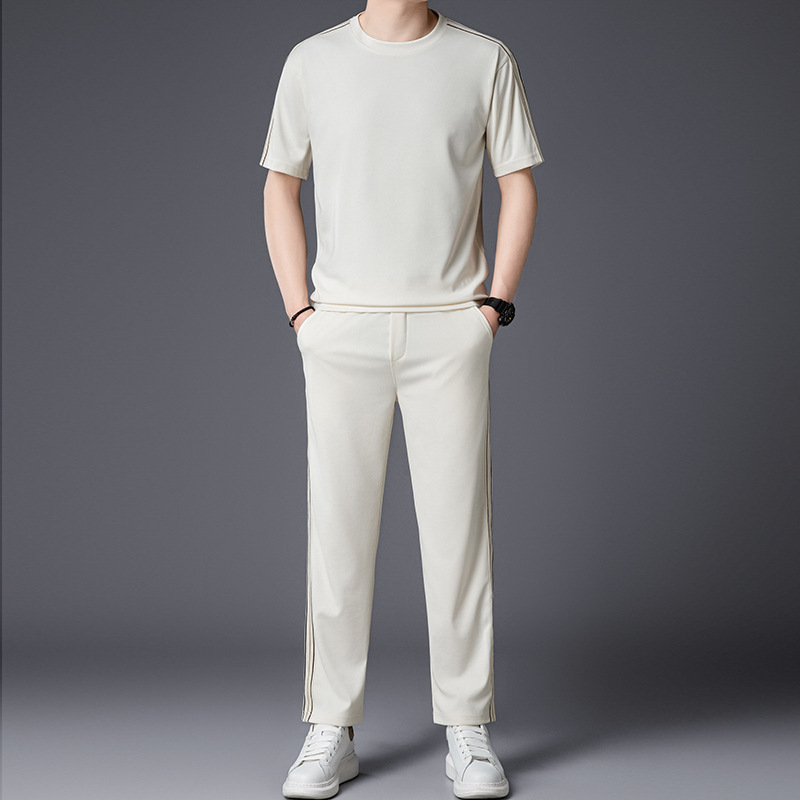 Bộ trang phục nam này gồm áo thun cổ tròn và quần, thiết kế đơn giản, thoải mái cho những ngày hè năng động. Chất vải mềm mại, thấm hút mồ hôi tốt, phù hợp cho các hoạt động thường ngày hay lúc tập luyện nhẹ nhàng. Bạn có thể mặc đi chơi, đi học hoặc vận động thể thao. Sản phẩm dễ dàng phối cùng giày thể thao và phụ kiện, mang đến vẻ ngoài trẻ trung, năng động. | Tên sản phẩm: Đồ Bộ Nam Ngắn Tay Cả Bộ 2 Món Hàng Mùa Hè - Thời Trang Nam | Mã sản phẩm: B7777 - Giá: 1.240.000đ | Mã nhà sản xuất: TOREGS-G04Hình ảnh sản phẩm