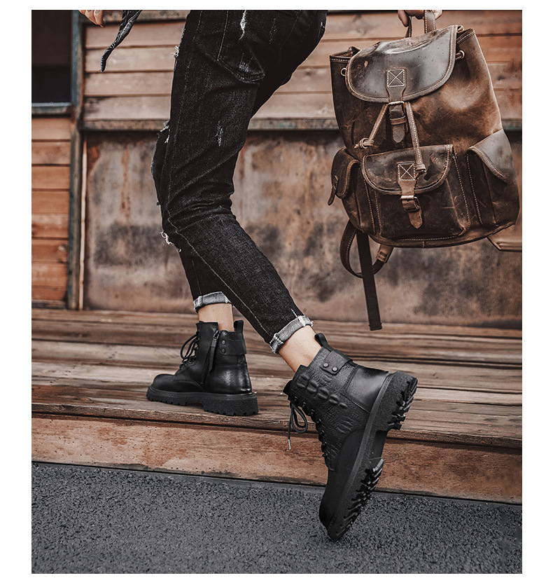 Đôi bốt nam này có kiểu dáng bền bỉ, phù hợp cho những ngày đông. Sản phẩm được làm từ chất liệu da thật tự nhiên, mang lại cảm giác thoải mái và ôm chân. Dáng bốt cổ trung mang phong cách cổ điển, dễ dàng kết hợp với nhiều loại trang phục như quần jeans hay quần kaki. Bạn có thể sử dụng hằng ngày, buộc dây cẩn thận để giữ chặt chân và di chuyển dễ dàng. | Tên sản phẩm: Giày Boot Cổ Thấp Nam Chất Liệu Da Bò Hàng Mùa Xuân Thu Đông - Giày Dép Nam | Mã sản phẩm: B7782 - Giá: 1.350.000đ | Mã nhà sản xuất: TADRA-G04Hình ảnh sản phẩm
