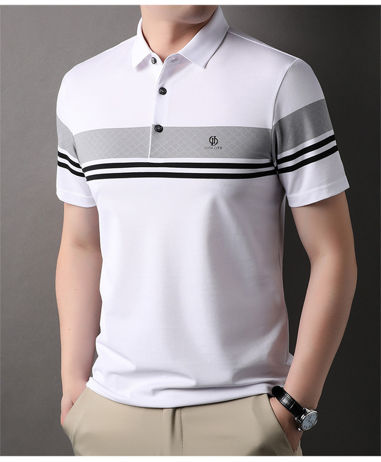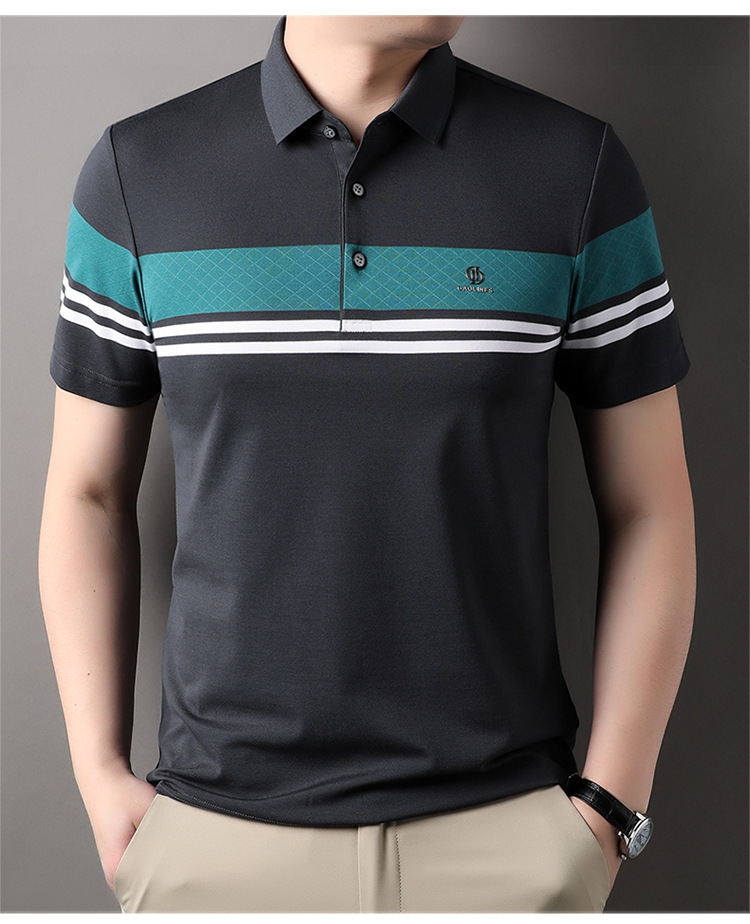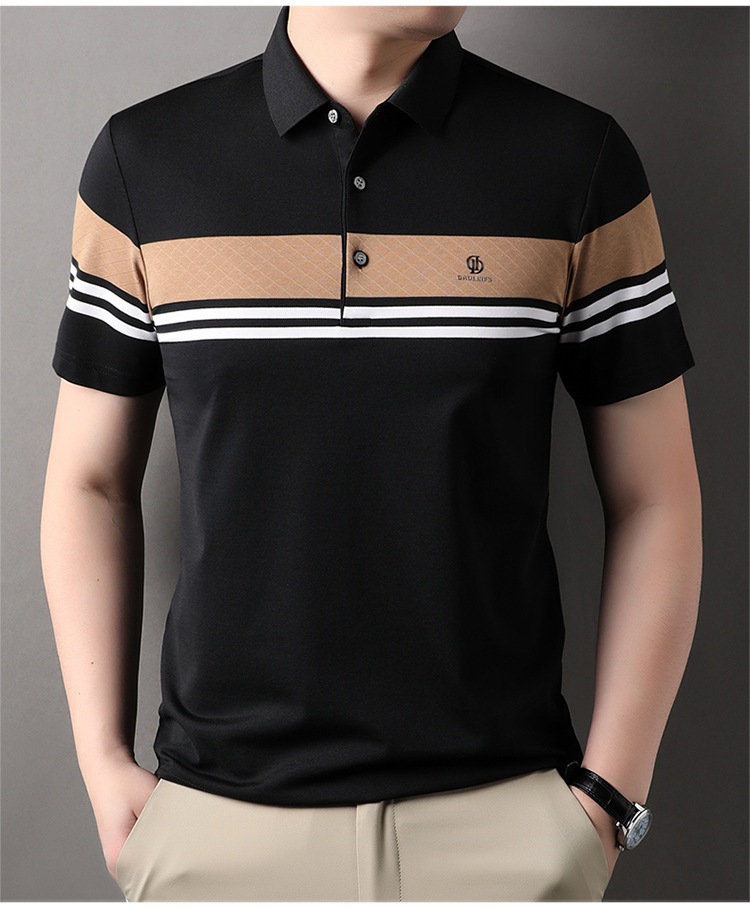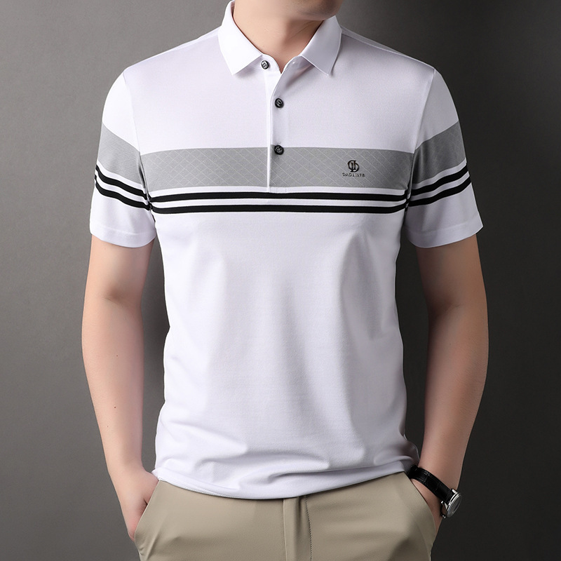 Áo thun ngắn tay dành cho nam, thiết kế cổ bẻ mang đến vẻ ngoại hình lịch sự. Sản phẩm có họa tiết sọc, tạo điểm nhấn năng động và phù hợp cho dịp nghỉ hè. Chất vải mềm mại, thoáng mát, giúp người mặc cảm thấy dễ chịu trong những ngày nóng. Bạn có thể kết hợp áo cùng quần tây hoặc quần short để tạo nên những bộ trang phục hằng ngày một cách đơn giản. Phù hợp cho các hoạt động thư giãn, đi làm hoặc gặp gỡ bạn bè. | Tên sản phẩm: Áo Thun Nam Ngắn Tay Kín Cổ Hàng Mùa Hè Trung Niên - Thời Trang Nam | Mã sản phẩm: B7784 - Giá: 810.000đ | Mã nhà sản xuất: TOREGS-G03Hình ảnh sản phẩm