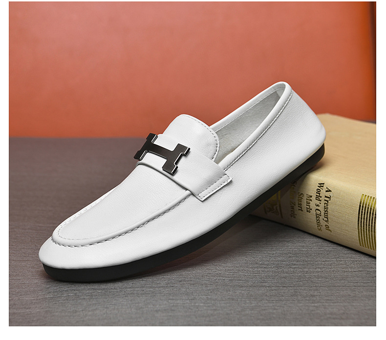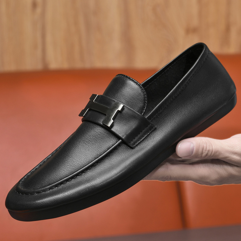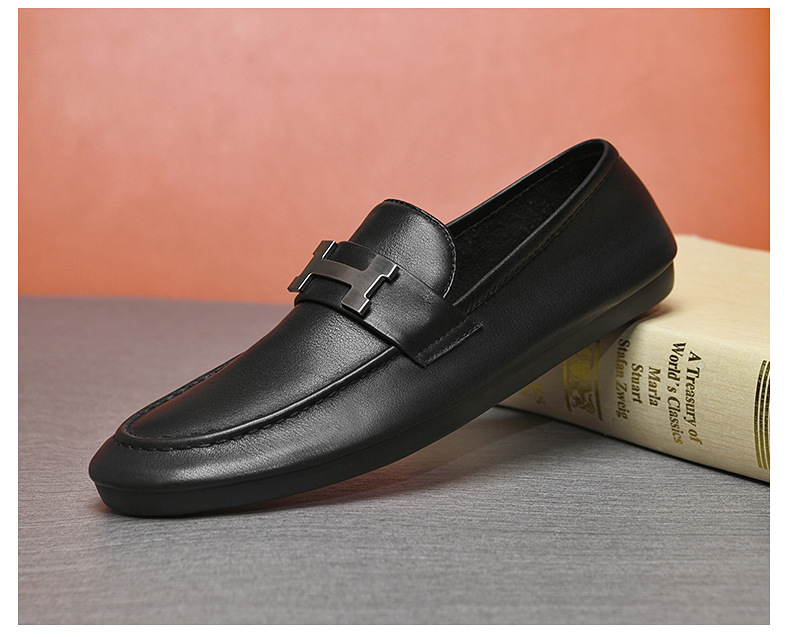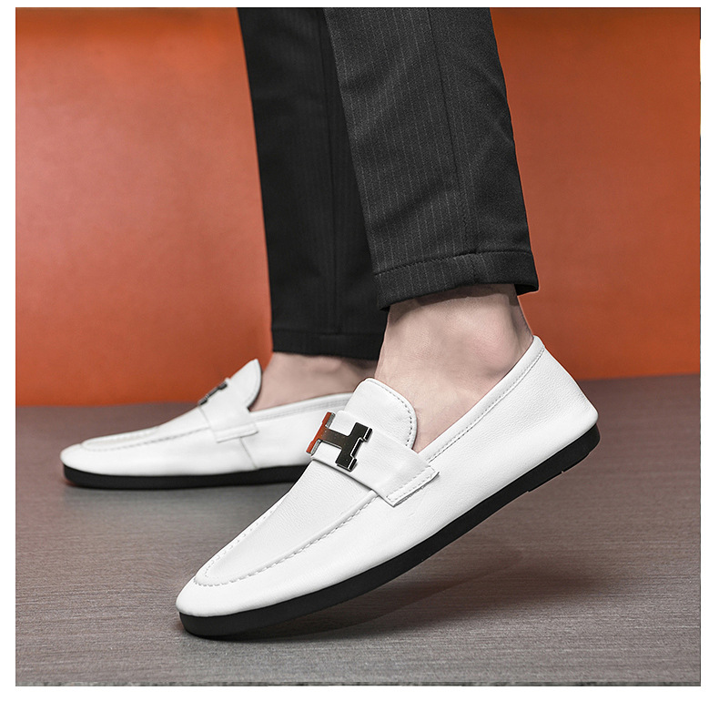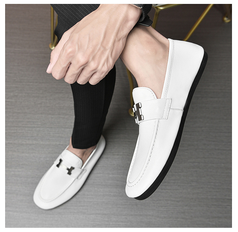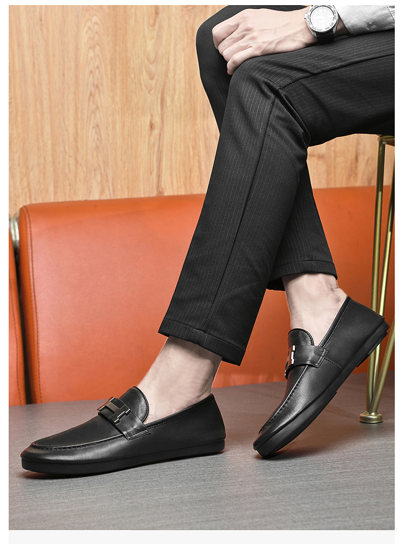 Giày da lười phong cách Hàn Quốc, thiết kế không cần buộc dây, mang vào là đi được ngay. Sản phẩm làm từ chất liệu da thật, ôm chân nhẹ nhàng và thoải mái. Kiểu dáng cổ thấp, gót bằng phẳng phù hợp để diện cùng nhiều loại trang phục như quần jeans hay váy ngắn. Bạn chỉ cần xỏ chân vào, dùng ngón tay kéo nhẹ phần gót là đã có một đôi giày gọn gàng, tiện lợi cho những lúc cần ra ngoài nhanh. | Tên sản phẩm: Giày Da Nam Hàng Mùa Xuân Thu Đông Phong Cách Hàn Quốc - Giày Dép Nam | Mã sản phẩm: B7803 - Giá: 780.000đ | Mã nhà sản xuất: TADRA-G02Hình ảnh sản phẩm