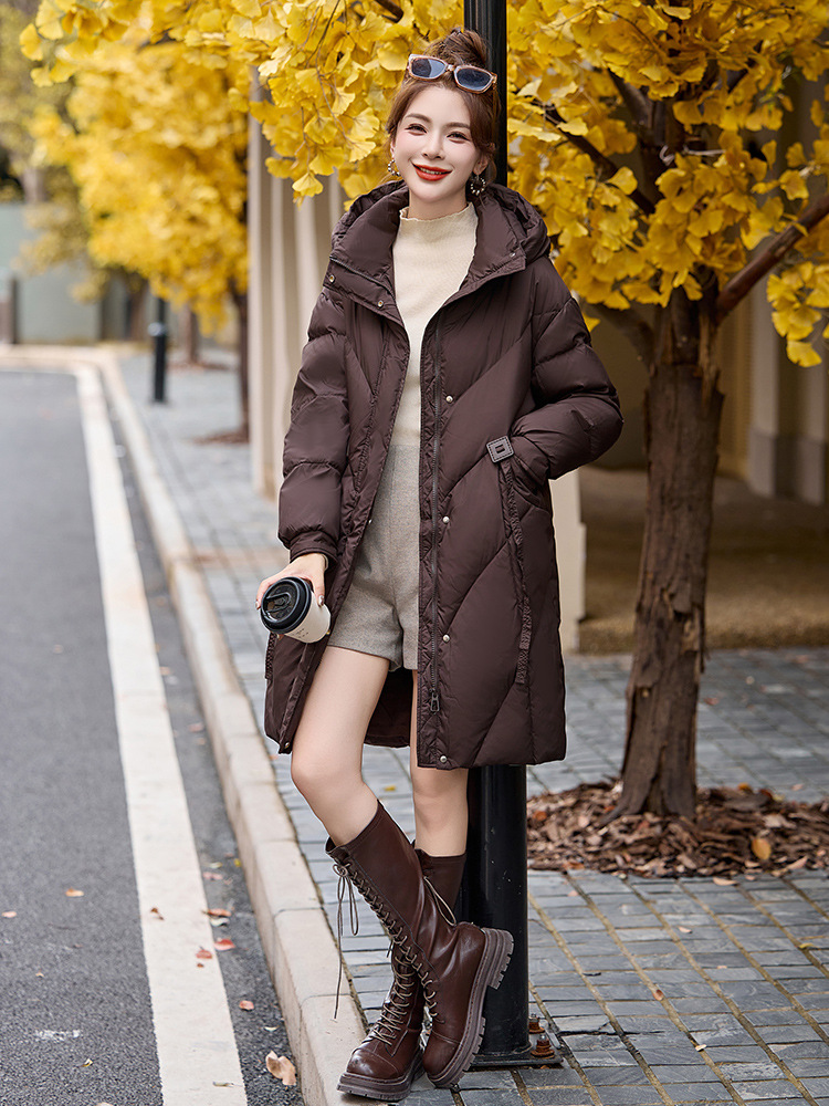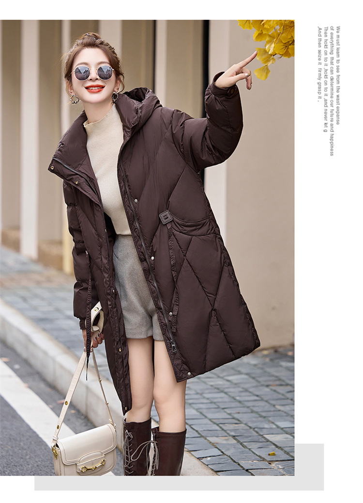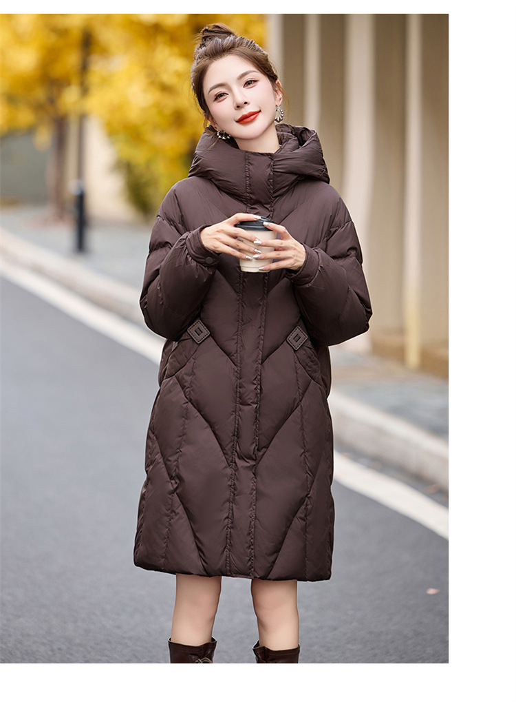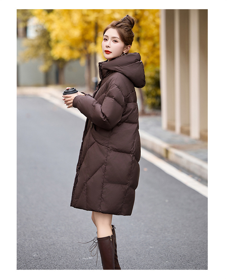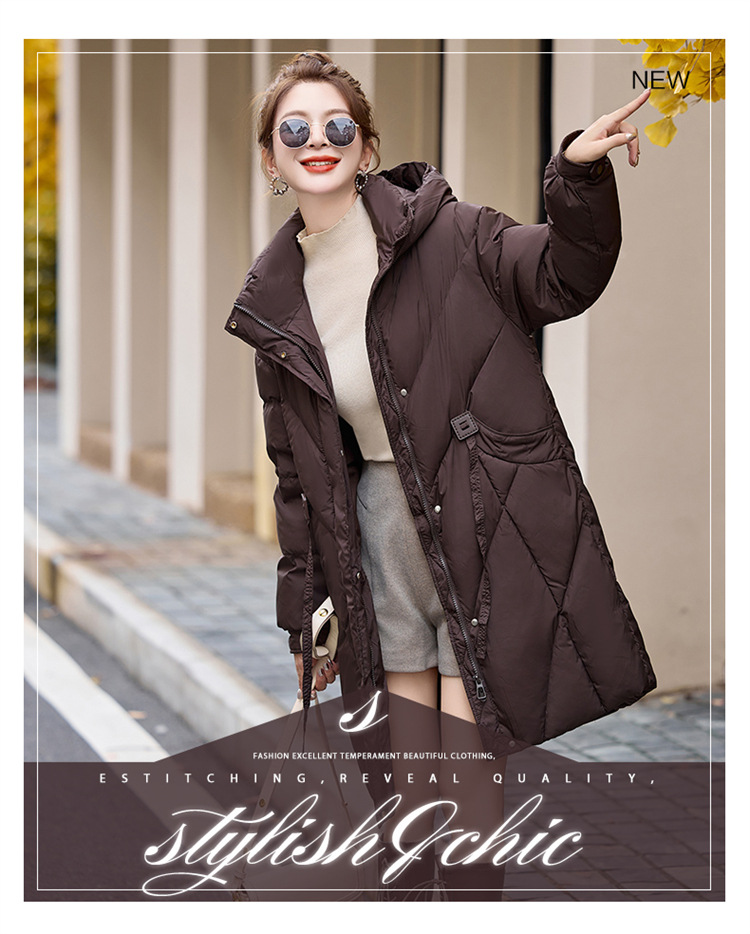 Áo khoác dành cho nữ, thiết kế dài qua gối giúp giữ ấm toàn thân trong mùa lạnh. Chất áo có độ phồng nhẹ và được may thêm lớp bên trong nên rất ấm áp. Kiểu dáng có mũ trùm đầu, vừa tạo điểm nhấn vừa che nắng mưa hiệu quả. Áo phù hợp mặc đi làm, đi chơi hay những ngày cần vận động ngoài trời. Bạn có thể kết hợp với nhiều loại trang phục khác nhau để có vẻ ngoài ưng ý. | Tên sản phẩm: Áo Khoác Nữ Dài Quá Gối Mũ Liền Dày Ấm Hàng Mùa Xuân Thu Đông - Thời Trang Nữ | Mã sản phẩm: B7806 - Giá: 3.350.000đ | Mã nhà sản xuất: HADG-G06Hình ảnh sản phẩm
