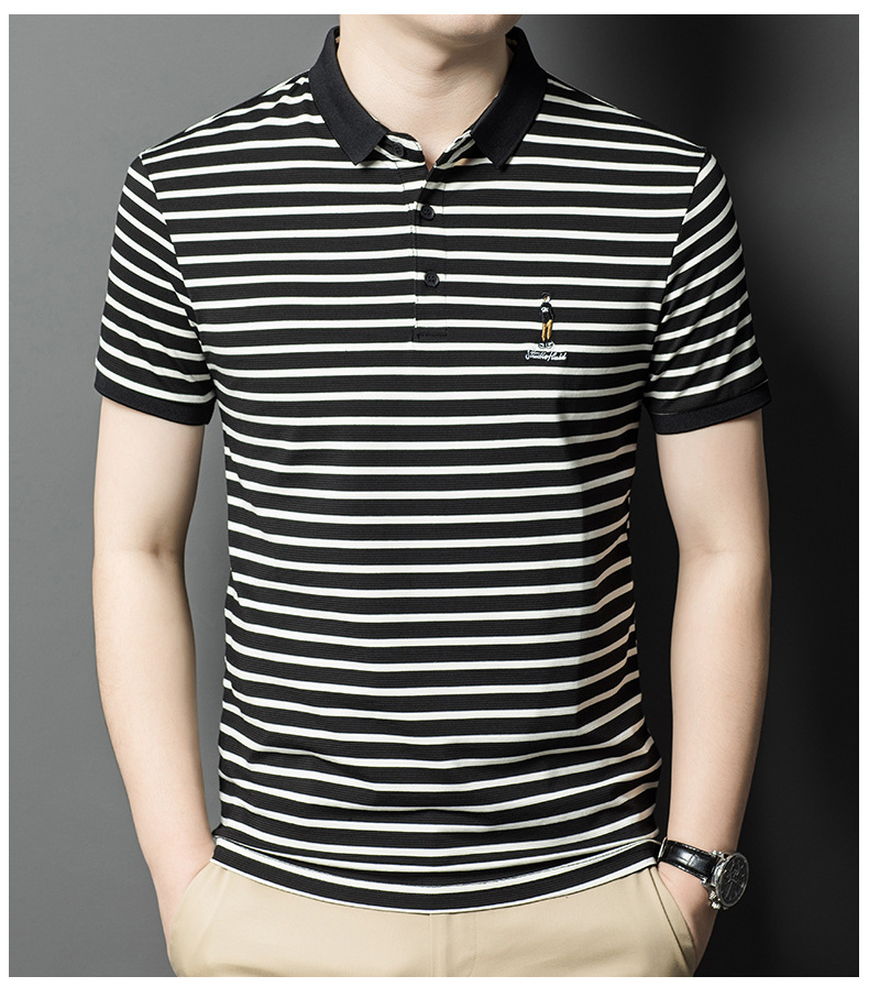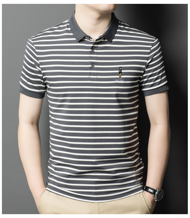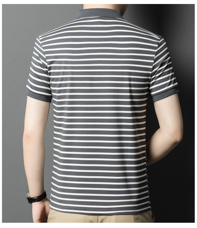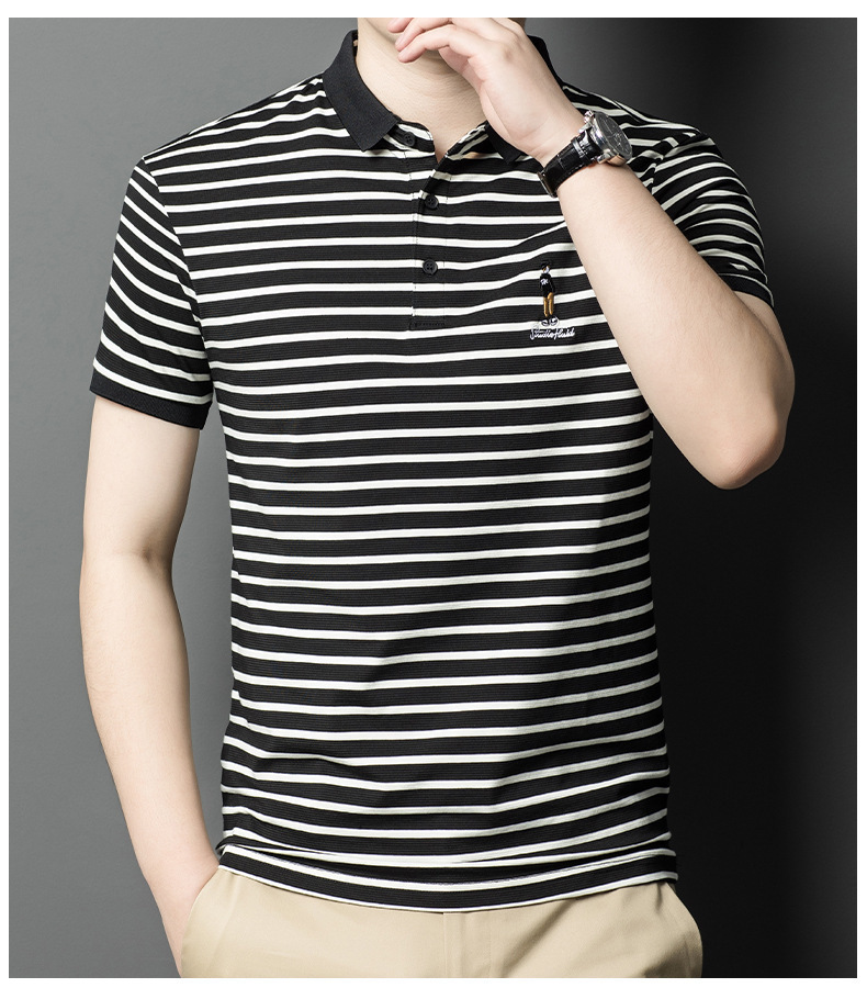 Áo thun ngắn tay dành cho nam với họa tiết sọc, kiểu dáng cổ bẻ tạo nên vẻ ngoài lịch sự và thoải mái. Chất vải mềm mại, thấm hút mồ hôi tốt, mang lại cảm giác dễ chịu khi mặc cả ngày. Sản phẩm phù hợp cho nhiều dịp như đi làm, dạo phố hay các sinh hoạt thường ngày. Có thể kết hợp cùng quần tây hoặc quần jeans để hoàn thiện bộ trang phục. Giặt máy nhẹ nhàng để giữ form áo và màu sắc bền đẹp. | Tên sản phẩm: Áo Thun Nam Chất Liệu Vải Bông Ngắn Tay Kín Cổ Hàng Mùa Hè Phong Cách Hàn Quốc - Thời Trang Nam | Mã sản phẩm: B7838 - Giá: 650.000đ | Mã nhà sản xuất: TOREGS-G02Hình ảnh sản phẩm