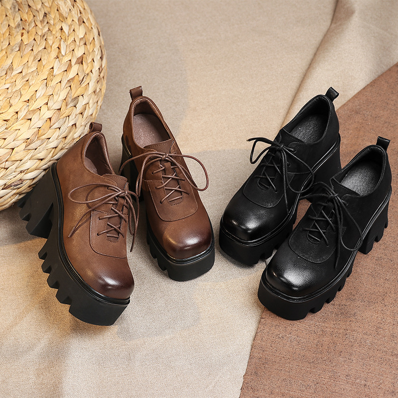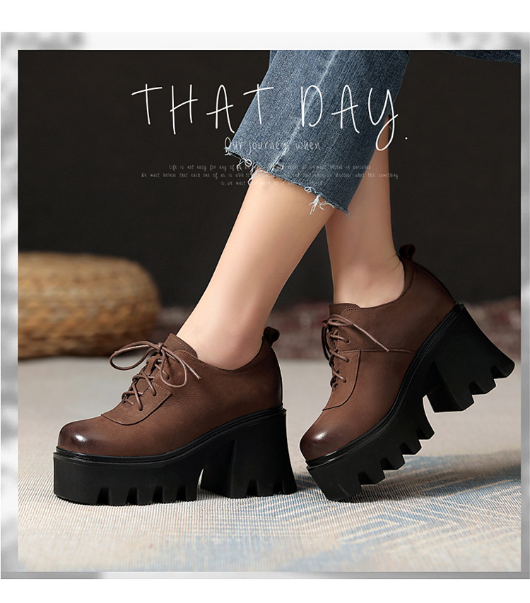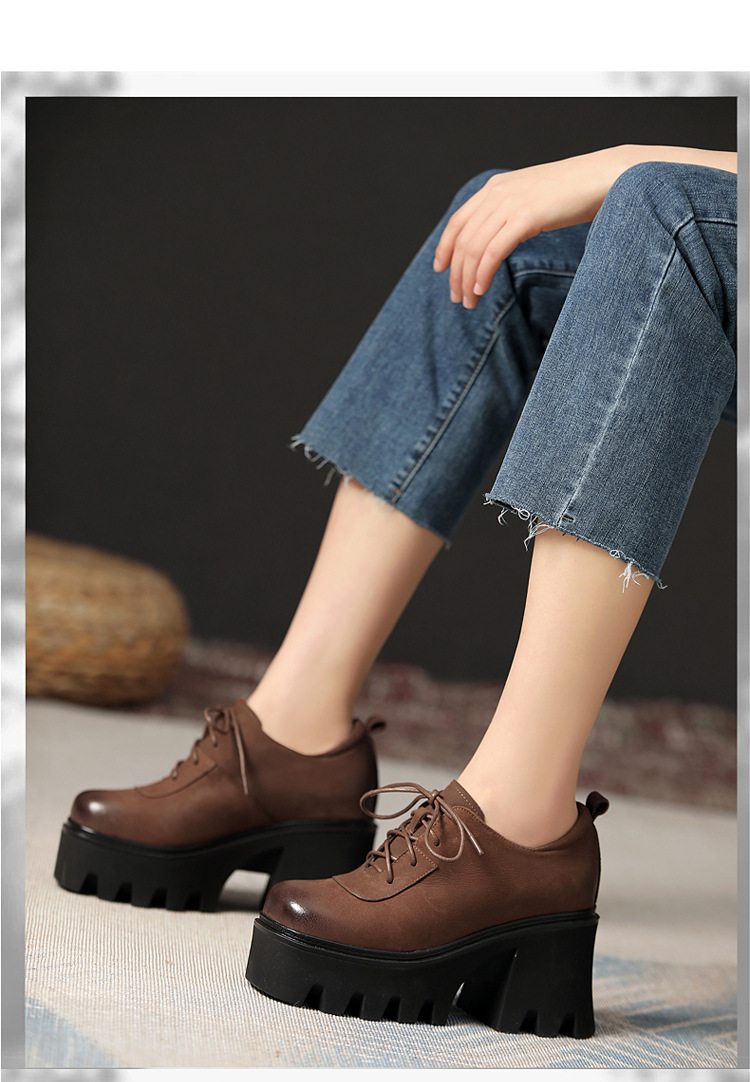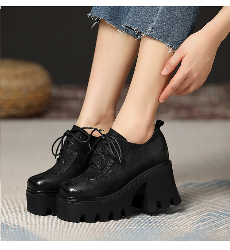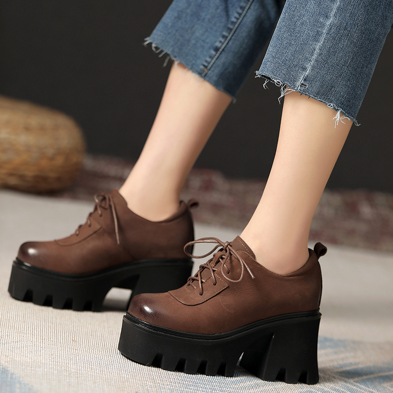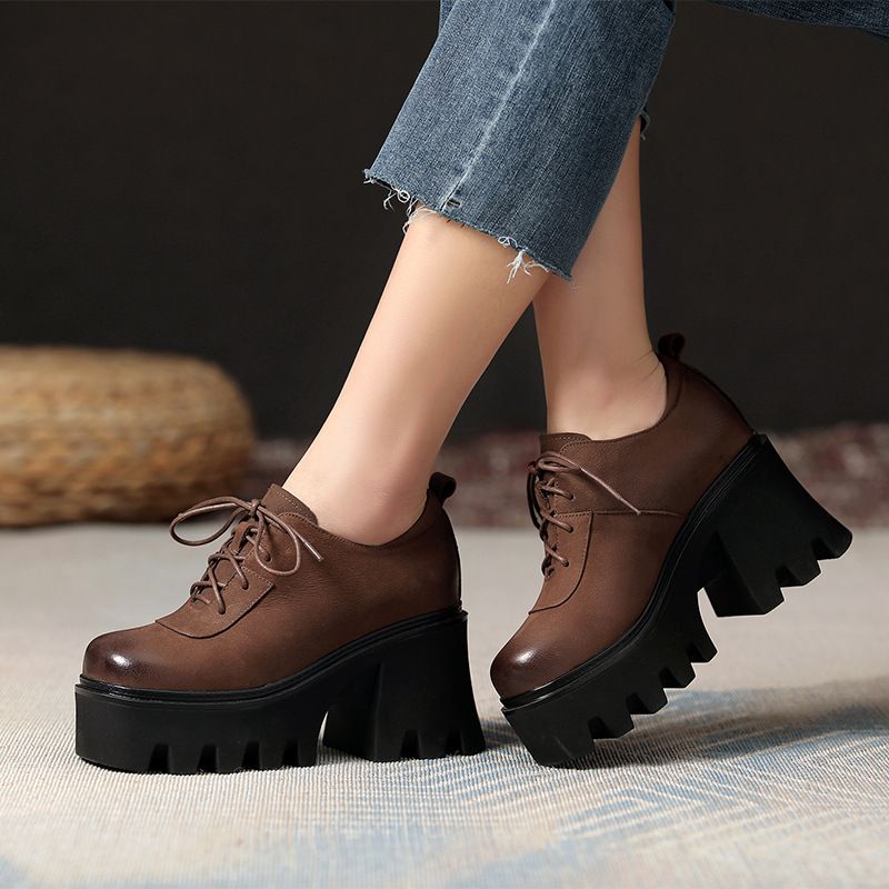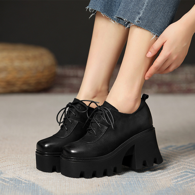 Giày da thiết kế theo phong cách cổ điển, dành cho nữ. Sản phẩm có phần đế dày và gót thấp vững chãi, tạo thêm chiều cao một cách tinh tế. Kiểu dáng mang hơi hướng hoài niệm, phù hợp để phối cùng nhiều loại trang phục khác nhau. Bạn có thể dùng để đi làm, đi chơi hoặc dự các cuộc gặp mặt thường ngày. Chỉ cần lau sạch nhẹ nhàng bằng vải mềm là giày sẽ luôn bền đẹp. | Tên sản phẩm: Giày Da Nữ Cao 10cm Gót Vuông Tăng Chiều Cao Đế Cao Hàng Mùa Xuân Thu Đông Phục Cổ Cổ Điển - Giày Dép Nữ | Mã sản phẩm: B7841 - Giá: 1.830.000đ | Mã nhà sản xuất: QIDNG-G05Hình ảnh sản phẩm