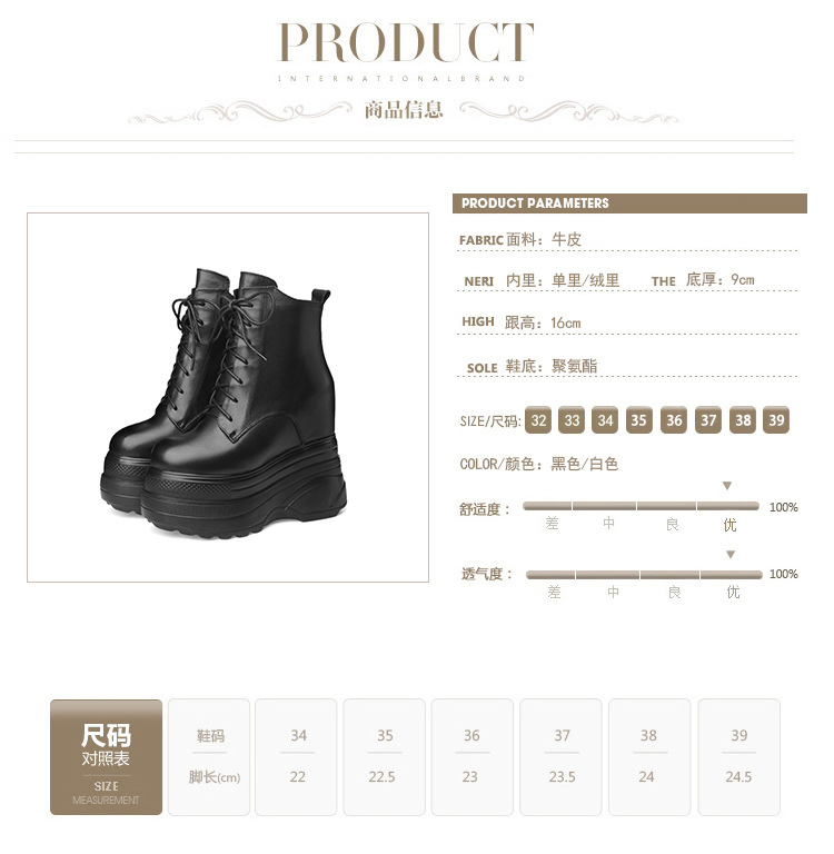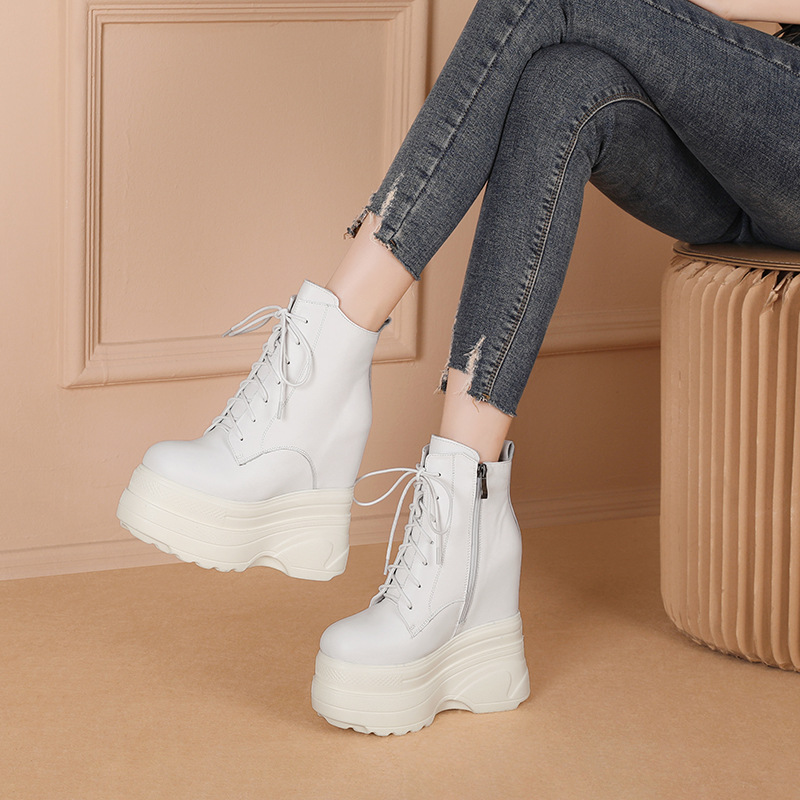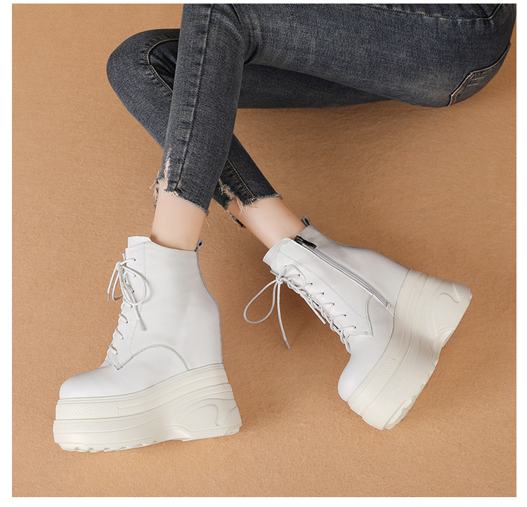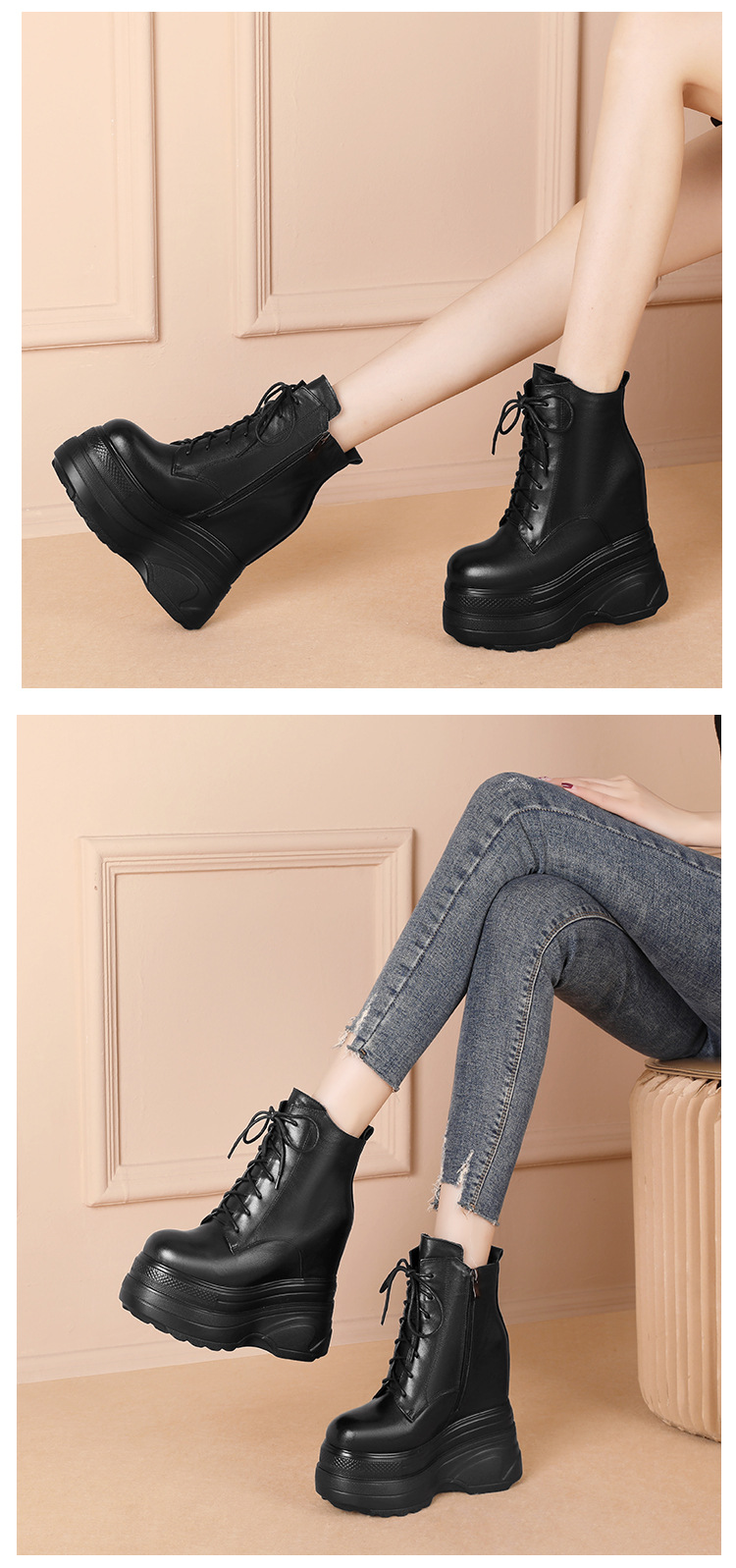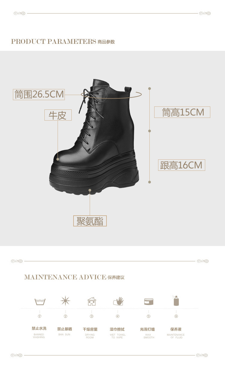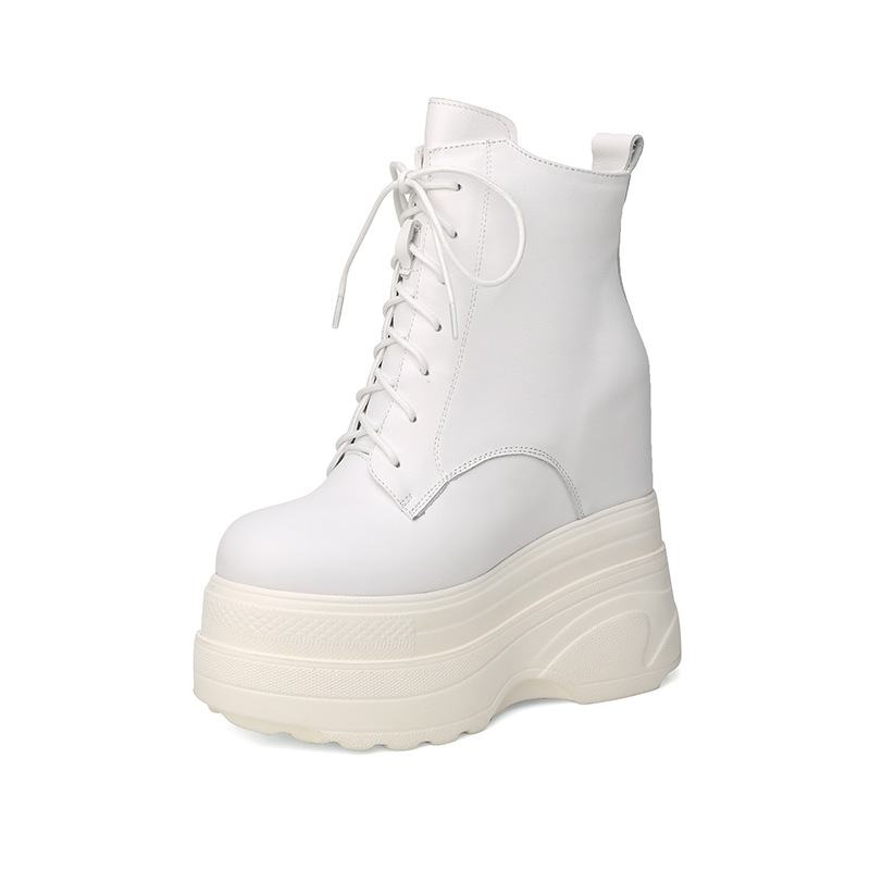 Đôi bốt cổ thấp dành cho nữ với phần đế dày và vững chãi. Phong cách thiết kế có dây buộc mang đến vẻ ngoài cá tính và mạnh mẽ. Sản phẩm được làm từ chất liệu da thật, bền đẹp theo thời gian. Điểm nhấn là phần đế trong giúp tăng chiều cao lên đến 16cm một cách tinh tế. Rất phù hợp để mang trong những ngày thời tiết mát mẻ. Bạn có thể kết hợp cùng quần jeans hoặc váy để tạo nên những phong cách khác nhau. | Tên sản phẩm: Boot Cổ Thấp Nữ Chất Liệu Da Bò Cao 16cm Chống Nước Tăng Chiều Cao Đế Cao Hàng Mùa Xuân Thu Đông - Giày Dép Nữ | Mã sản phẩm: B7847 - Giá: 2.500.000đ | Mã nhà sản xuất: QIDNG-G05Hình ảnh sản phẩm