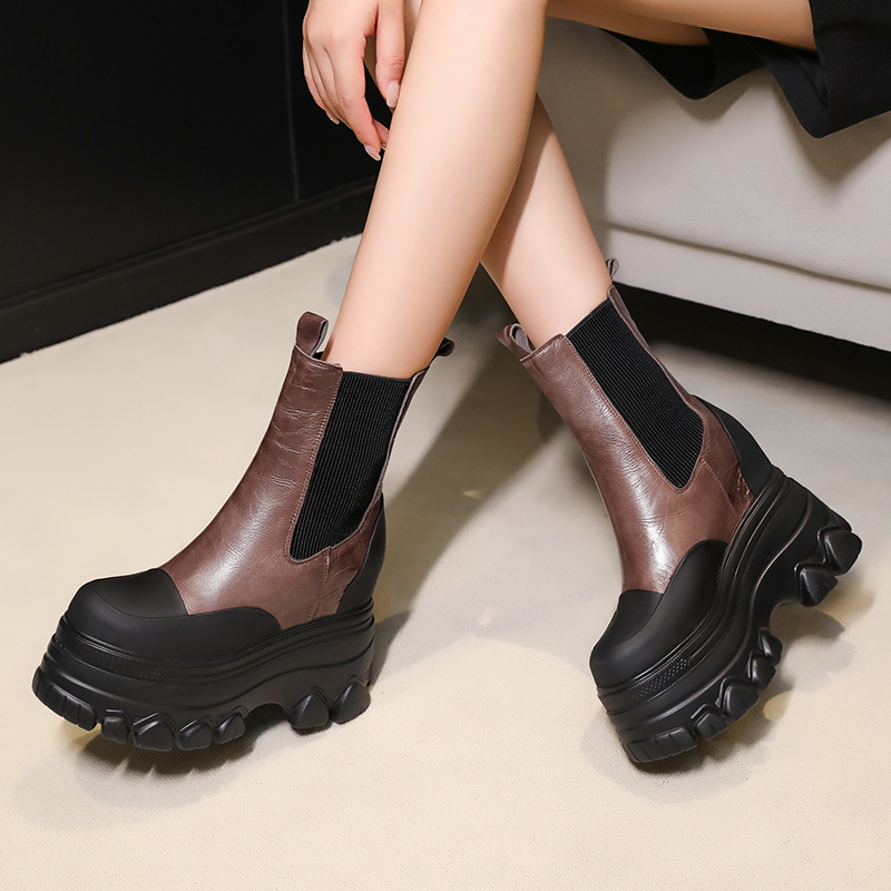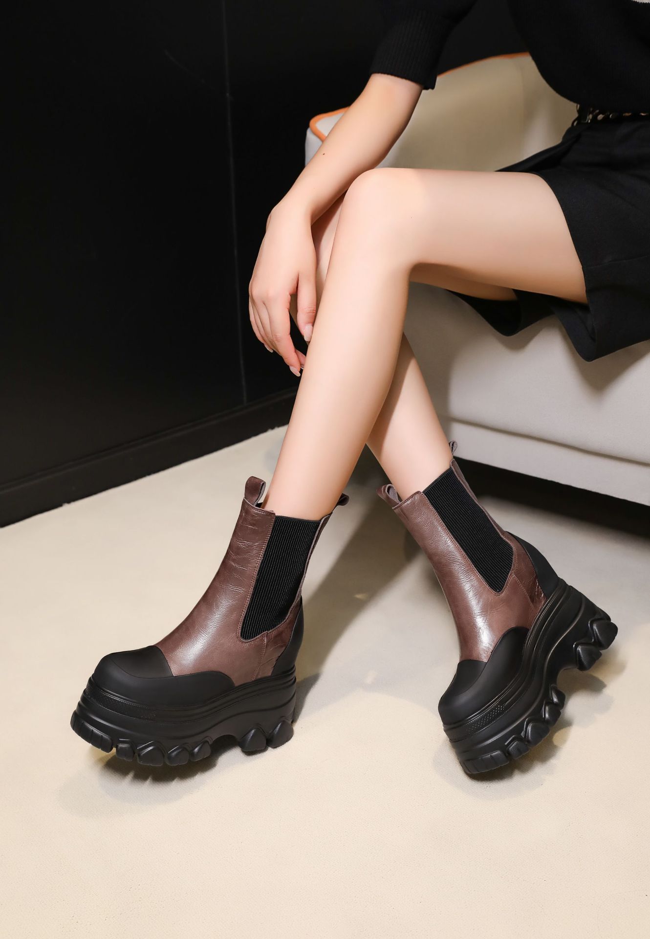 Đôi bốt cổ thấp này có phần đế dày và thiết kế tăng chiều cao bên trong một cách khéo léo, giúp tạo dáng người thon gọn và cao ráo hơn. Phong cách cổ điển mang nét đẹp lãng mạn, xứ sở sương mù rất dễ phối đồ. Bạn có thể kết hợp cùng quần jeans, váy hay quần tây để tạo nên những vẻ ngoài ấn tượng cho mùa thu đông. | Tên sản phẩm: Boot Cổ Thấp Nữ Cao 12cm Tăng Chiều Cao Đế Cao Hàng Mùa Xuân Thu Đông Phục Cổ Cổ Điển - Giày Dép Nữ | Mã sản phẩm: B7861 - Giá: 2.780.000đ | Mã nhà sản xuất: QIDNG-G06Hình ảnh sản phẩm