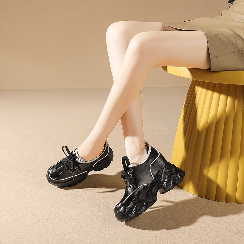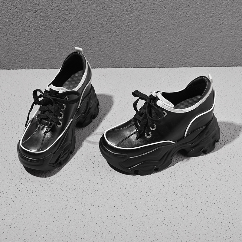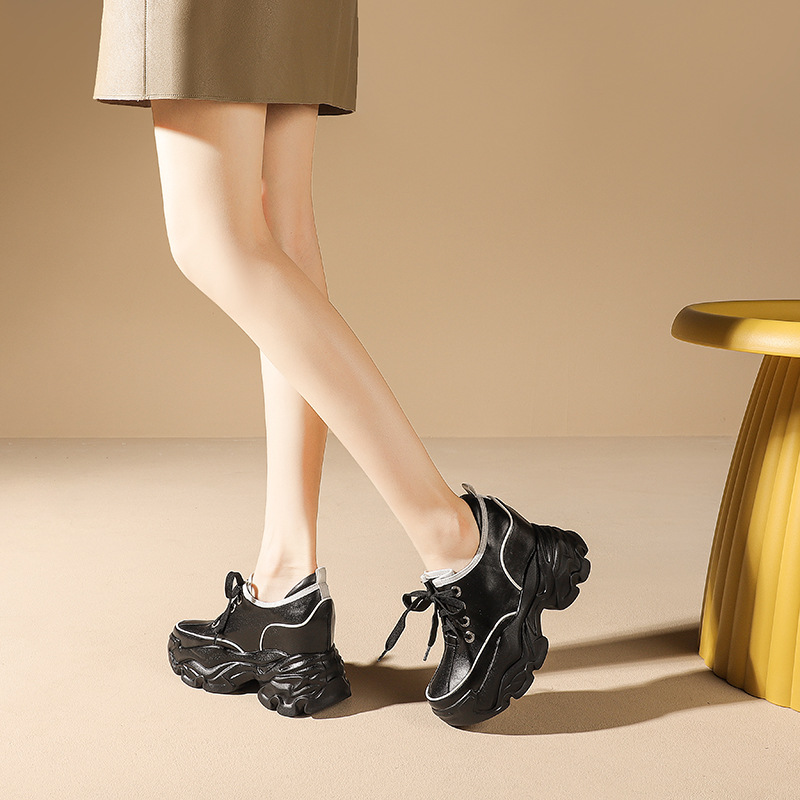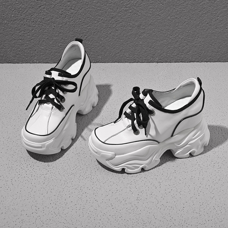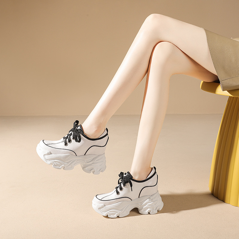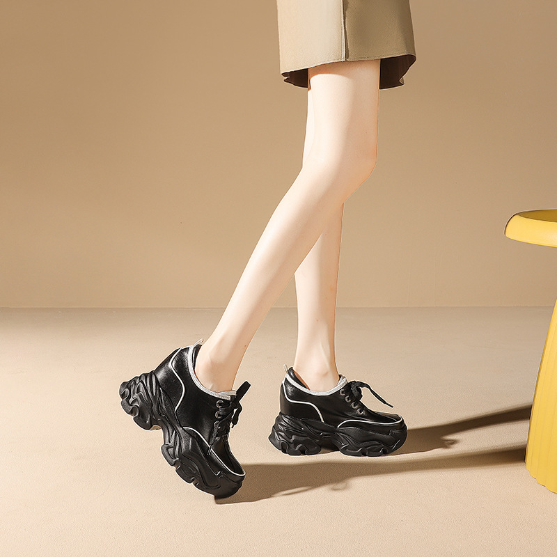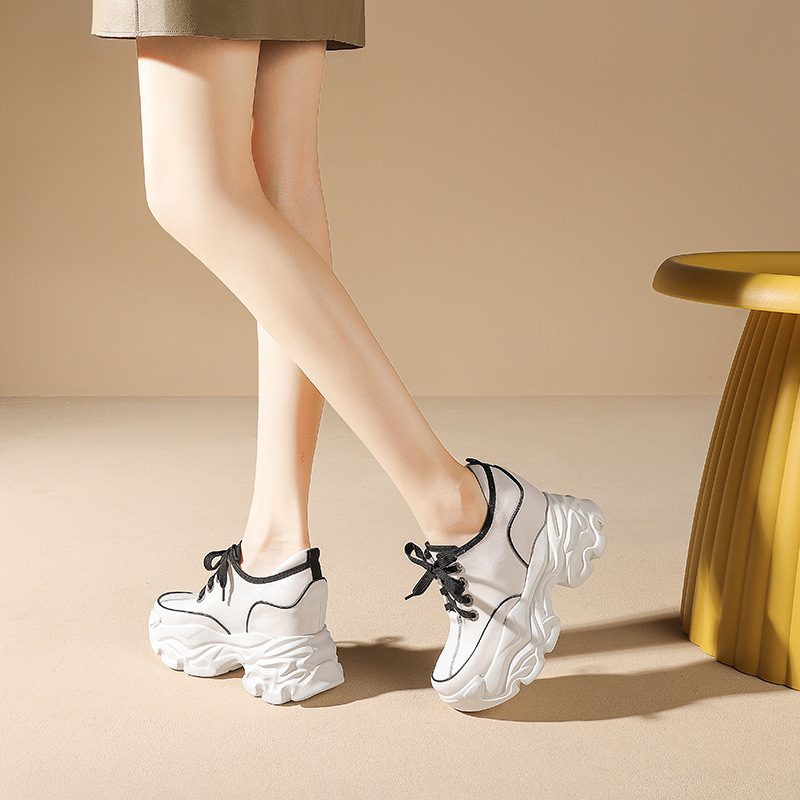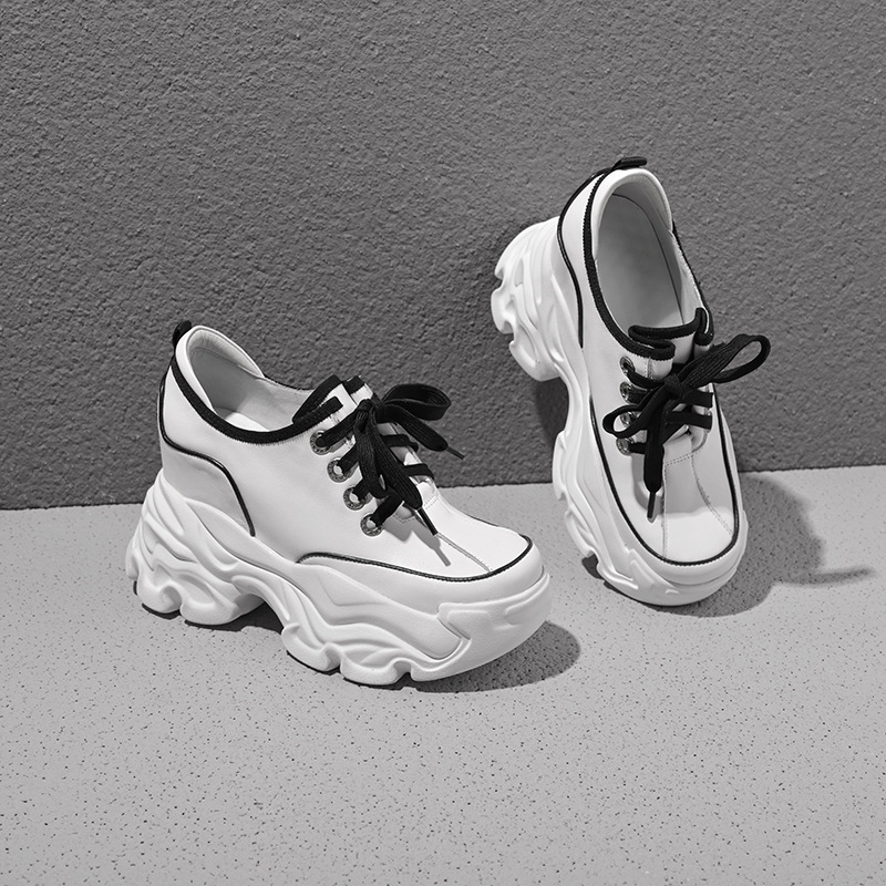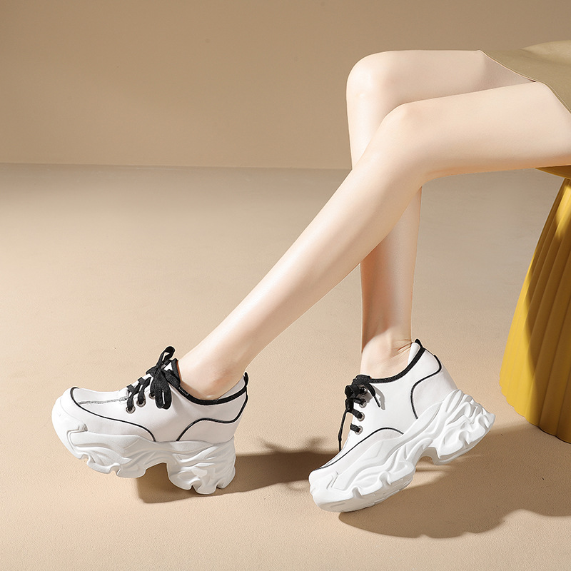 Đôi giày này có phần đế bên trong giúp tăng chiều cao lên đến mười phân, rất phù hợp cho những bạn gái có dáng người nhỏ nhắn. Kiểu dáng kết hợp giữa phong cách thư giãn và hơi hướng cổ điển châu Âu, tạo vẻ ngoài năng động. Bạn có thể buộc dây để điều chỉnh độ ôm chân. Sản phẩm dễ dàng phối cùng nhiều loại trang phục khác nhau như quần jeans hay váy để tạo nên những diện mạo đa dạng cho mùa thu. | Tên sản phẩm: Giày Thể Thao Nữ Cao 10cm Tăng Chiều Cao Hàng Mùa Xuân Thu Đông - Giày Dép Nữ | Mã sản phẩm: B7866 - Giá: 1.920.000đ | Mã nhà sản xuất: QIDNG-G05Hình ảnh sản phẩm