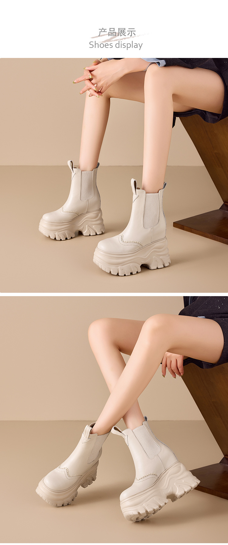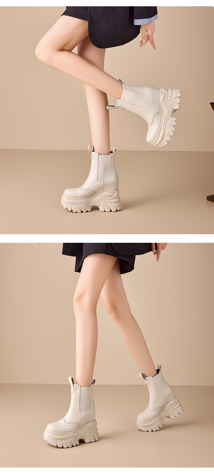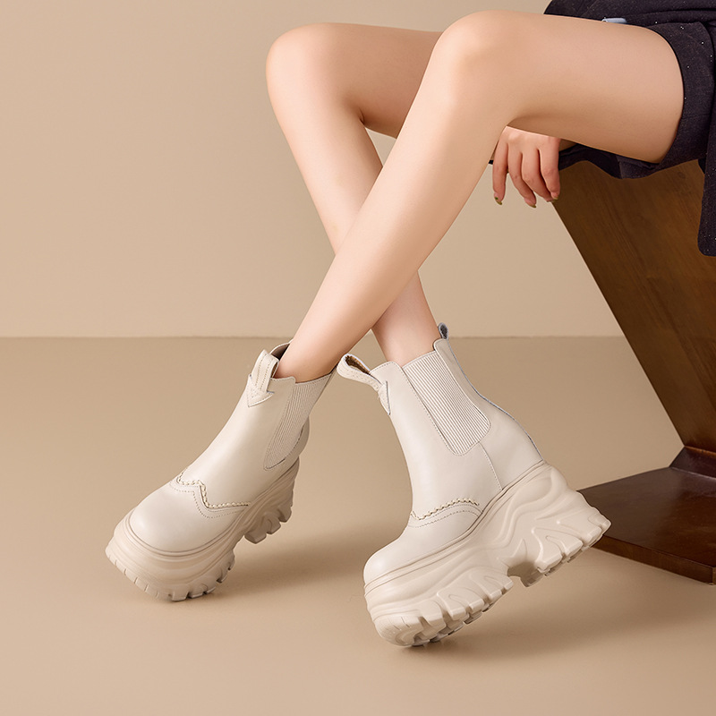 Đôi bốt cổ thấp này có phần đế rất dày và vững chãi, giúp tăng chiều cao một cách tinh tế. Thiết kế với phần đế hình khối vuông vức, mang đến phong cách trẻ trung, năng động. Màu sắc trung tính nhẹ nhàng rất dễ dàng phối hợp với nhiều loại trang phục khác nhau như quần jeans, váy hay quần legging. Sản phẩm thích hợp để mang trong những ngày thời tiết mát mẻ. Bạn có thể sử dụng như một điểm nhấn hoàn thiện cho set đồ hằng ngày của mình. | Tên sản phẩm: Boot Cổ Thấp Nữ Cao 12cm Chống Nước Tăng Chiều Cao Đế Cao Hàng Mùa Xuân Thu Đông - Giày Dép Nữ | Mã sản phẩm: B7871 - Giá: 2.020.000đ | Mã nhà sản xuất: QIDNG-G05Hình ảnh sản phẩm