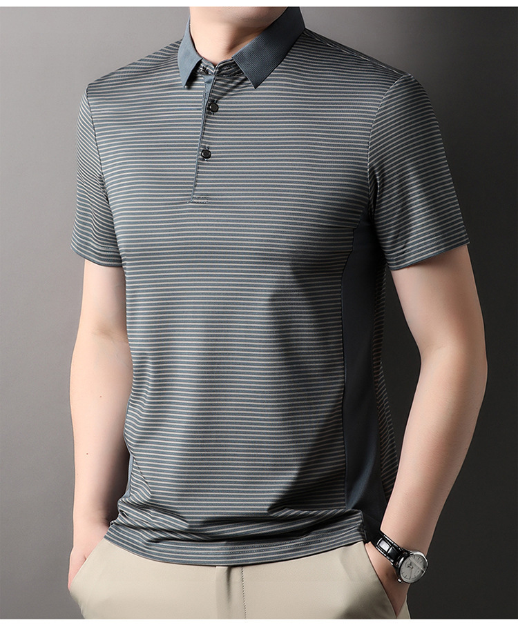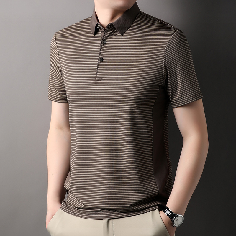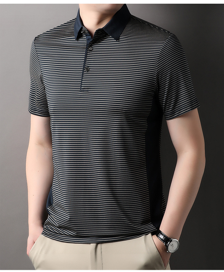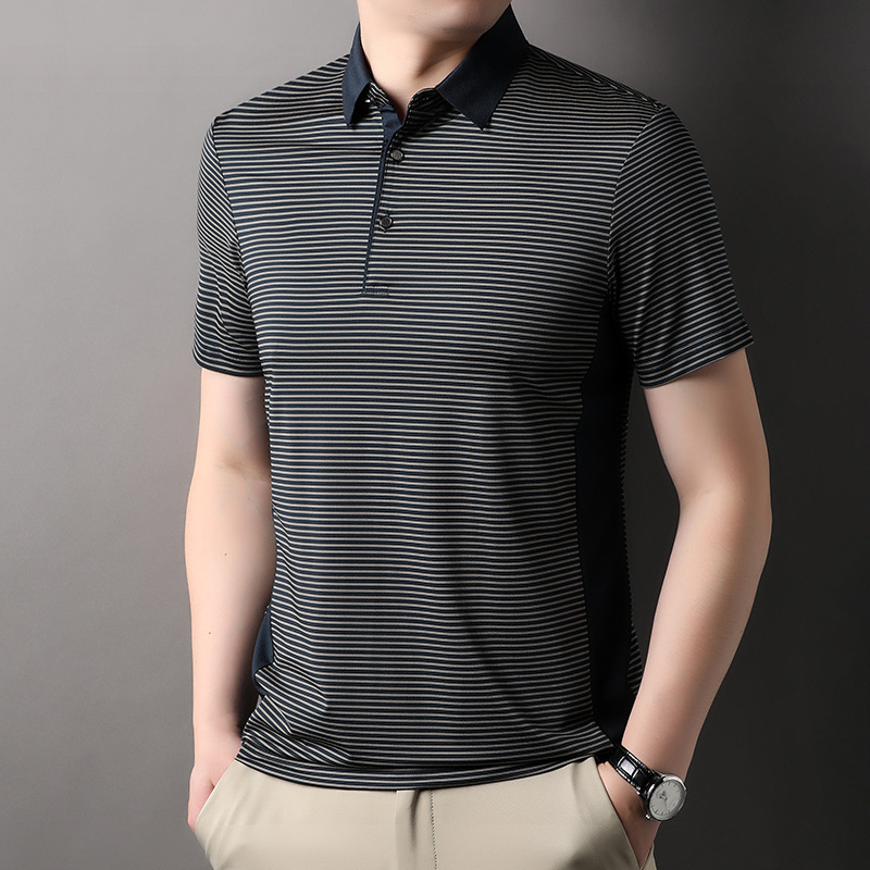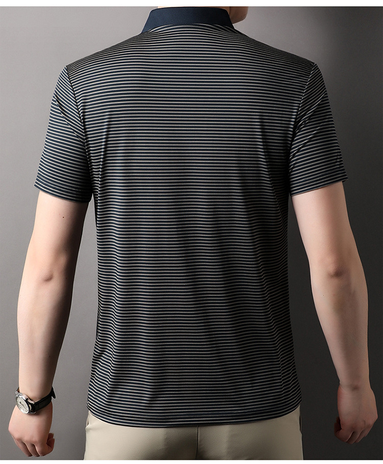 Áo polo ngắn tay dành cho nam, kiểu dáng mới cho mùa hè. Sản phẩm có cổ bẻ và tay áo ngắn, in họa tiết sọc trẻ trung, năng động. Chất vải mềm mại, thoáng mát, thấm hút mồ hôi tốt, phù hợp cho các hoạt động hằng ngày. Bạn có thể mặc đi làm, đi chơi hay tập thể thao nhẹ. Dễ dàng phối với quần shorts hoặc quần dài để có vẻ ngoài lịch sự. Giặt máy nhẹ nhàng để giữ form áo bền đẹp. | Tên sản phẩm: Áo Sơ Mi Nam Ngắn Tay Kín Cổ Hàng Mùa Hè - Thời Trang Nam | Mã sản phẩm: B7873 - Giá: 700.000đ | Mã nhà sản xuất: TOREGS-G02Hình ảnh sản phẩm