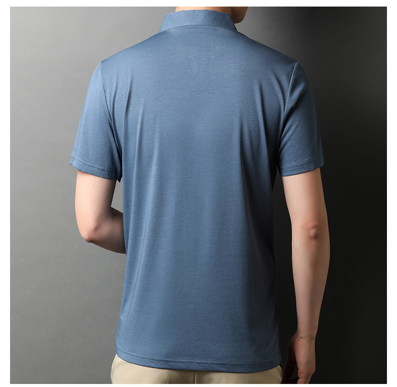Áo thun ngắn tay dành cho nam, kiểu dáng cổ bẻ mang phong cách nhẹ nhàng. Sản phẩm sử dụng chất liệu pha trộn tơ tự nhiên, cho cảm giác mặc mát mẻ và dễ chịu. Thiết kế một màu dễ dàng phối hợp với nhiều loại trang phục khác nhau. Bạn có thể mặc đi làm, đi chơi hay dự các cuộc gặp mặt thông thường. Giặt sản phẩm với nước lạnh và phơi trong bóng râm để giữ form áo và chất vải được bền lâu. | Tên sản phẩm: Áo Thun Nam Chất Liệu Lụa Tơ Tằm Ngắn Tay Kín Cổ Hàng Mùa Hè Phong Cách Hàn Quốc - Thời Trang Nam | Mã sản phẩm: B7879 - Giá: 590.000đ | Mã nhà sản xuất: TOREGS-G01Hình ảnh sản phẩm