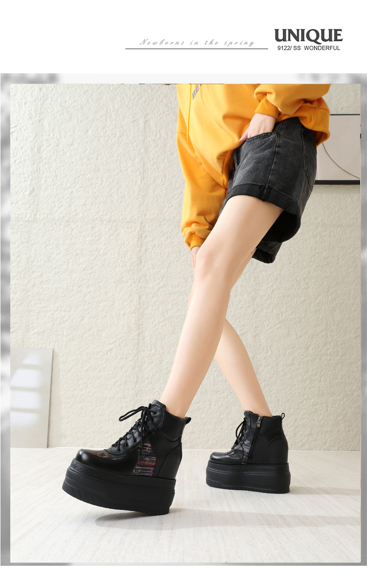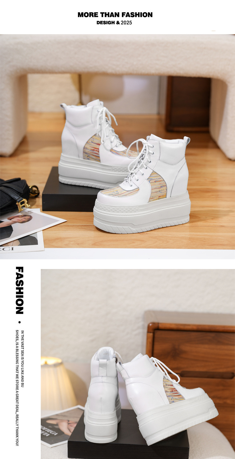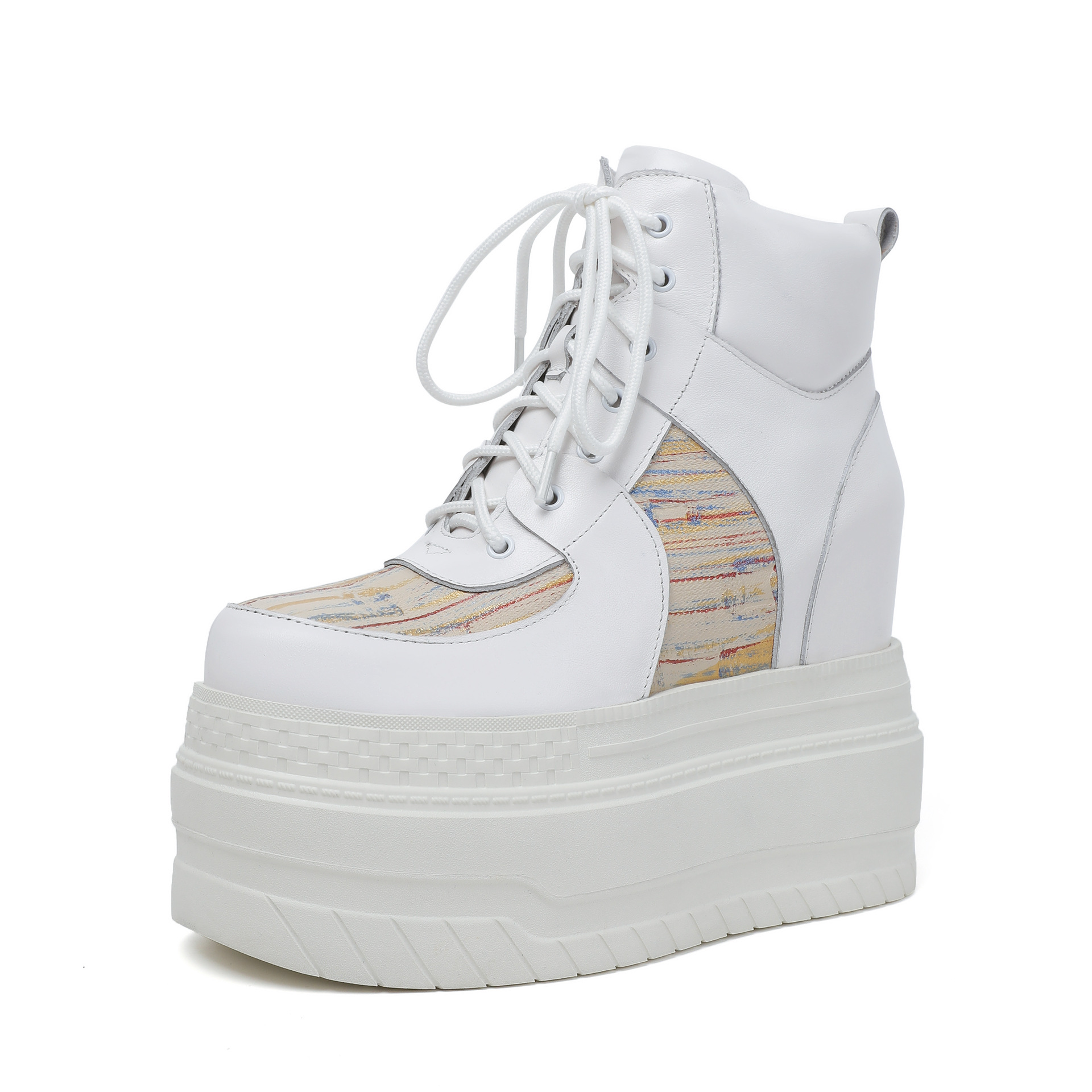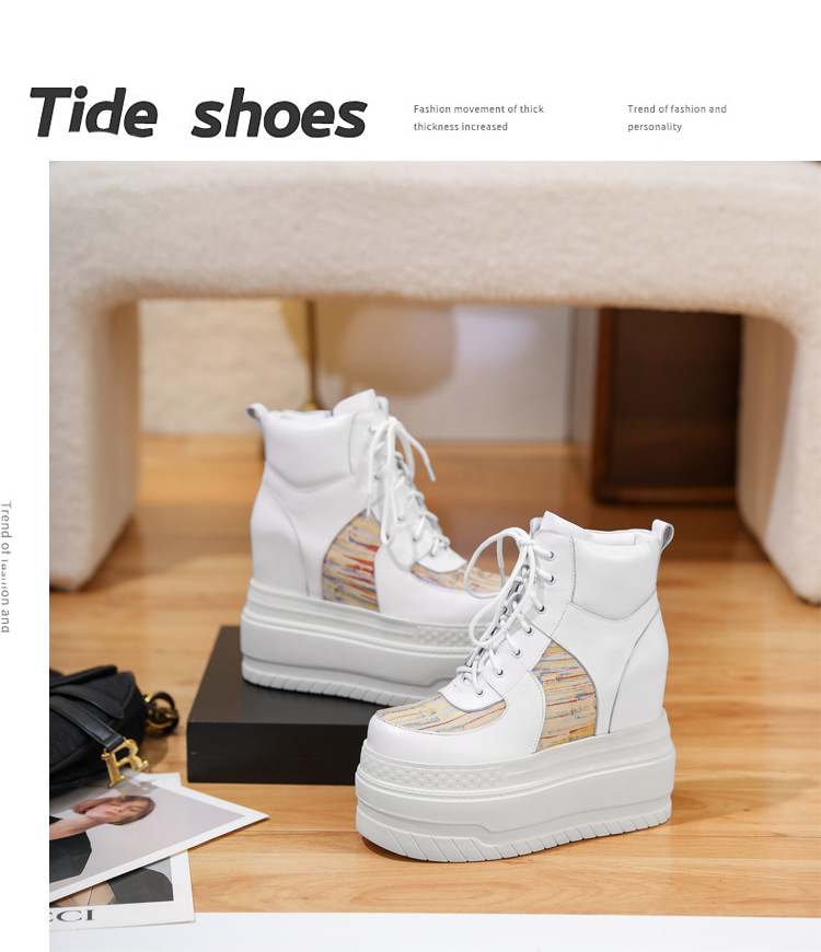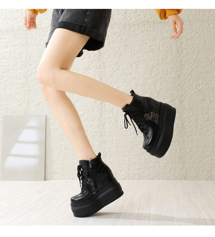 Đôi giày thể thao nữ có phần cổ cao mười hai phân, phù hợp cho mùa thu. Thiết kế với đế dày nhẹ nhàng, đầu tròn dễ thương và kết hợp nhiều chất liệu. Kiểu dáng năng động, dễ phối với nhiều trang phục khác nhau. Bạn chỉ cần xỏ chân vào, buộc dây và sẵn sàng cho những bước đi thoải mái trong ngày. | Tên sản phẩm: Giày Boot Cổ Thấp Nữ Cao 12cm Mũi Tròn Đế Cao Hàng Mùa Xuân Thu Đông - Giày Dép Nữ | Mã sản phẩm: B7886 - Giá: 2.120.000đ | Mã nhà sản xuất: QIDNG-G05Hình ảnh sản phẩm
