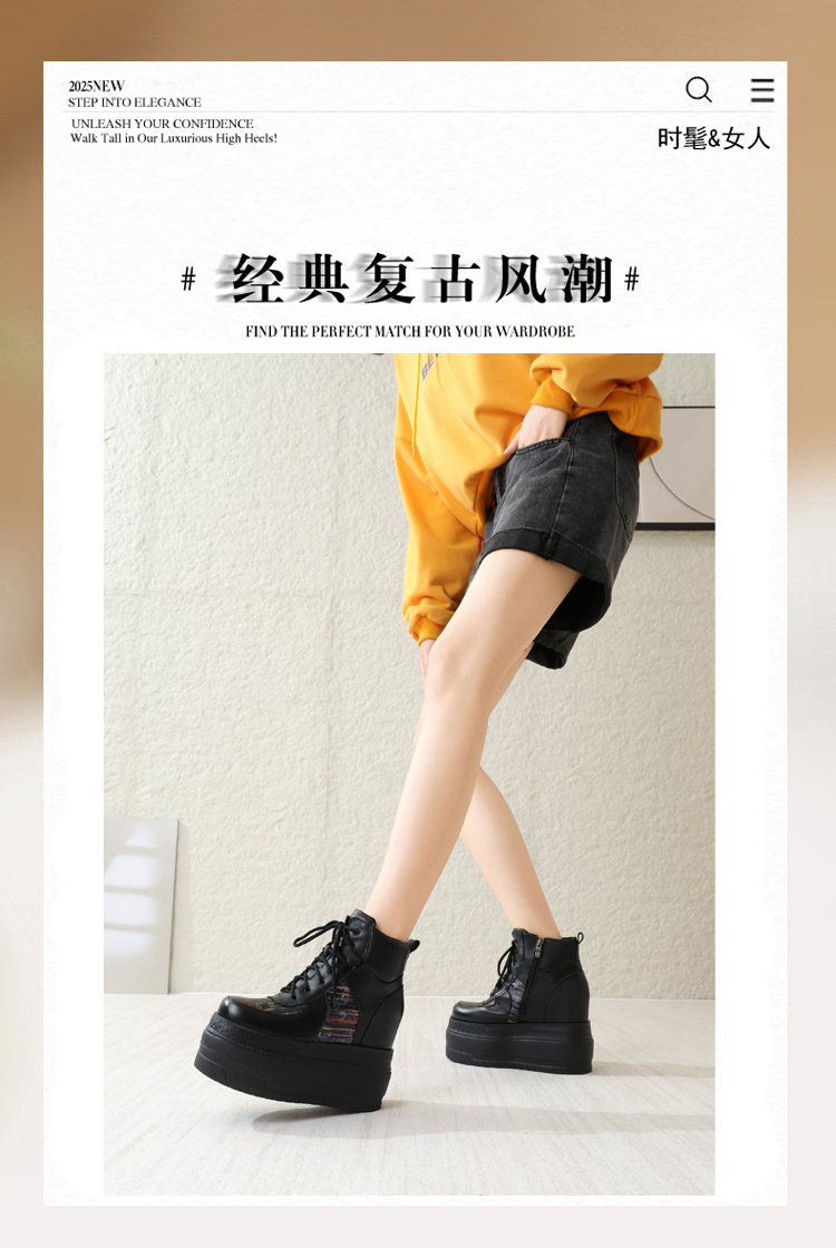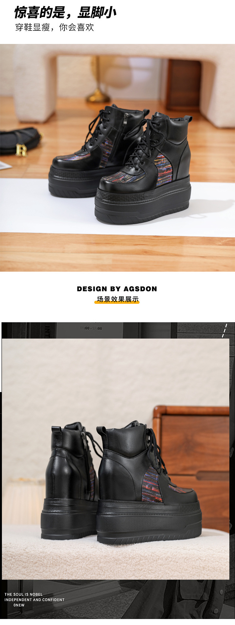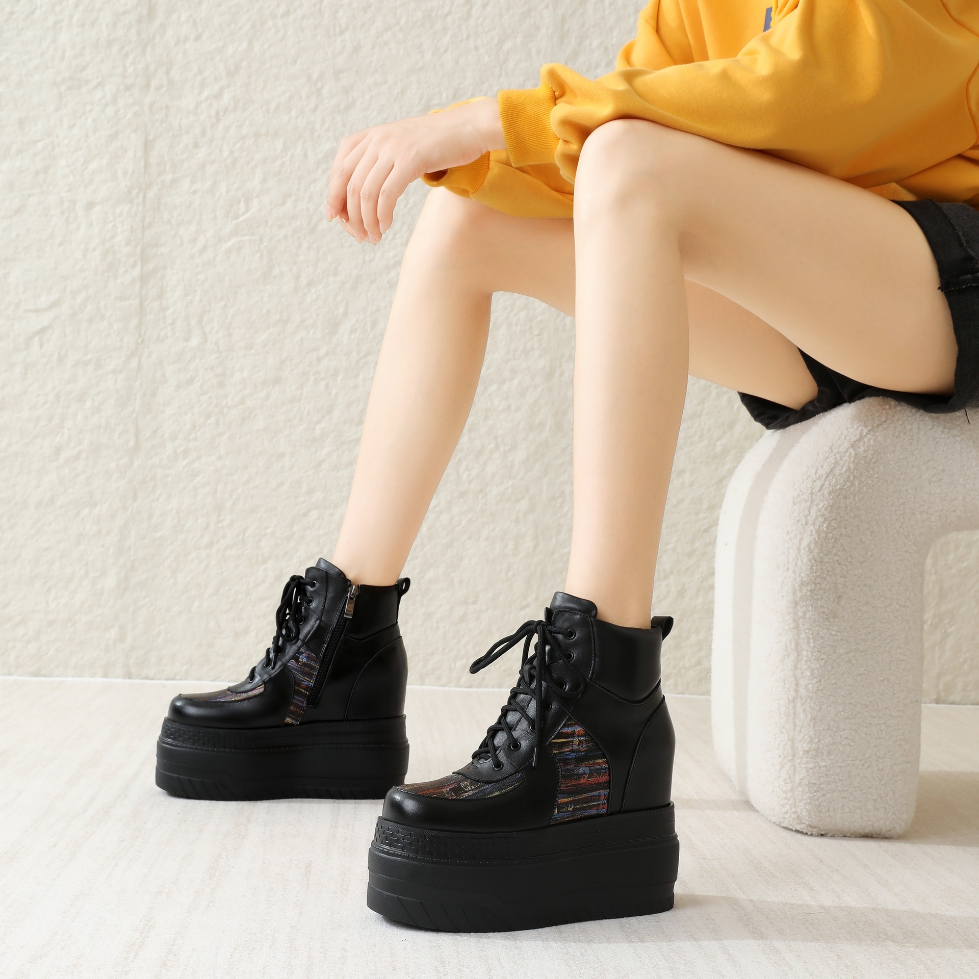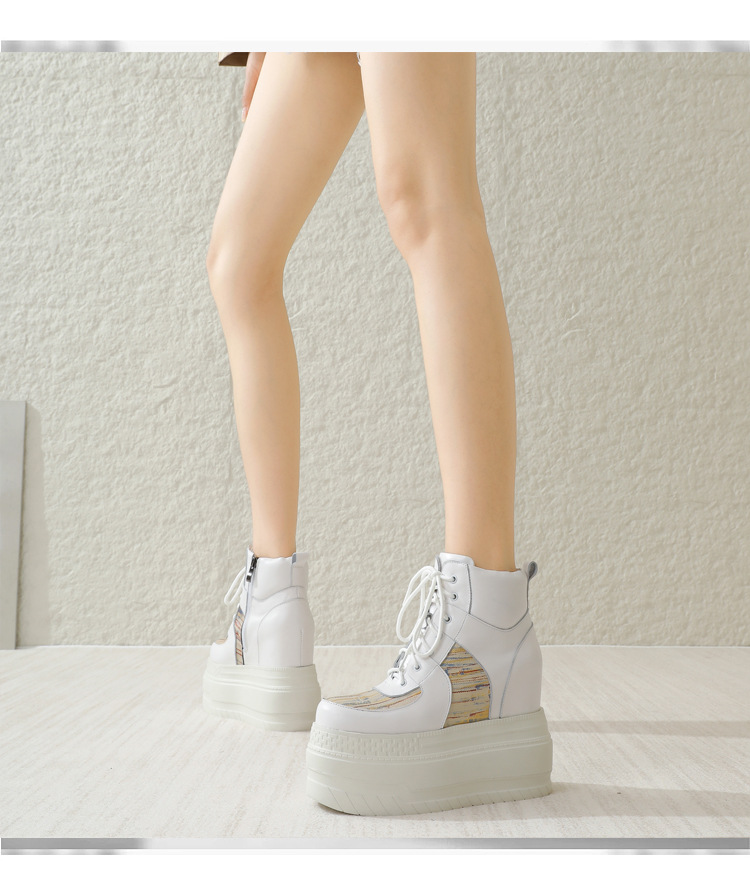 Đôi giày thể thao nữ có phần cổ cao mười hai phân, phù hợp cho mùa thu. Thiết kế với đế dày nhẹ nhàng, đầu tròn dễ thương và kết hợp nhiều chất liệu. Kiểu dáng năng động, dễ phối với nhiều trang phục khác nhau. Bạn chỉ cần xỏ chân vào, buộc dây và sẵn sàng cho những bước đi thoải mái trong ngày. | Tên sản phẩm: Giày Boot Cổ Thấp Nữ Cao 12cm Mũi Tròn Đế Cao Hàng Mùa Xuân Thu Đông - Giày Dép Nữ | Mã sản phẩm: B7886 - Giá: 2.120.000đ | Mã nhà sản xuất: QIDNG-G05Hình ảnh sản phẩm