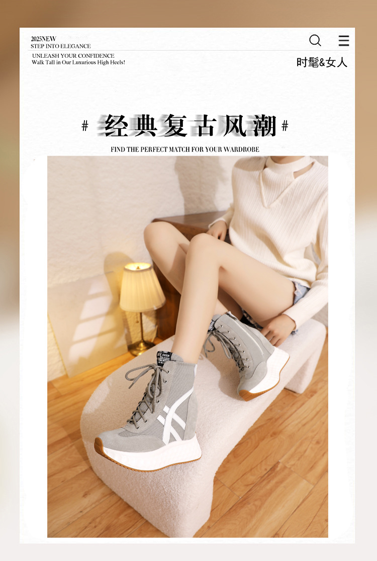Đôi giày boot cổ thấp này mang phong cách cổ điển châu Âu, kết hợp cùng thiết kế đế dày bên trong có miếng lót tăng chiều cao một cách tinh tế. Chất liệu da mềm mại ôm chân, mang lại cảm giác dễ chịu cho mỗi bước đi. Kiểu dáng dễ phối đồ, phù hợp cho nhiều dịp sinh hoạt thường ngày. Bạn chỉ cần xỏ chân vào và cột dây giày là đã có ngay một vẻ ngoại hình ưa nhìn, năng động. | Tên sản phẩm: Giày Thể Thao Tăng Chiều Cao Nữ Chất Liệu Da Bò Cao 12cm Tăng Chiều Cao Đế Cao Phục Cổ Cổ Điển - Giày Dép Nữ | Mã sản phẩm: B7894 - Giá: 2.120.000đ | Mã nhà sản xuất: QIDNG-G05Hình ảnh sản phẩm