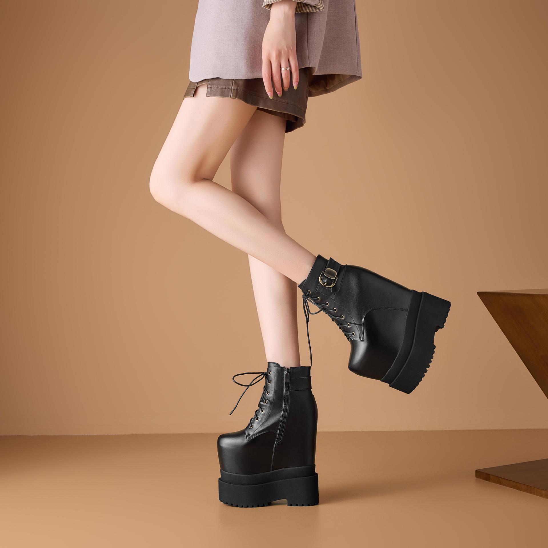 Đôi bốt cổ thấp này được làm từ chất liệu da mềm mại, mang đến cảm giác dễ chịu khi mang. Đế ngoài dày kết hợp cùng đệm nâng đỡ bên trong giúp tăng chiều cao một cách tự nhiên và thoải mái. Kiểu dáng bốt lười cá tính, phù hợp để phối cùng nhiều loại trang phục khác nhau như quần jeans hay váy. Bạn chỉ cần xỏ chân vào và kéo khóa phía sau là đã sẵn sàng diện xuống phố. | Tên sản phẩm: Boot Cổ Thấp Nữ Chất Liệu Da Bò Cao 20cm Tăng Chiều Cao Đế Xuồng Đế Cao - Giày Dép Nữ | Mã sản phẩm: B7895 - Giá: 6.660.000đ | Mã nhà sản xuất: QIDNG-G06Hình ảnh sản phẩm